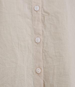 さらりとした肌ざわりが心地よい、シーチング生地で仕立てました。ほどよく薄手で軽やかさがあり、空気を含むようなしなやかな風合いが魅力です。ところどころに見られるネップが、インド綿ならではの表情を生み、素朴で味わいのある素材感をたのしめます。
