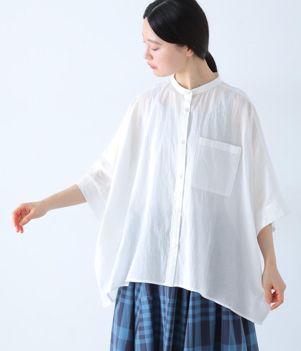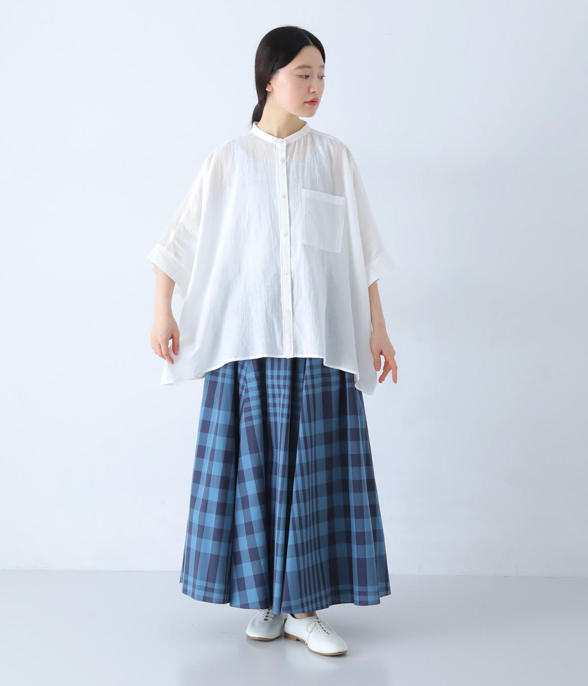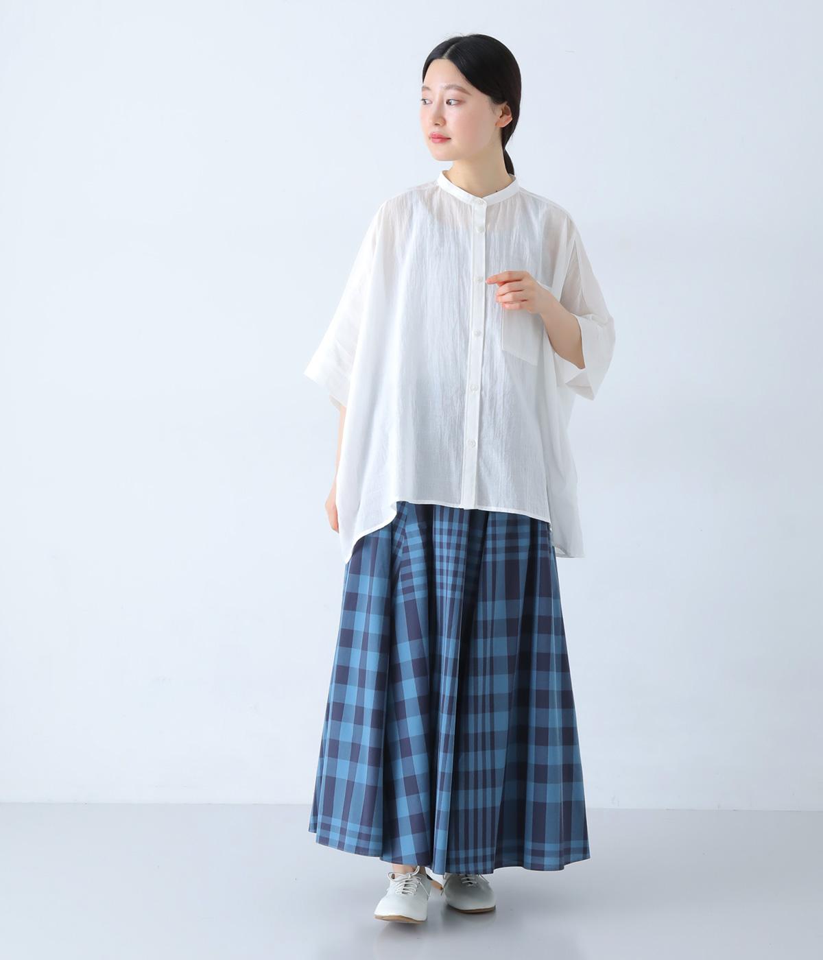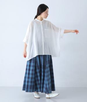 空気をはらむような薄手のボイル生地を使用しました。透け感がある生地に格子柄の織り目が奥行きのある表情を演出します。ふんわりと軽やかで、ナチュラルな風合いが魅力です。