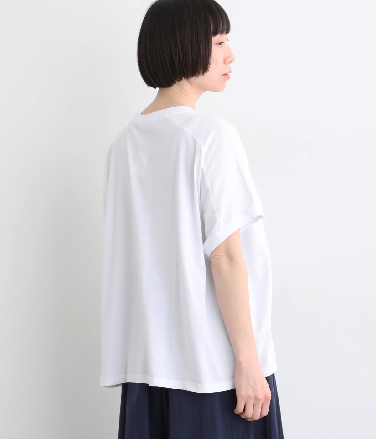 良質なコットン素材を使用した天竺生地で、しっとりとなめらかな肌ざわりに仕上げました。薄手で軽やかな着心地ながら、やわらかく体になじみます。のびがよく吸水性にも優れているので、汗ばむ季節も頼れる素材感です。