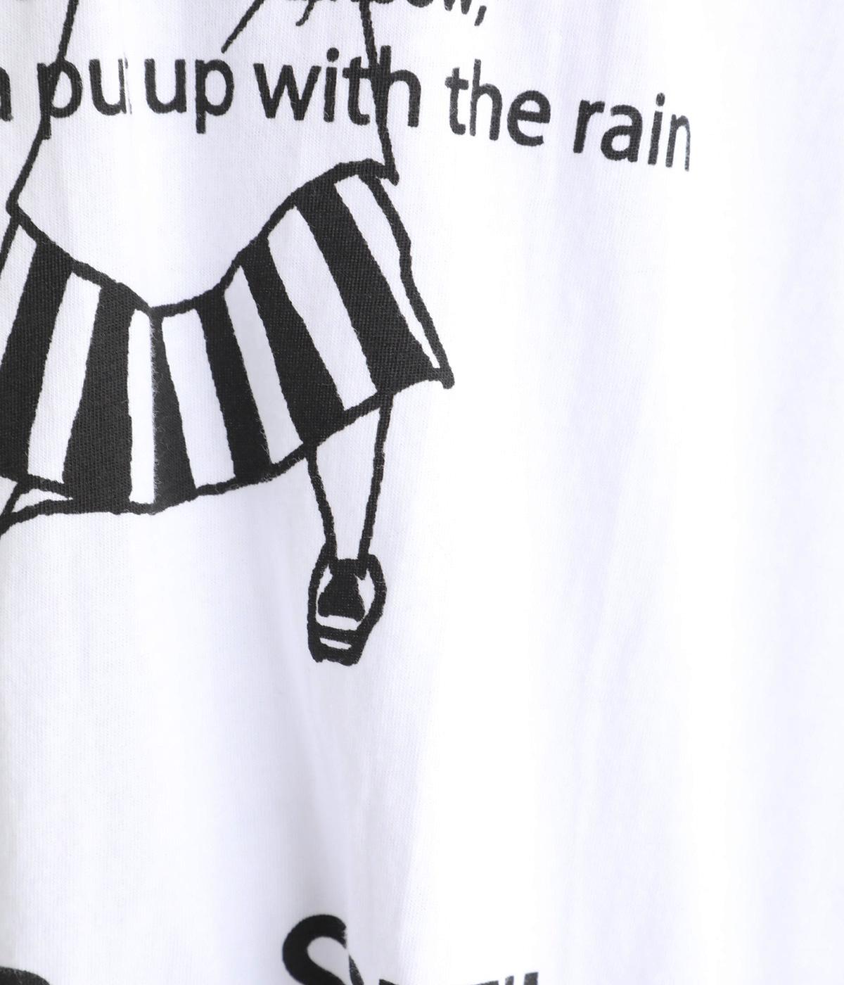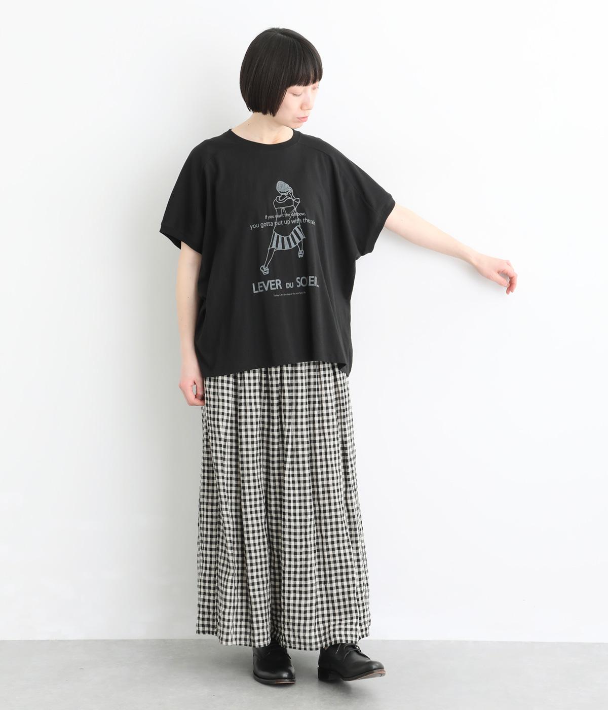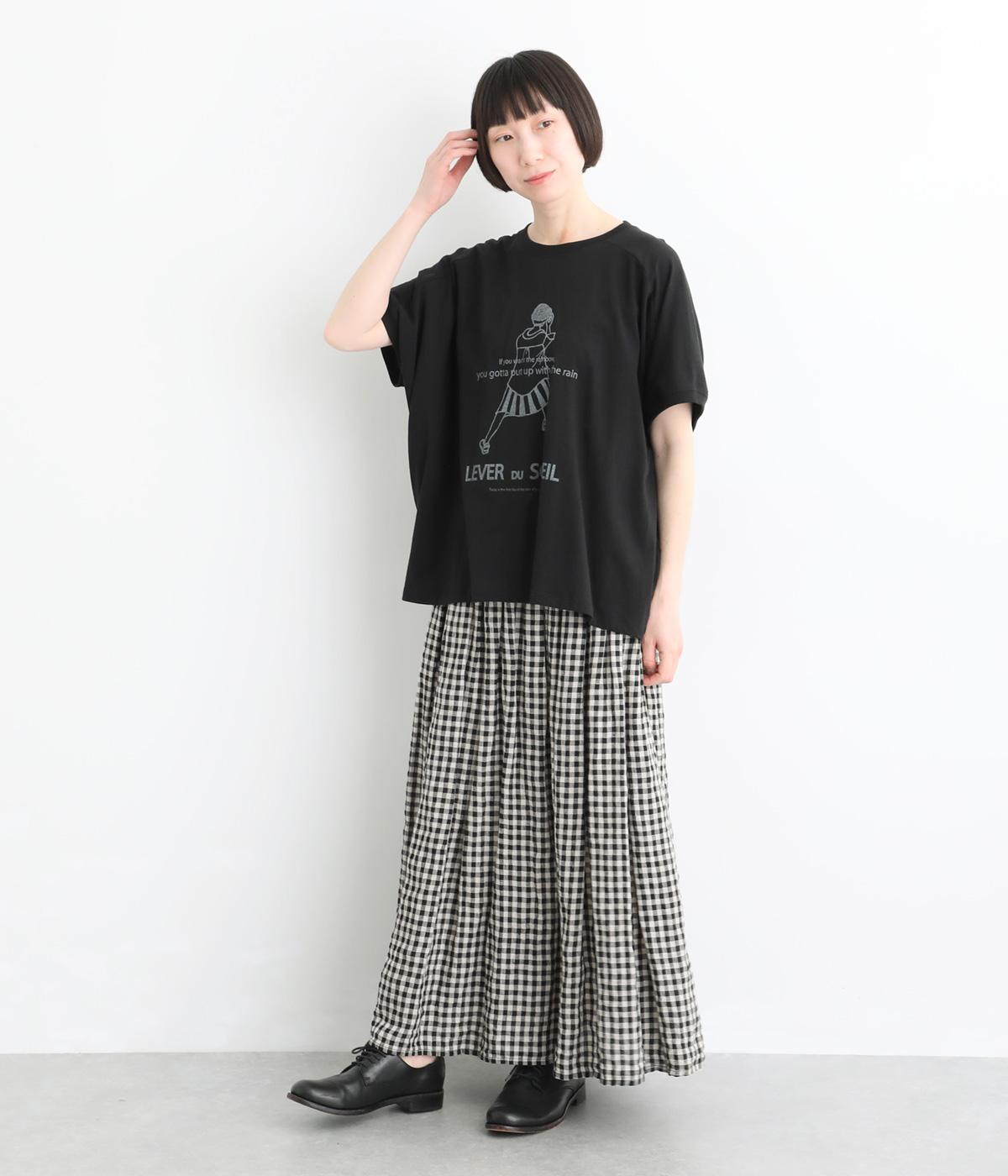 女の子のイラストをフロントに配した、存在感のあるTシャツです。ポンチョのようにゆったりと広がるワイドシルエットで、着るだけでこなれた印象に。身頃から続く袖のデザインにより動きやすく、リラックス感のある着心地も魅力です。コーディネートにほどよい個性をプラスできる一枚です。