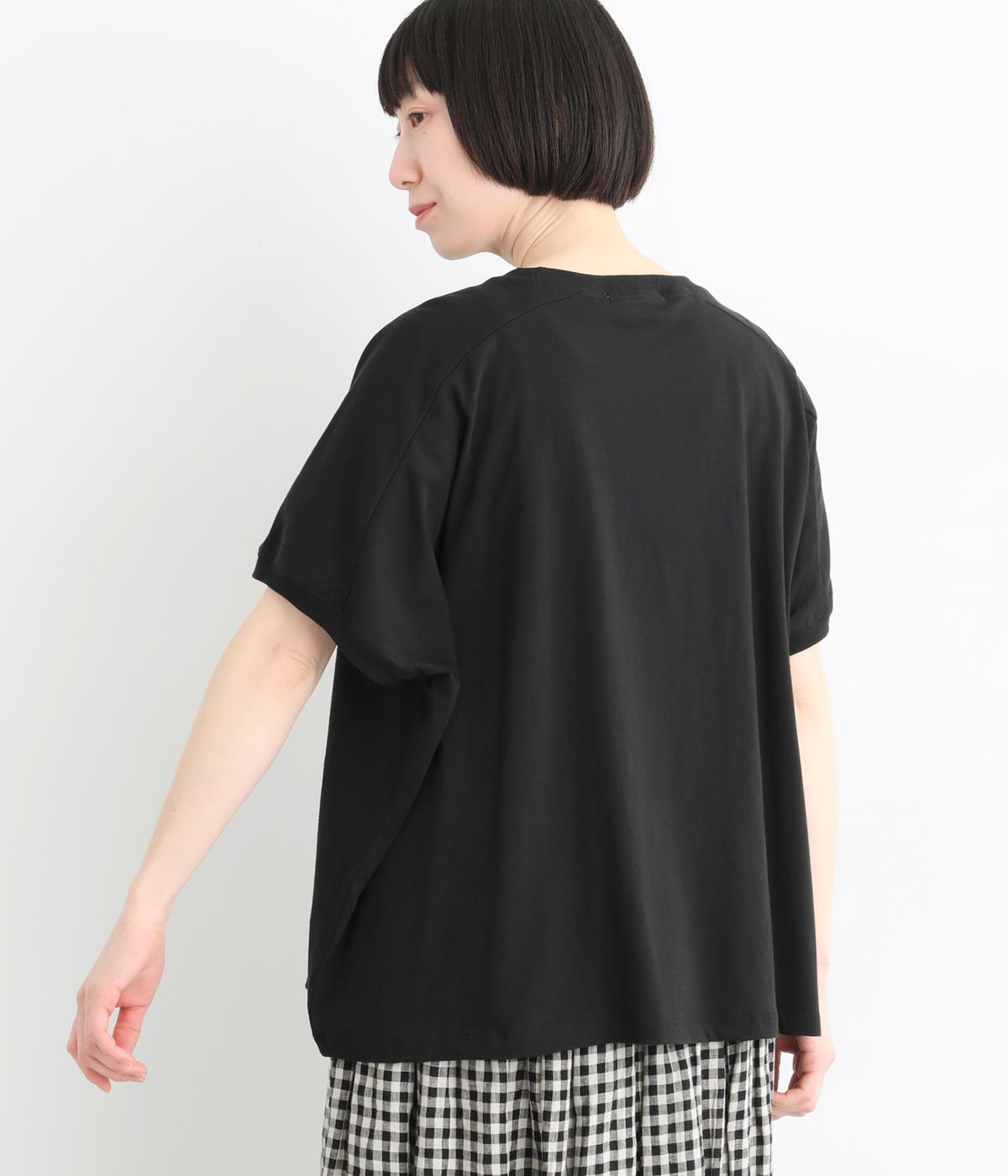 良質なコットン素材を使用した天竺生地で、しっとりとなめらかな肌ざわりに仕上げました。薄手で軽やかな着心地ながら、やわらかく体になじみます。のびがよく吸水性にも優れているので、汗ばむ季節も頼れる素材感です。