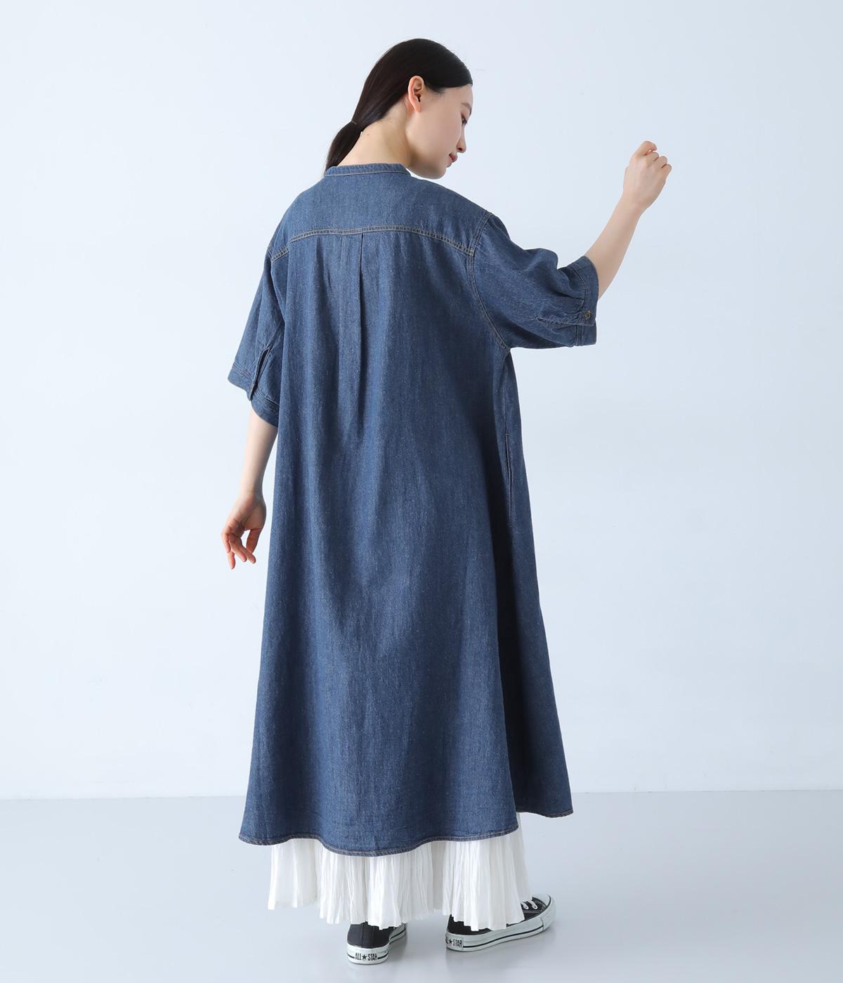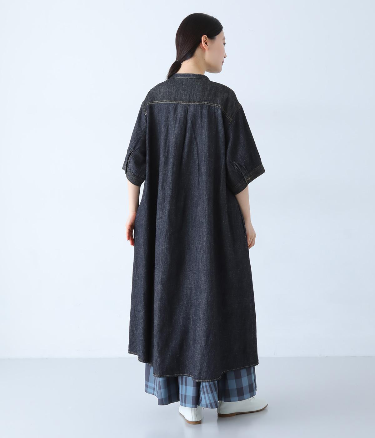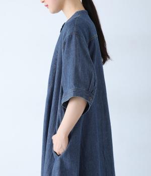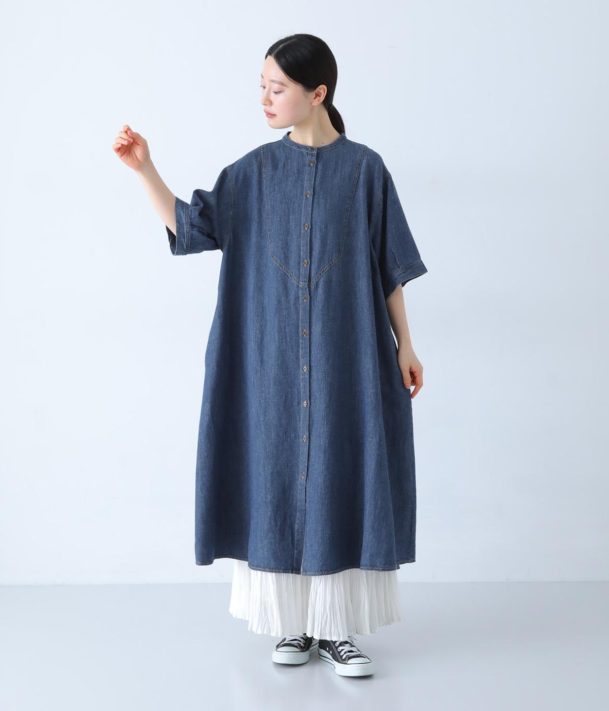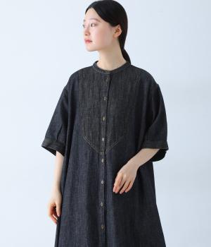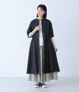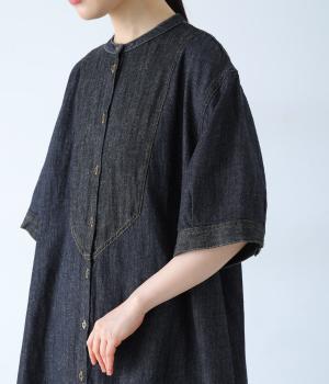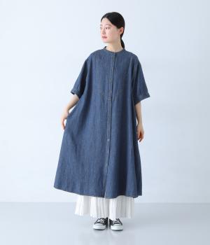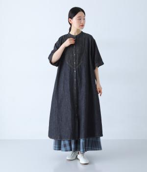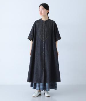 ゆったりとしたシルエットが魅力のシャツワンピースです。縦のラインがすっきりとした印象をつくり、リラックス感がありながらもバランスよく着こなせます。胸元の切り替えステッチがさりげないアクセントとなり、カジュアルさのなかにほどよいきちんと感をプラス。前をあけて羽織り風の着こなしもおすすめです。