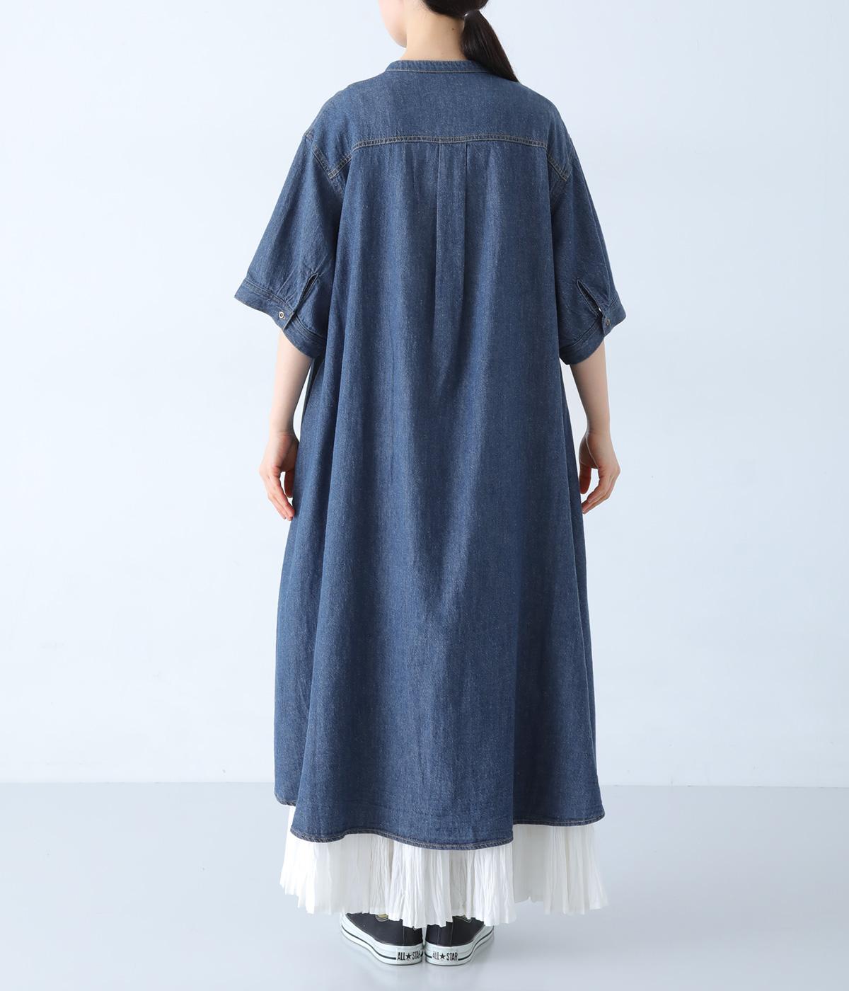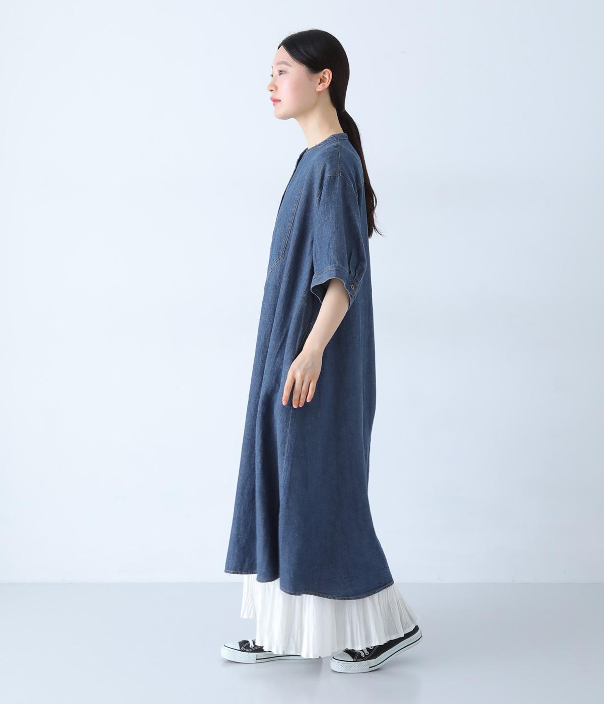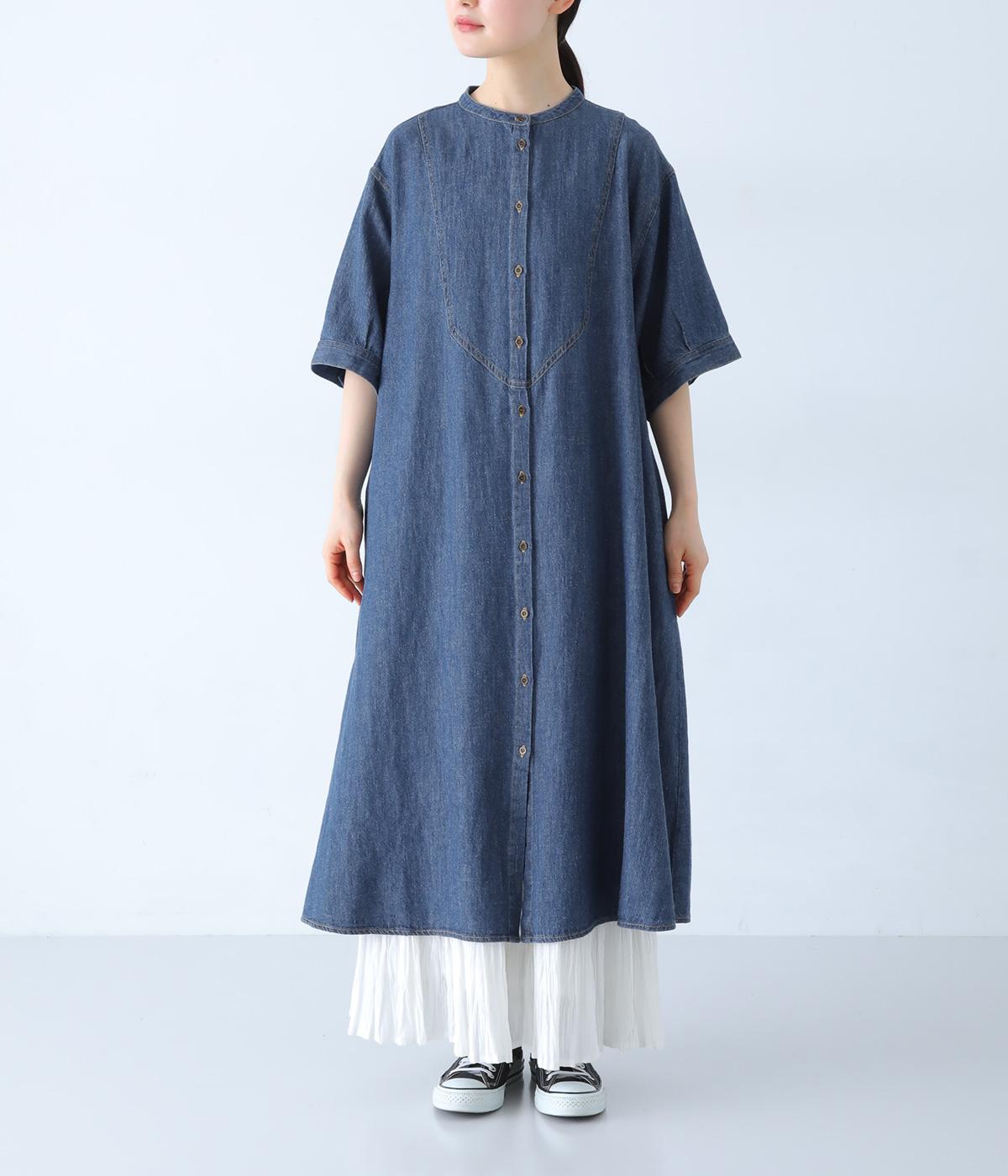 ゆったりとしたシルエットが魅力のシャツワンピースです。縦のラインがすっきりとした印象をつくり、リラックス感がありながらもバランスよく着こなせます。胸元の切り替えステッチがさりげないアクセントとなり、カジュアルさのなかにほどよいきちんと感をプラス。前をあけて羽織り風の着こなしもおすすめです。