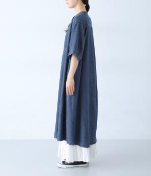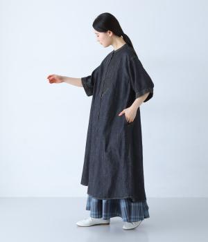 ほどよく薄手に仕立てた、コットンリネン素材のデニム生地を採用。やわらかく軽やかな着心地です。くたっとしたしなやかさが動きにやさしくなじみ、着用を重ねるほどに味わいが増していくのも魅力。
