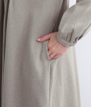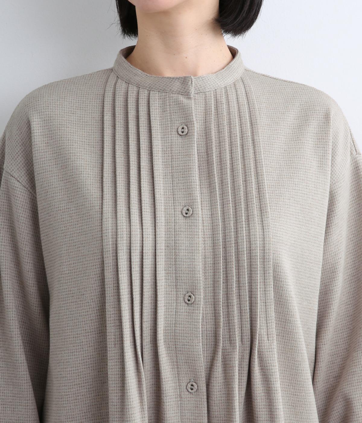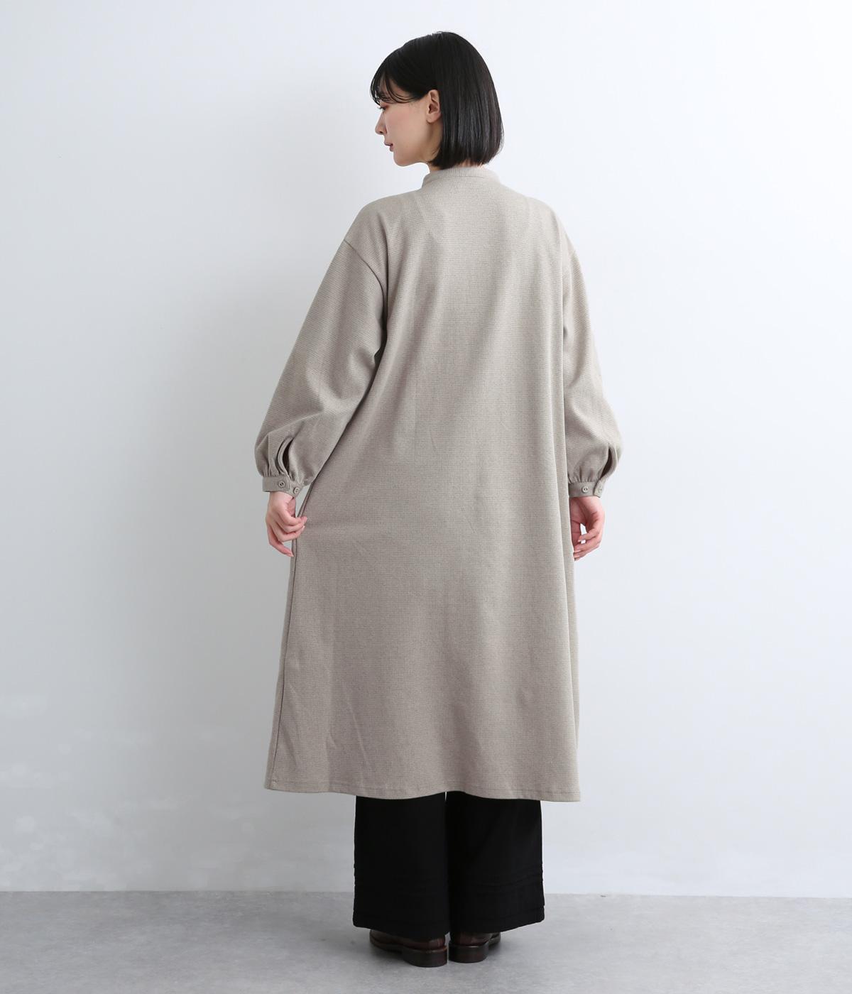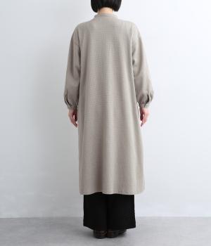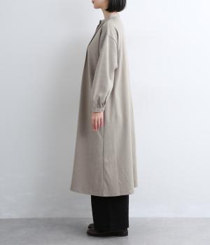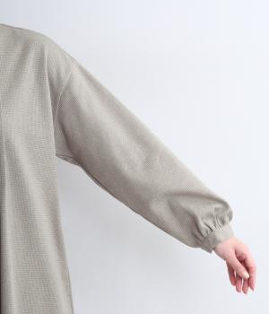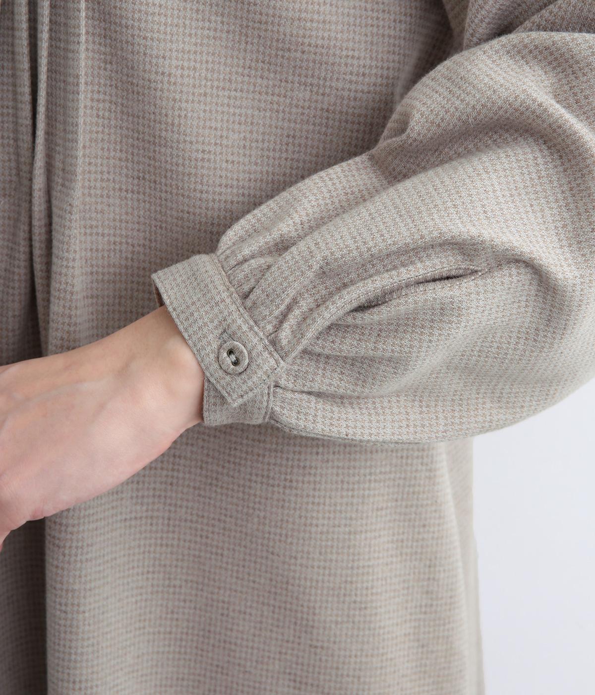 前面にほどこしたピンタックがきちんと感を演出するワンピース。タック下は優雅なドレープを描き、ふんわりと女性らしいシルエットです。袖のシルエットやくるみボタンでかわいらしさをプラスしました。