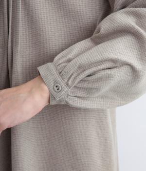 心地いい伸縮性としなやかなハリが特徴のポンチ生地を使用しています。ふっくらとほどよい厚みで優しい着心地を叶えます。杢調の味わいのある表情も魅力です。
