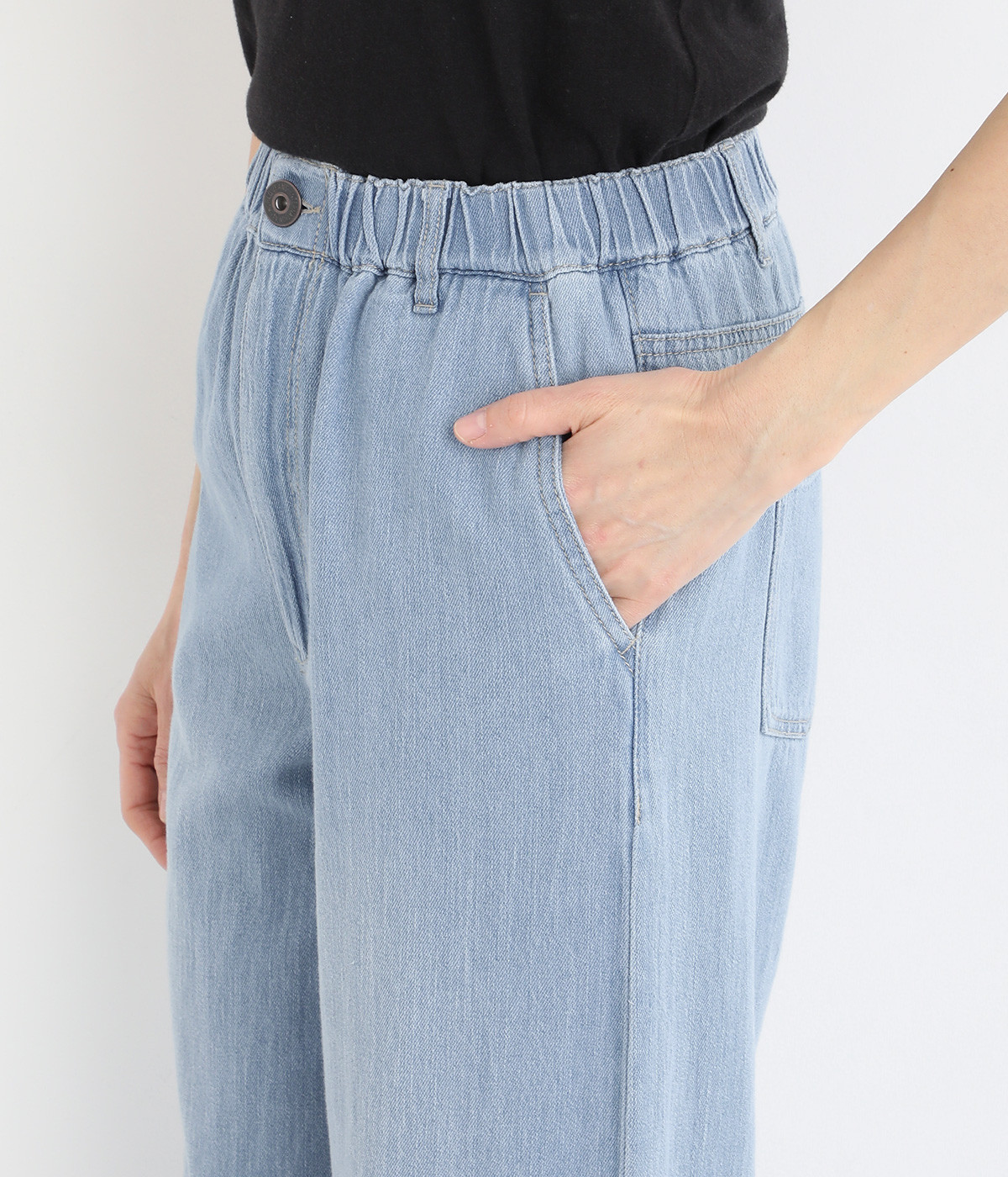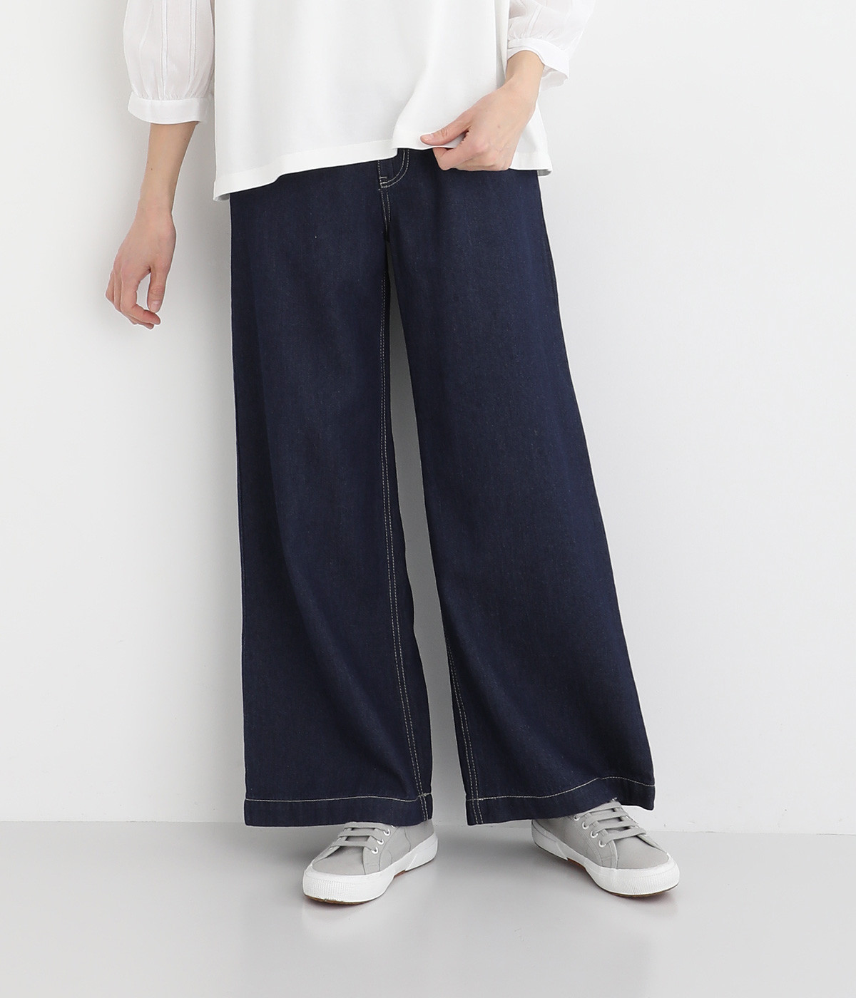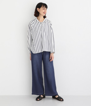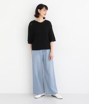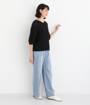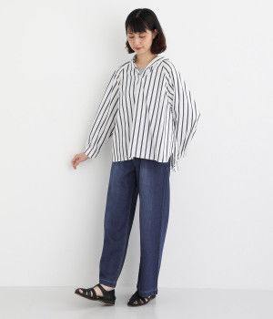 リネンをブレンドさせて風合いをより豊かにした綿麻のデニム生地を採用。軽やかでやわらかい中厚生地はあたたかな季節でもはきやすく、ロングシーズン活躍します。