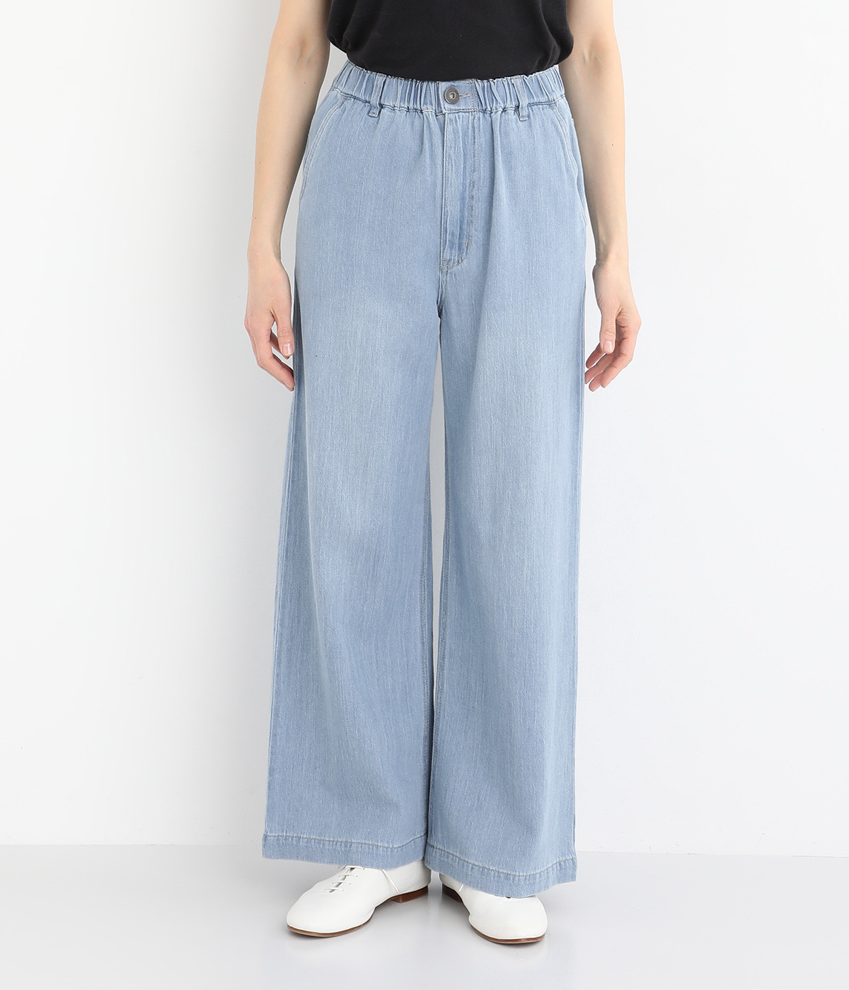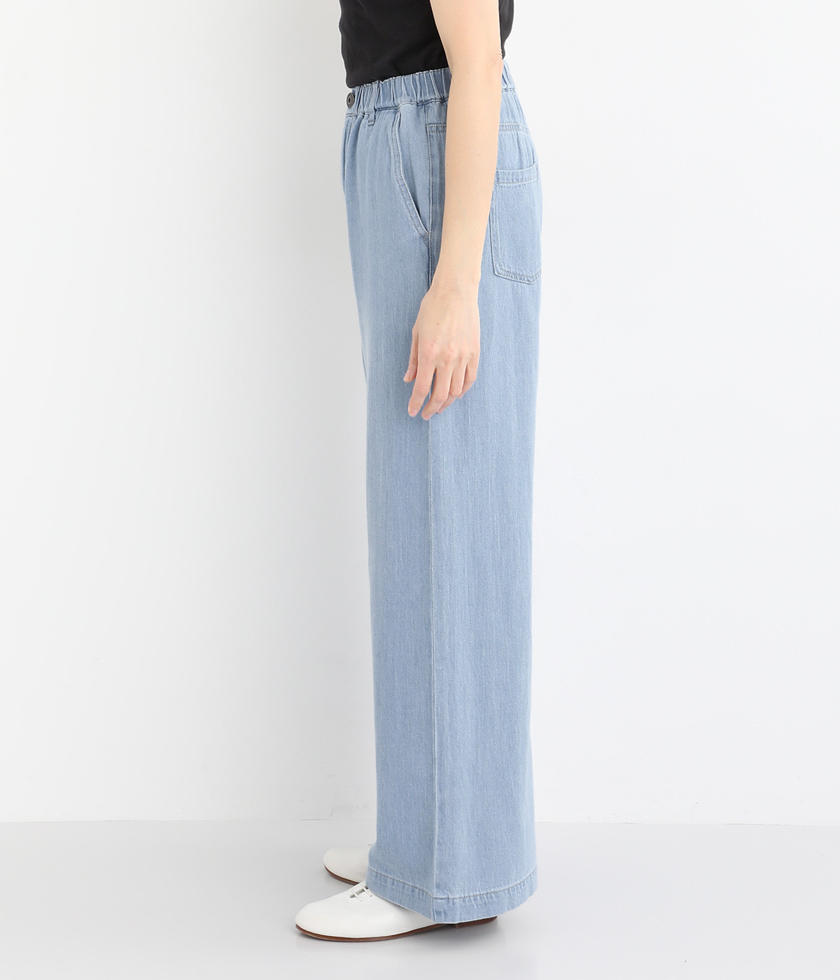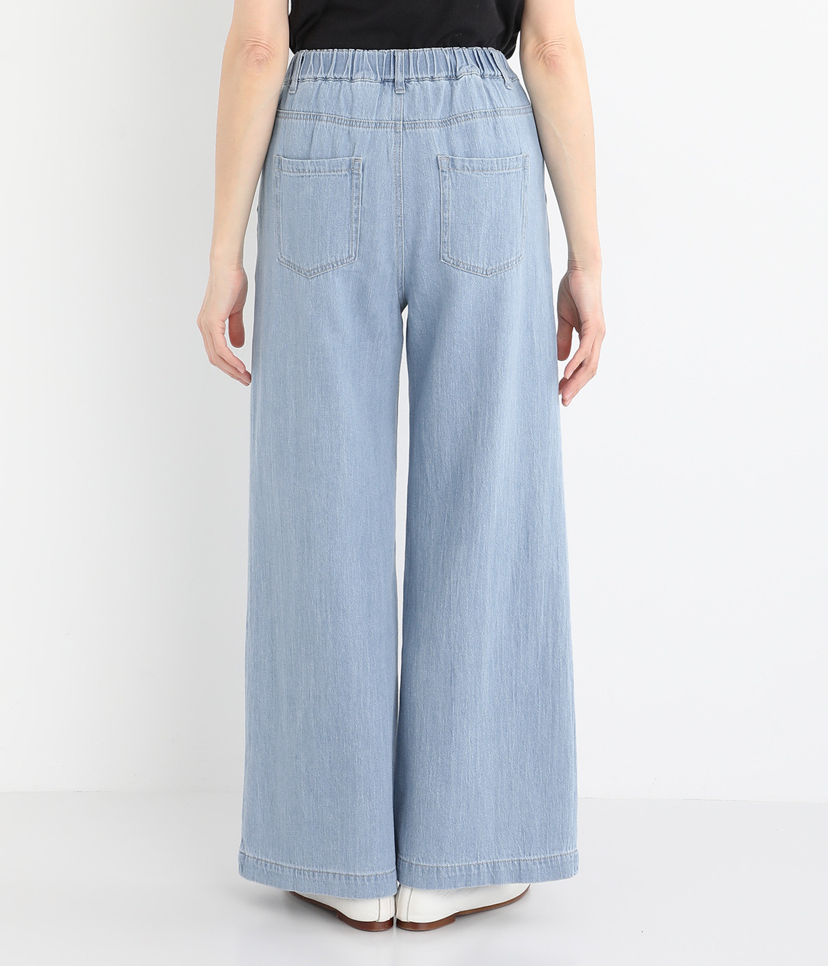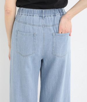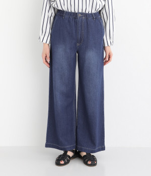 すとんと落ちたワイドシルエットが大人のカジュアルスタイルを盛り上げる一本。ヒップポケットで後ろ姿もすっきり見えます。フロント開きにウエストゴム入りでストレスを軽減した着用感もうれしいポイント。