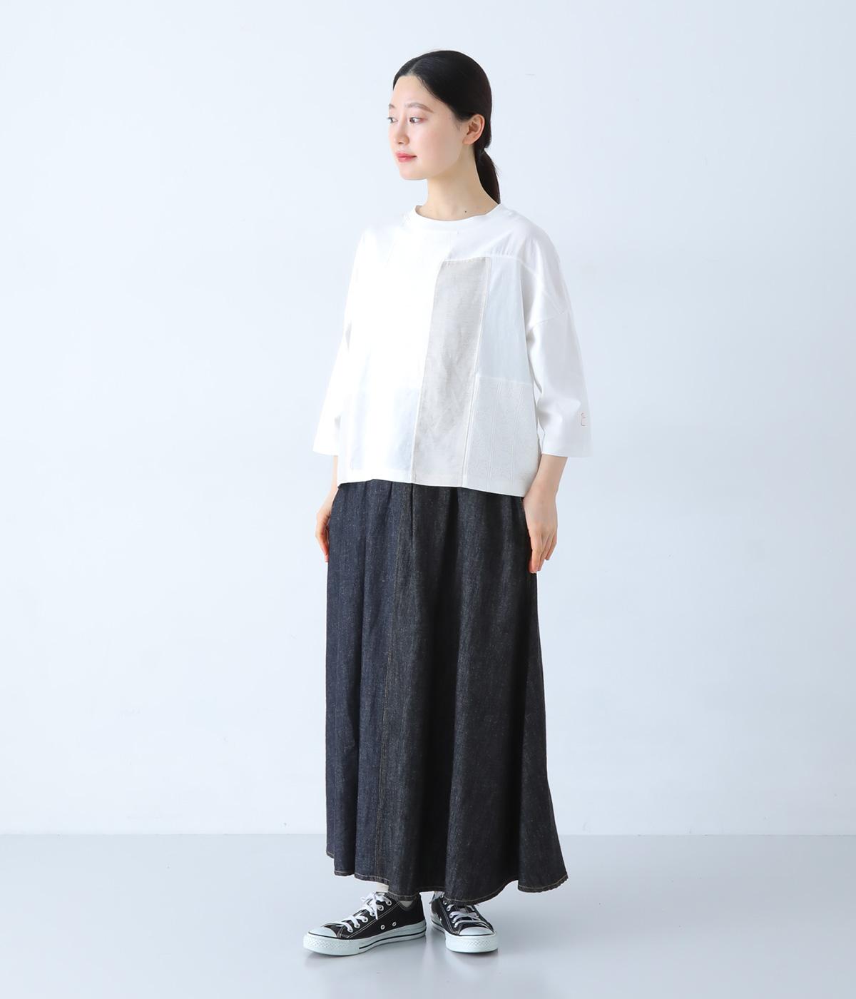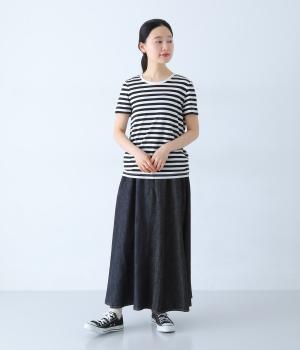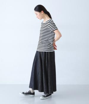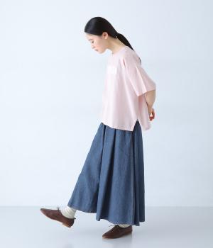 ほどよく薄手に仕立てた、コットンリネン素材のデニム生地を採用。やわらかく軽やかなはき心地です。くたっとしたしなやかさが動きにやさしくなじみ、着用を重ねるほどに味わいが増していくのも魅力。