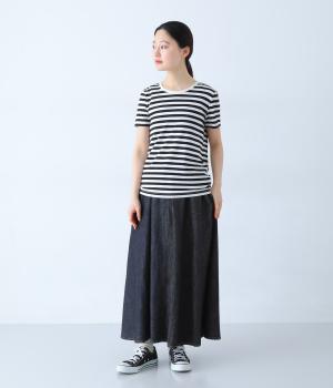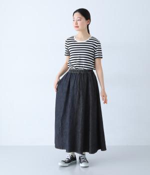 たっぷりと生地を使ったサーキュラーシルエットが、うつくしく広がる一枚です。動くたびに自然なドレープが生まれ、軽やかで女性らしい印象に。シンプルなデザインで、幅広いコーディネートに取り入れやすいのも魅力です。ウエストは総ゴム仕様で、リラックス感のあるはき心地に。