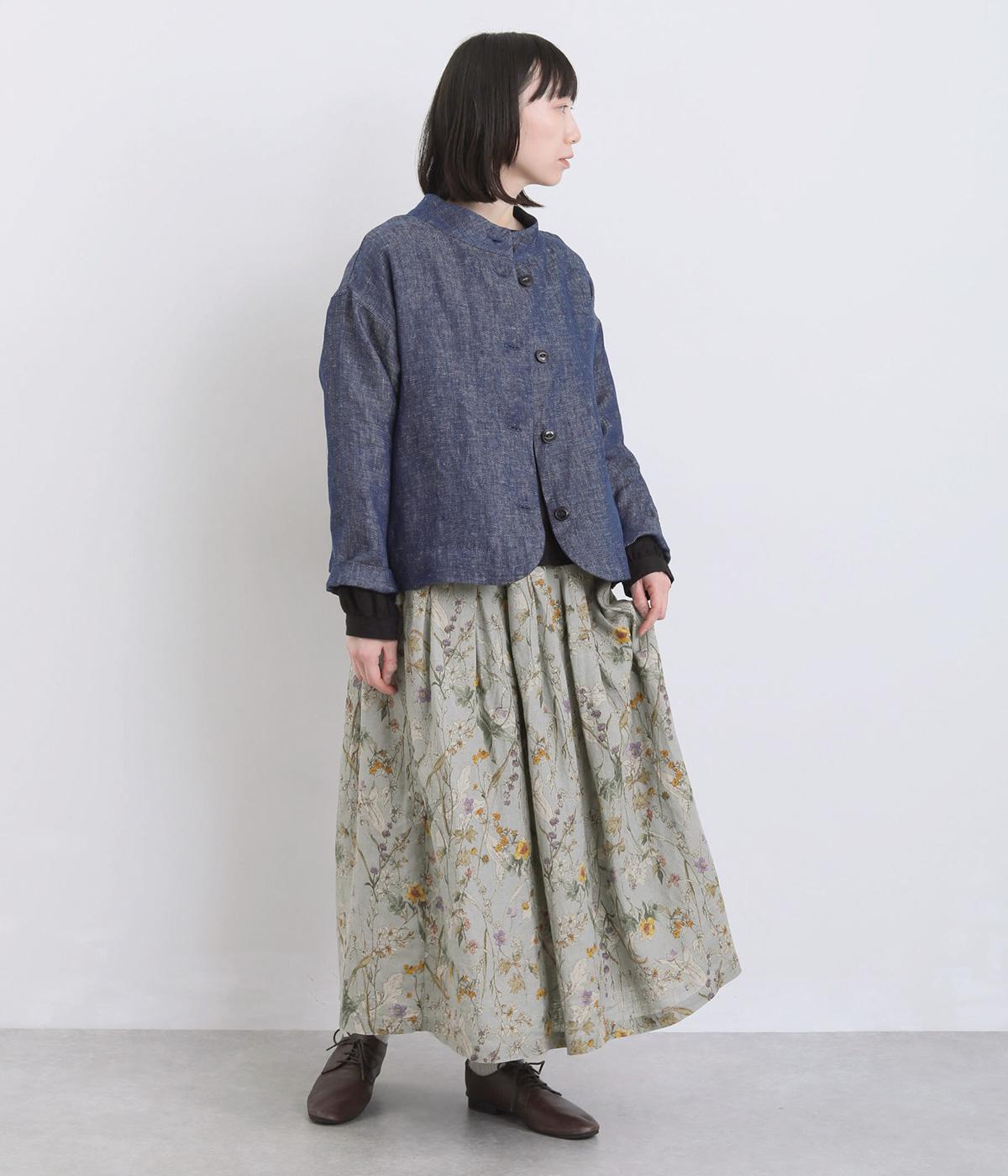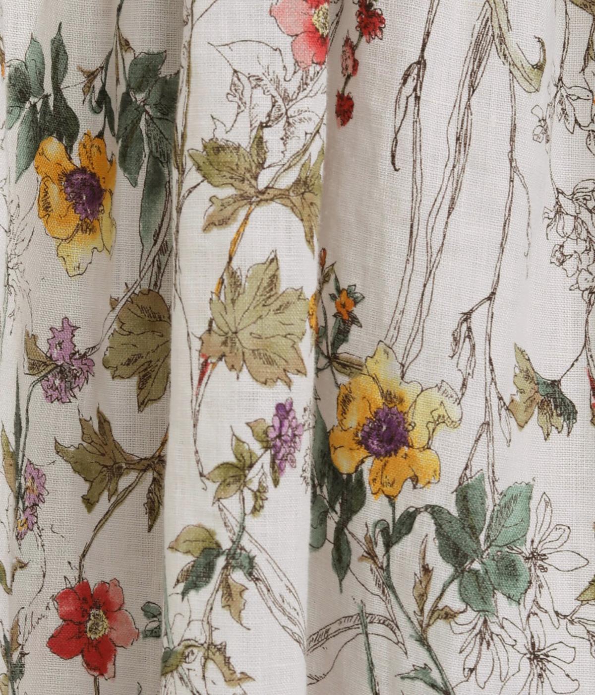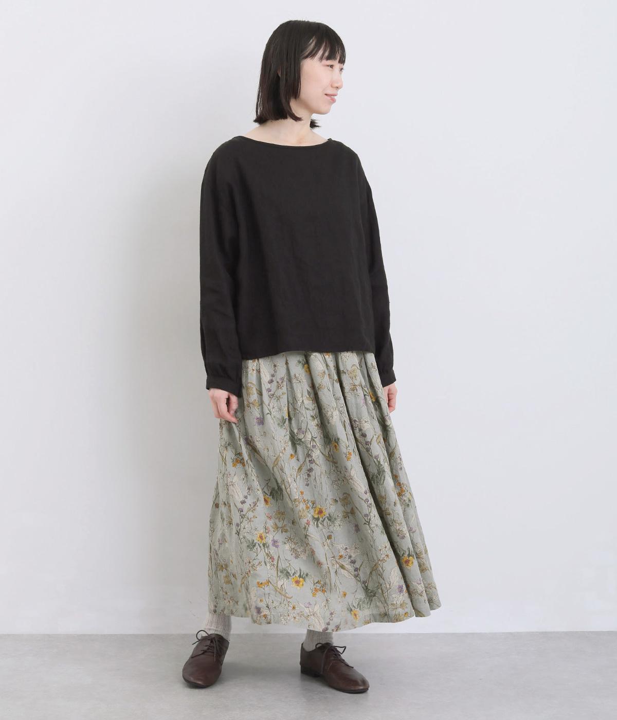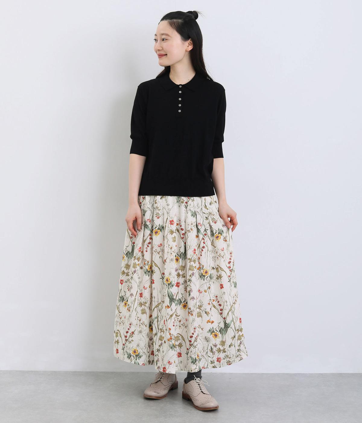 小花柄をちりばめた、水彩タッチのプリントがやさしい雰囲気を添えます。ウエストにたっぷりとタックを施し、ほどよいボリューム感のあるシルエットに仕上げました。裏地つきなので安心して着用できるのも◎。コーディネートに自然な華やかさをプラスしてくれる一枚です。