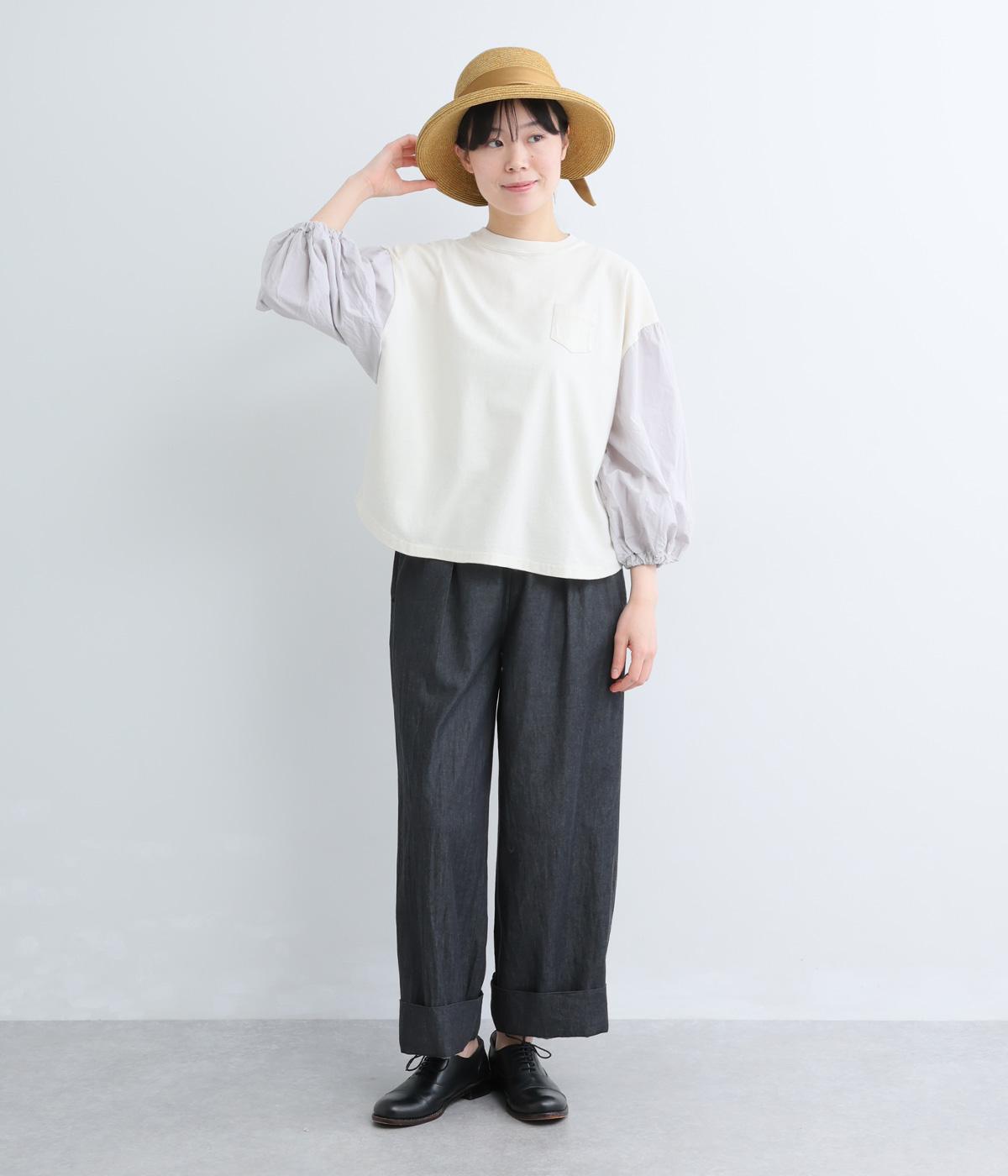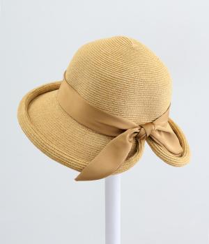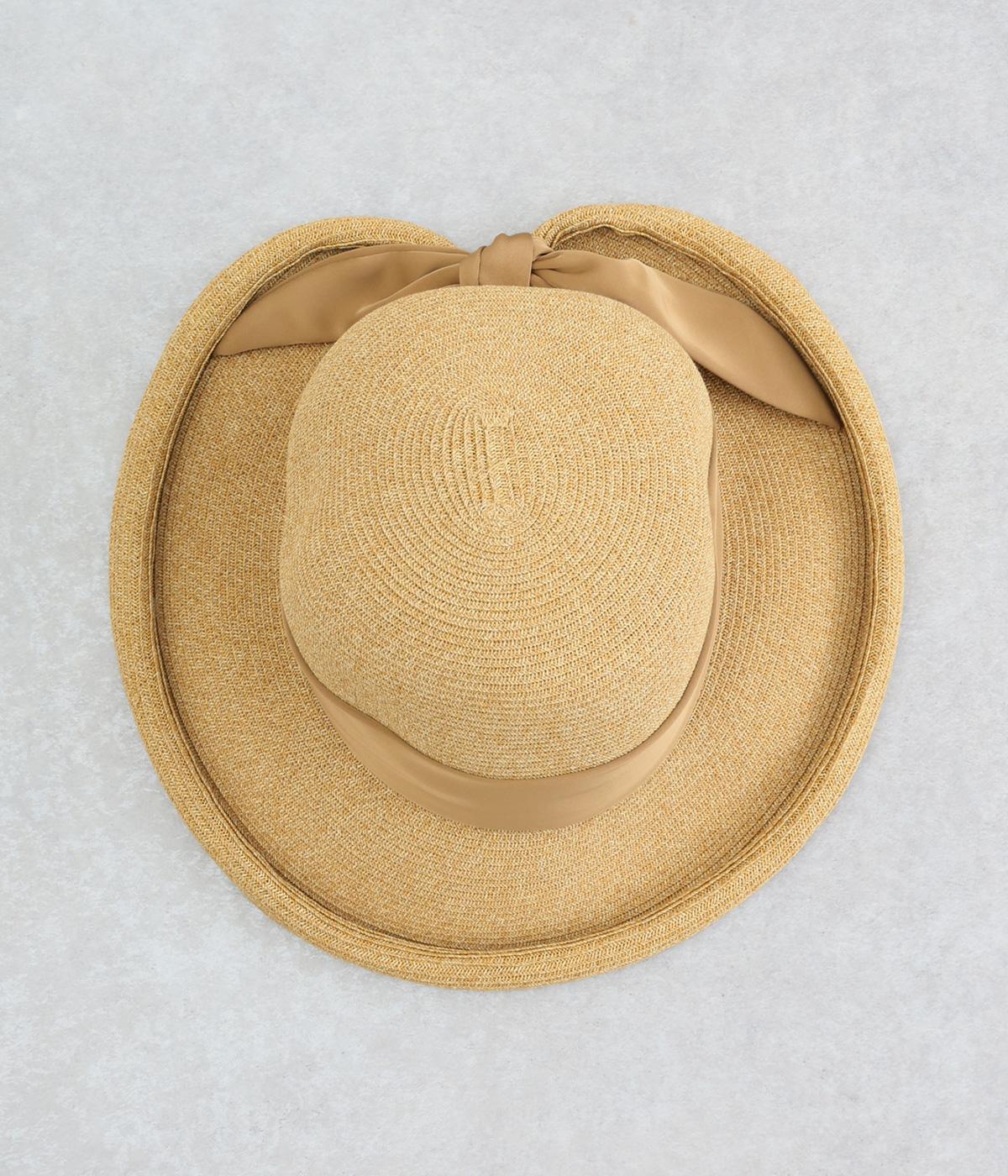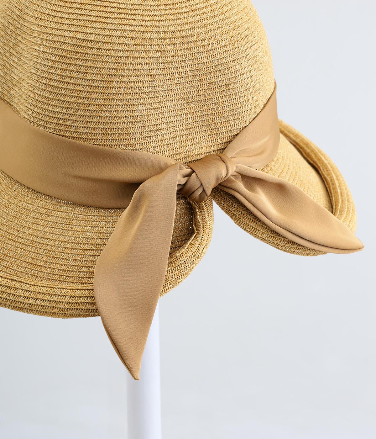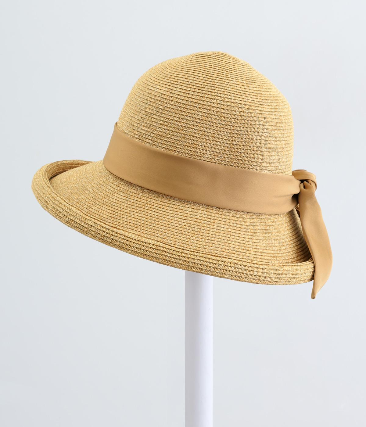 うしろのつばが短く、襟元に干渉しにくいセーラーハット。リボンが女性らしいアクセントを添え、顔まわりを優しく包み込むフォルムは日差しをしっかりと遮ります。装いに軽やかなニュアンスをプラスするアイテムです。