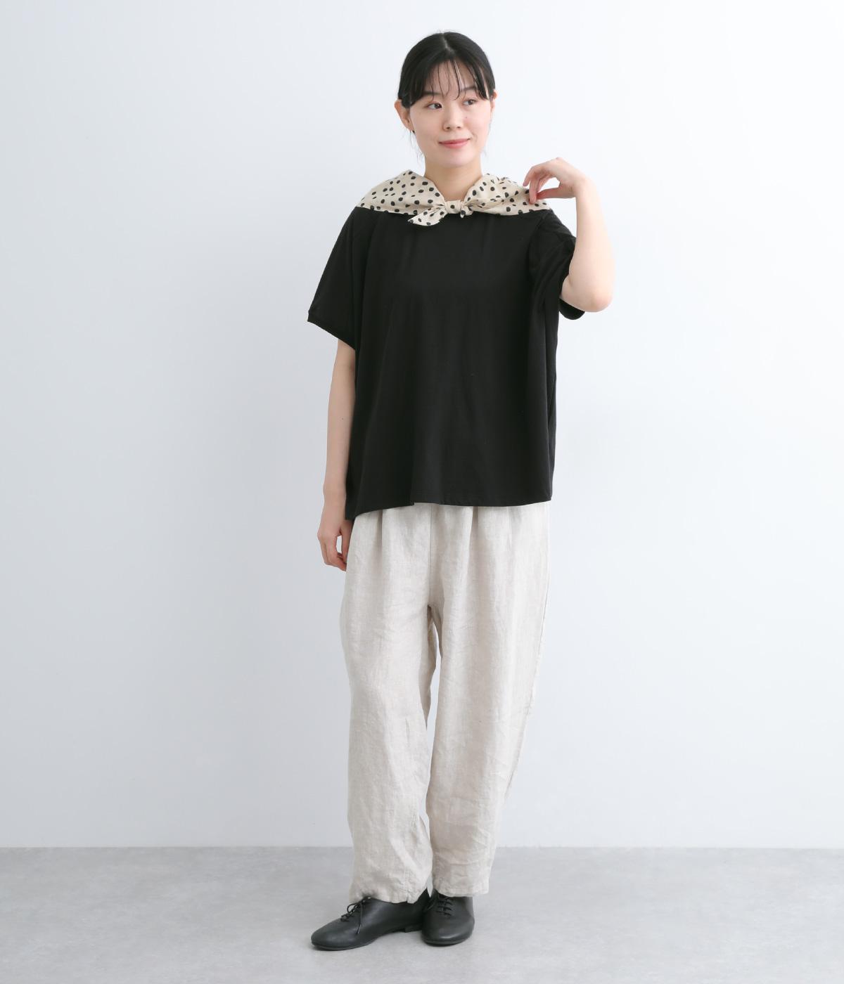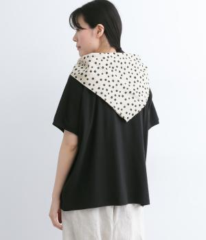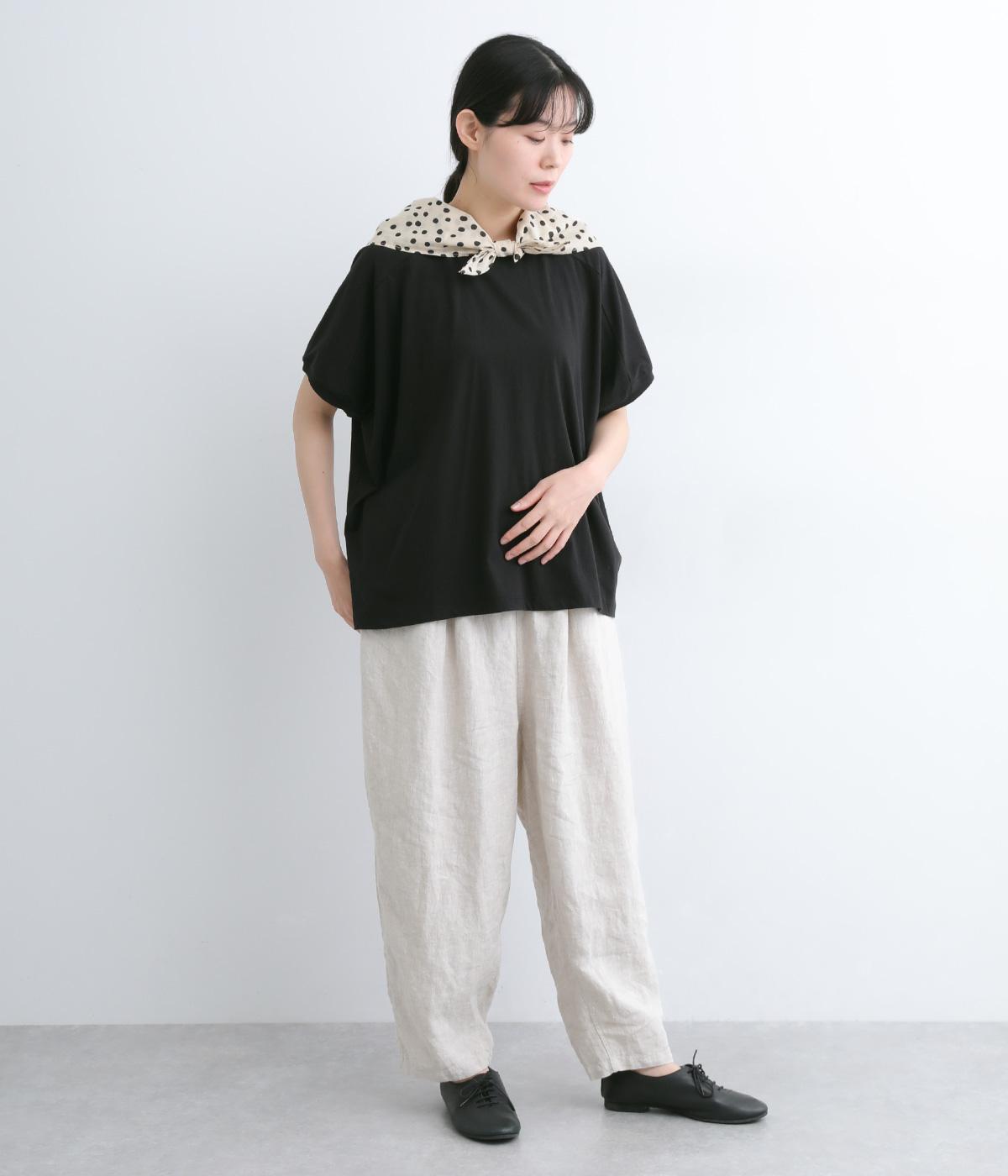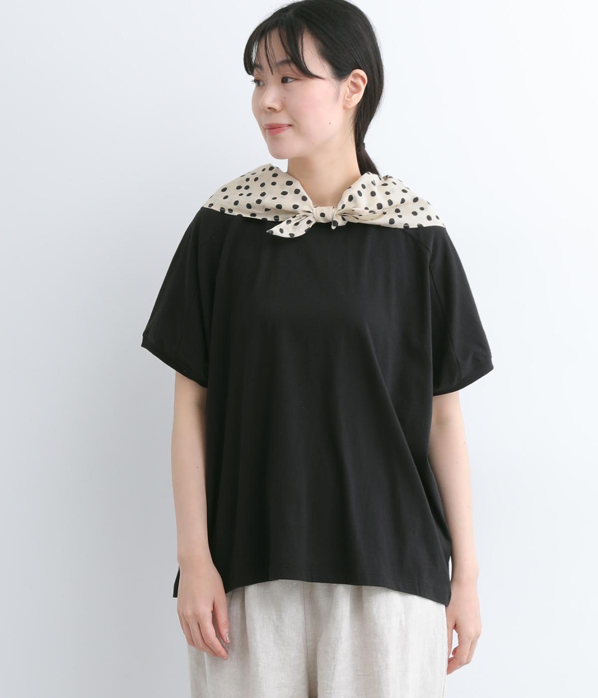 やわらかで着心地のいい、落ち感のあるコットン天竺をボディに使用しています。薄手で使い勝手が良く、インナー使いにも◎。繊細で軽やかなコットンボイルのスカーフもついたセットアイテムです。