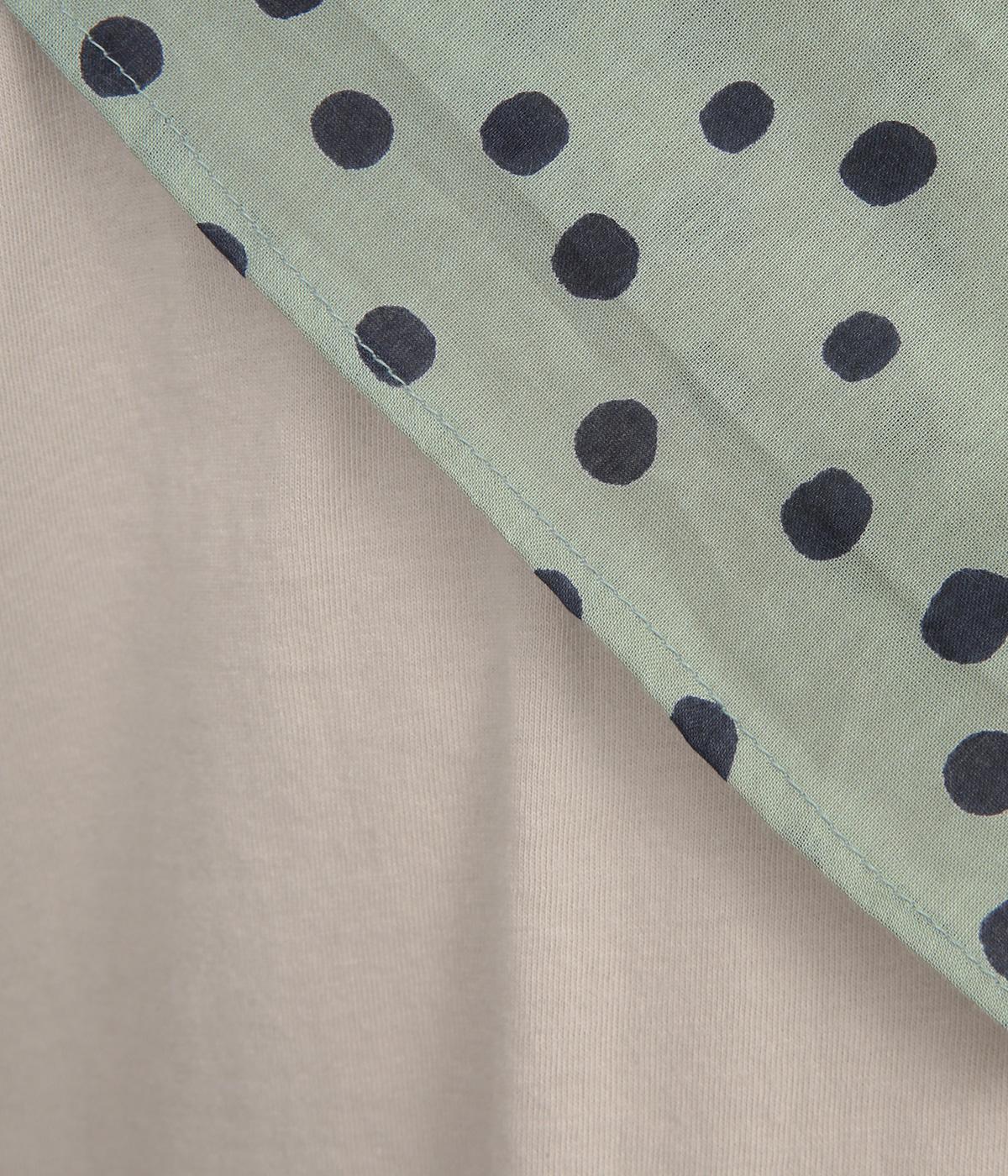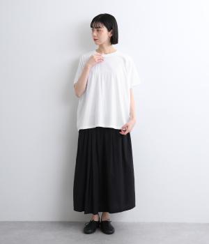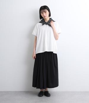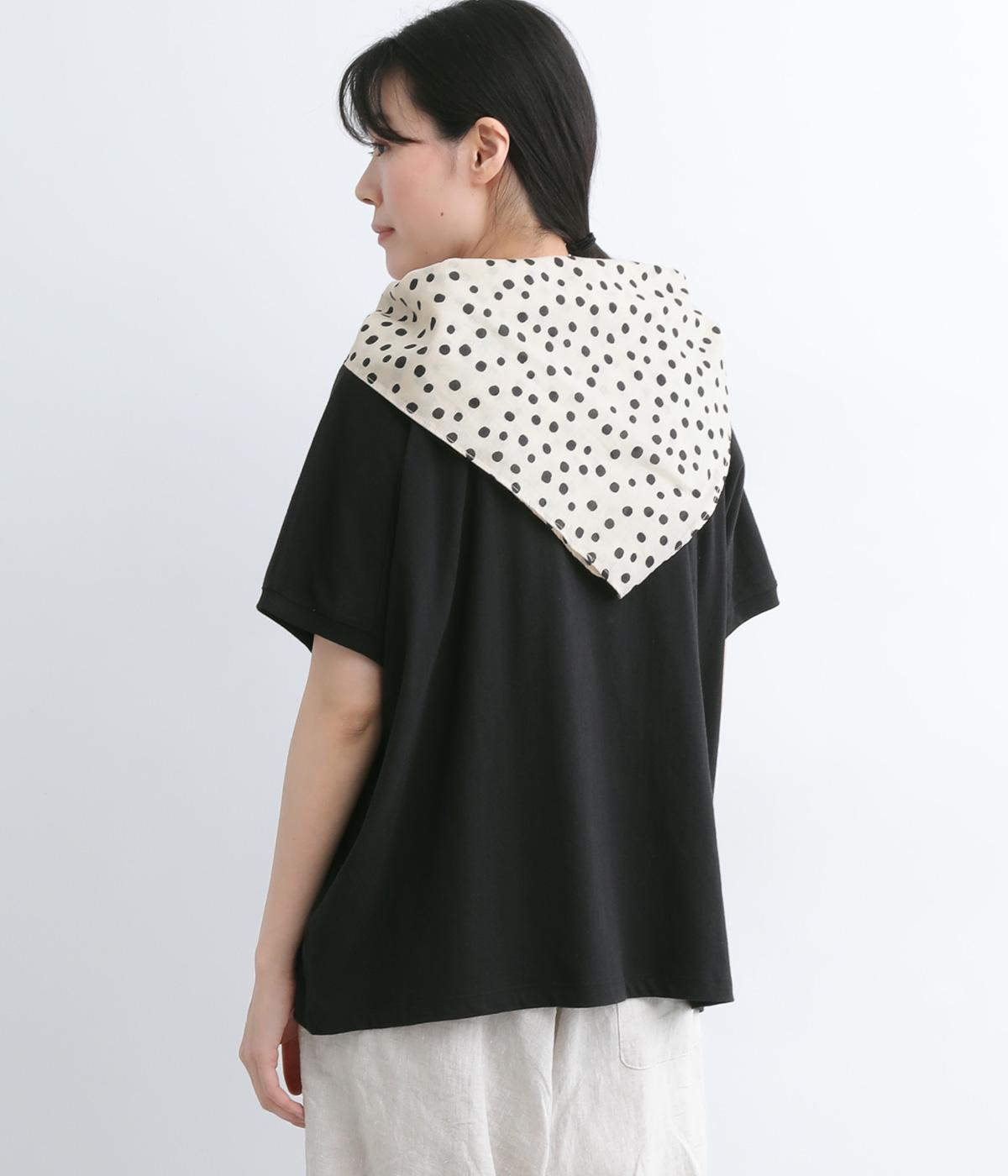 やわらかで着心地のいい、落ち感のあるコットン天竺をボディに使用しています。薄手で使い勝手が良く、インナー使いにも◎。繊細で軽やかなコットンボイルのスカーフもついたセットアイテムです。