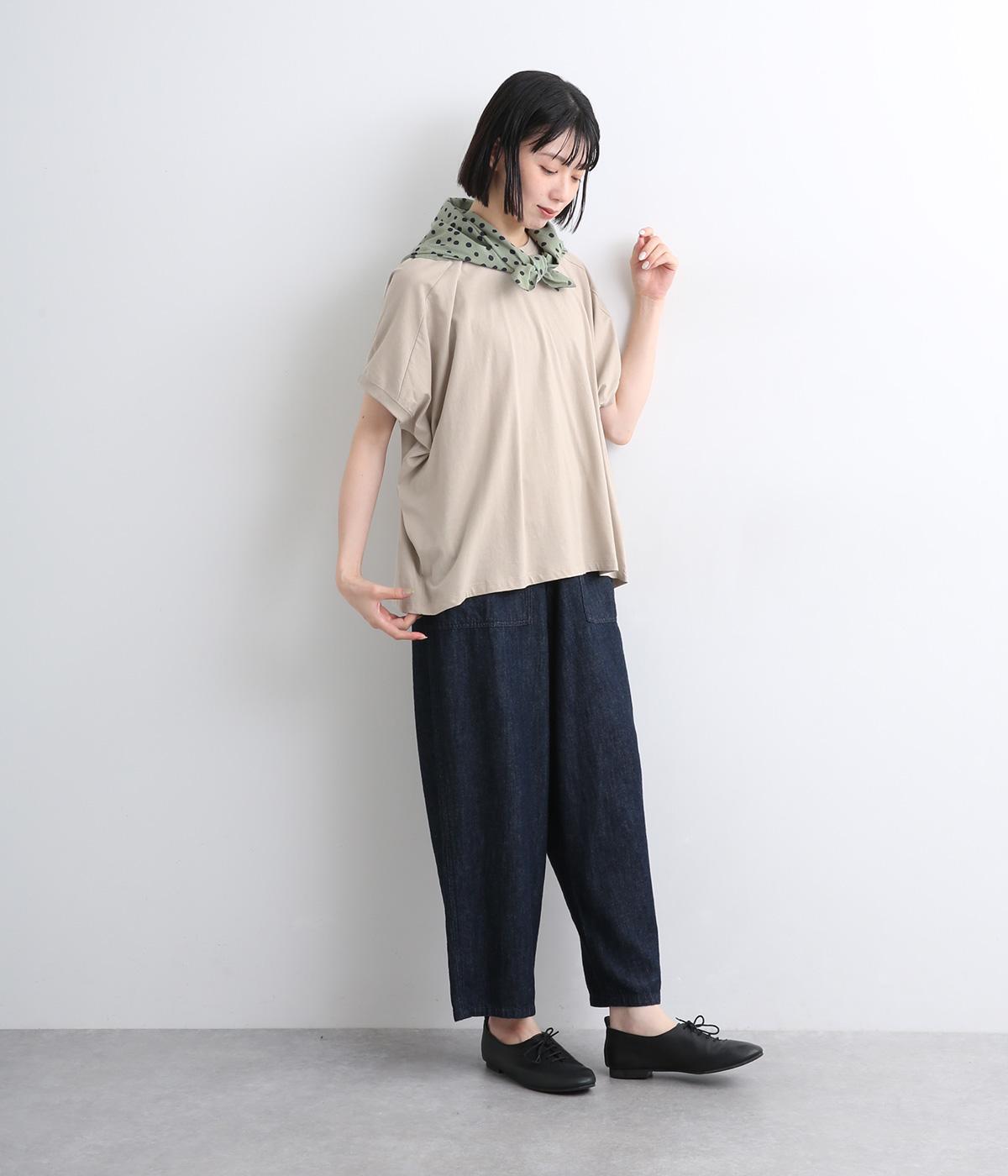 ポンチョのようにたっぷりとしたドルマンスリーブのワイドTシャツです。やわらかな生地感が活かされ、裾が自然と揺れて雰囲気よく着こなせます。付属スカーフを首元にまけばスタイリングポイントに。それぞれ単品でも活躍するバリューアイテムです。