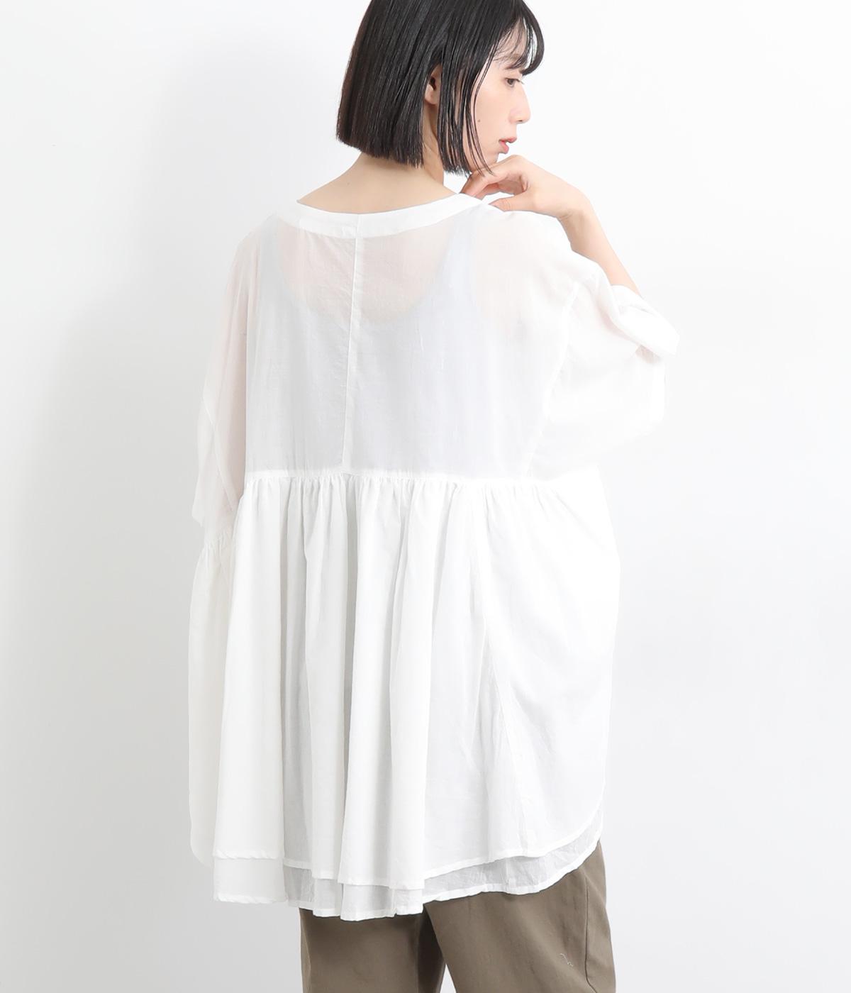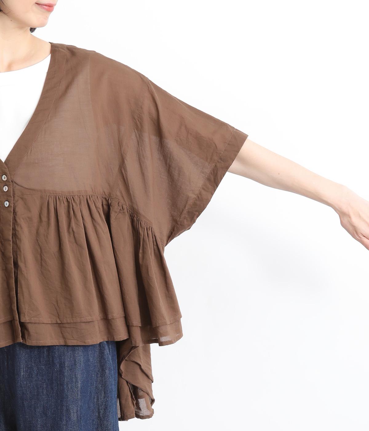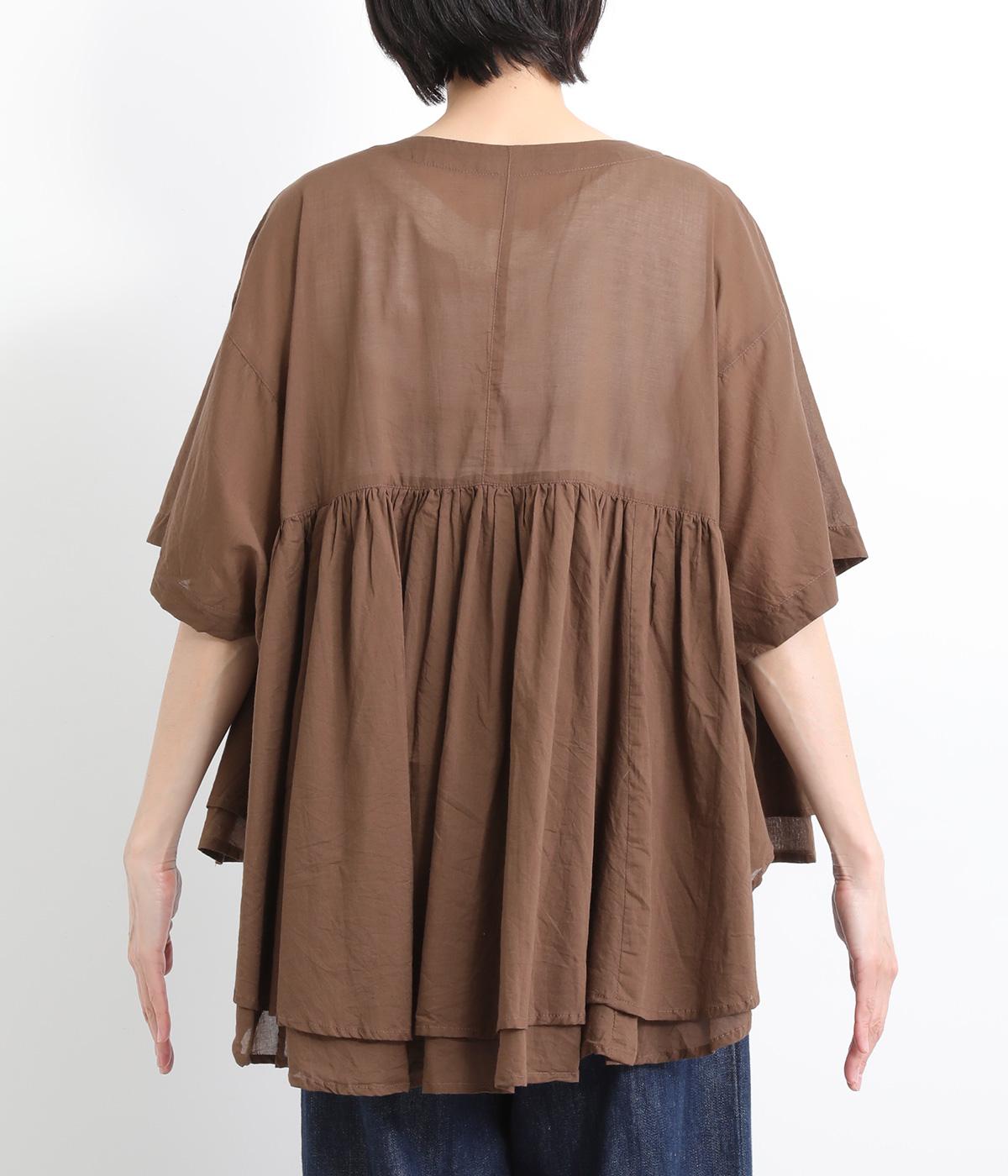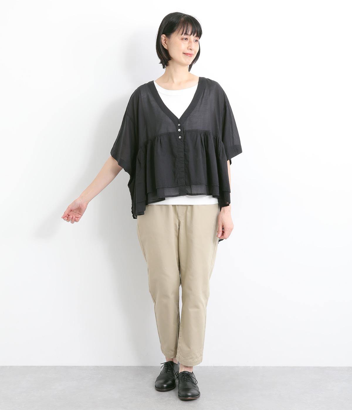 ギャザーをたっぷり入れたフレア感と、前後で丈感に変化を出した動きのあるシルエットが特徴的。シンプルな装いに羽織るだけでコーディネートをぐっと華やかに魅せてくれます。合わせるインナーによってロングシーズン着まわせます。