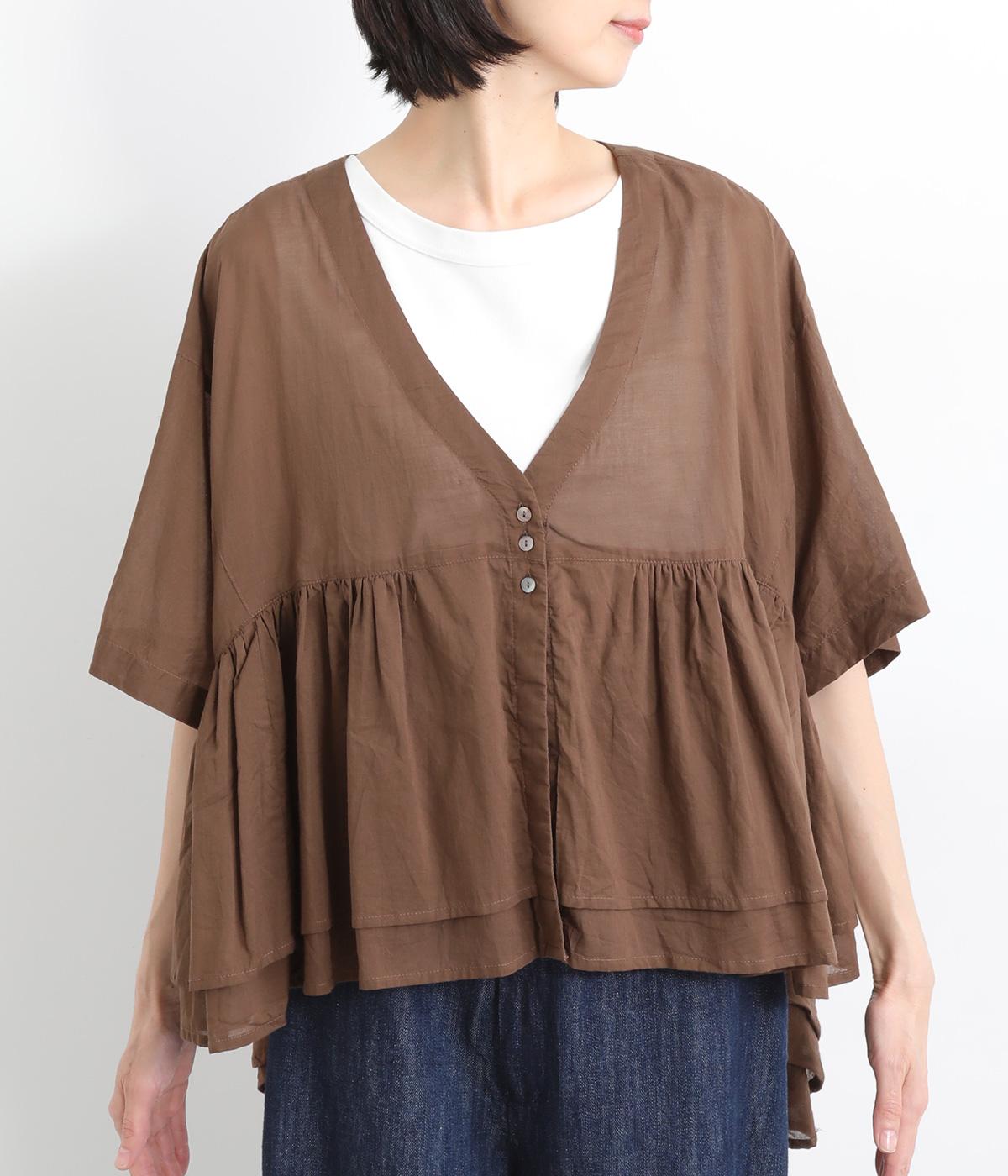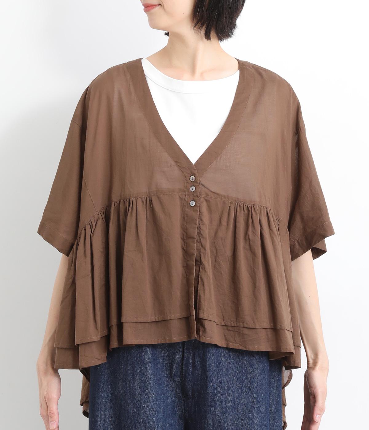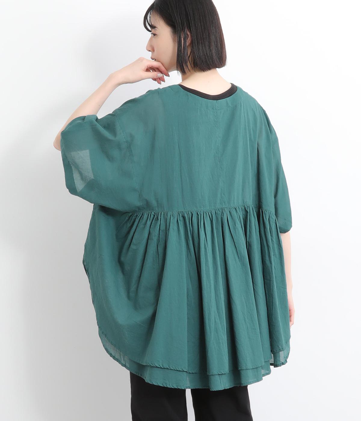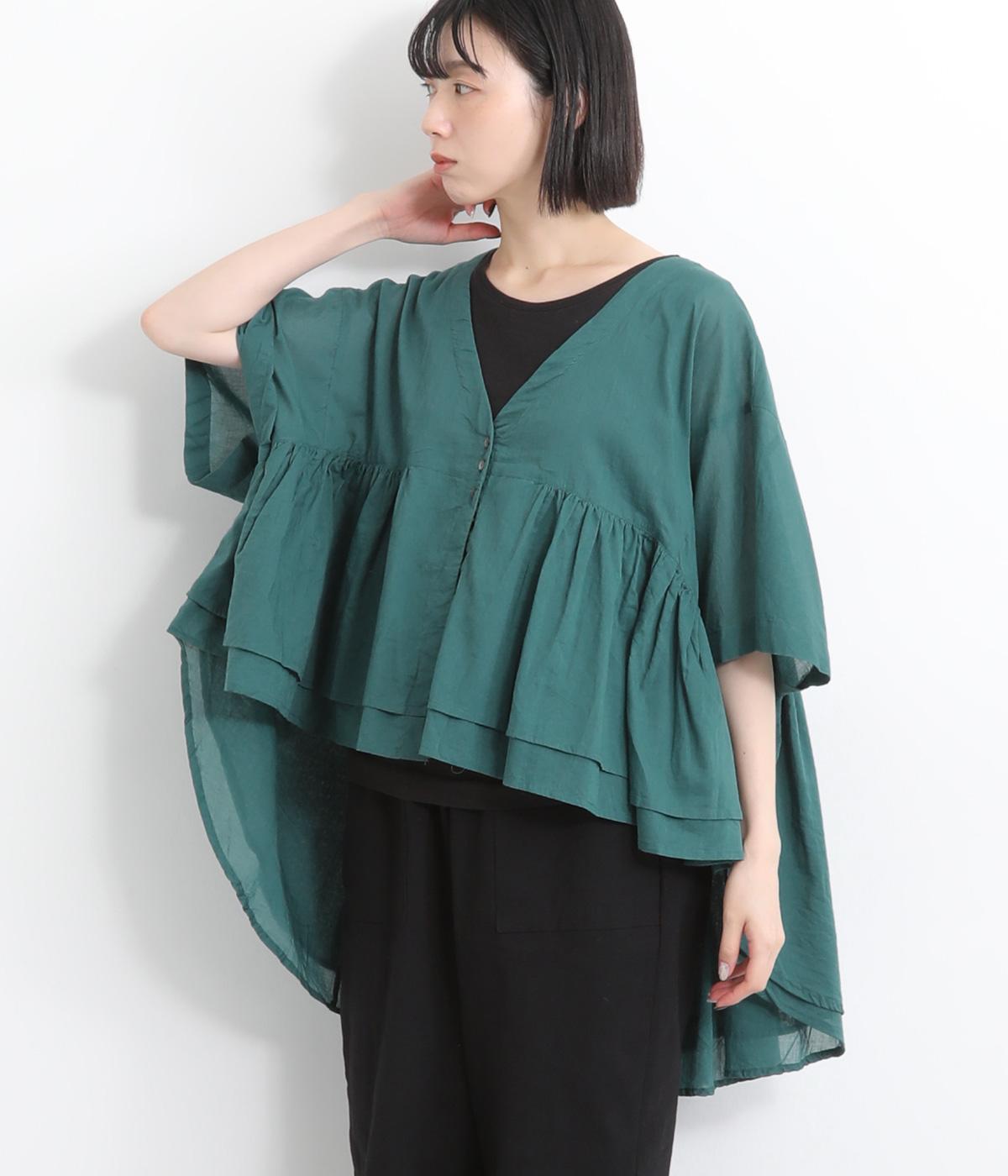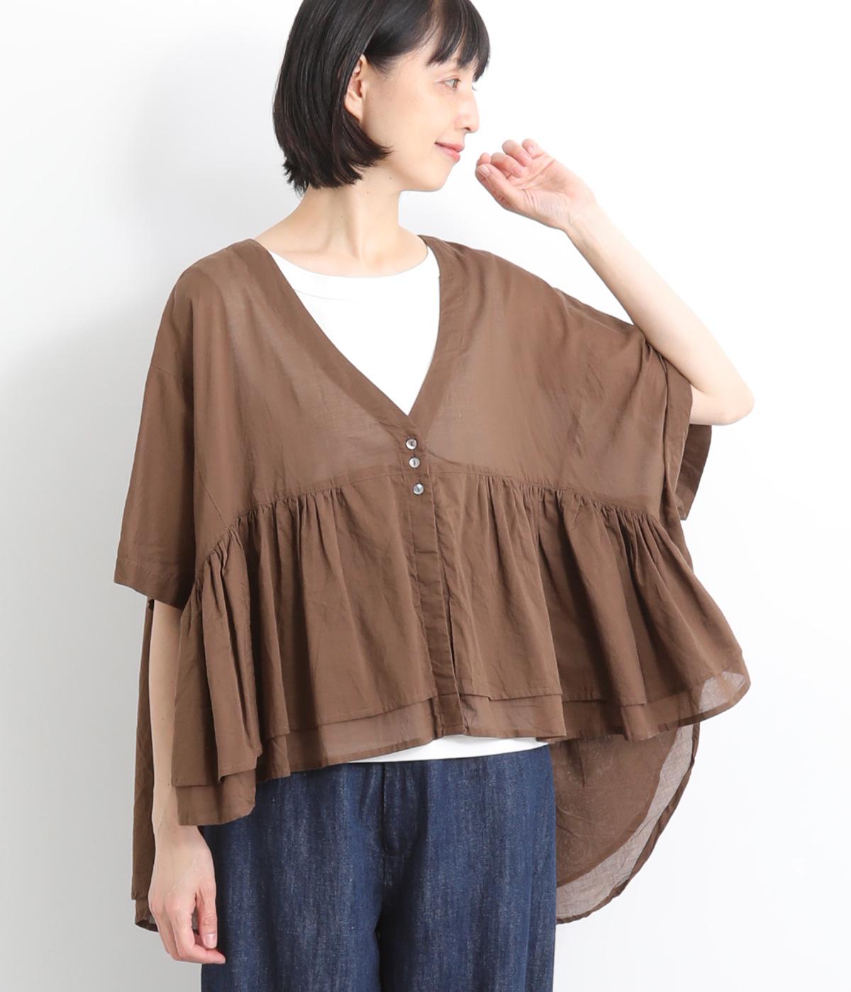ギャザーをたっぷり入れたフレア感と、前後で丈感に変化を出した動きのあるシルエットが特徴的。シンプルな装いに羽織るだけでコーディネートをぐっと華やかに魅せてくれます。合わせるインナーによってロングシーズン着まわせます。