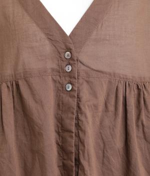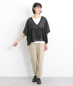 糸に撚りを強めにかけてざっくりと織り上げた、ナチュラルな風合いが魅力のコットンボイルを使用しています。薄手で通気性も良く、適度なふくらみで着心地も快適です。