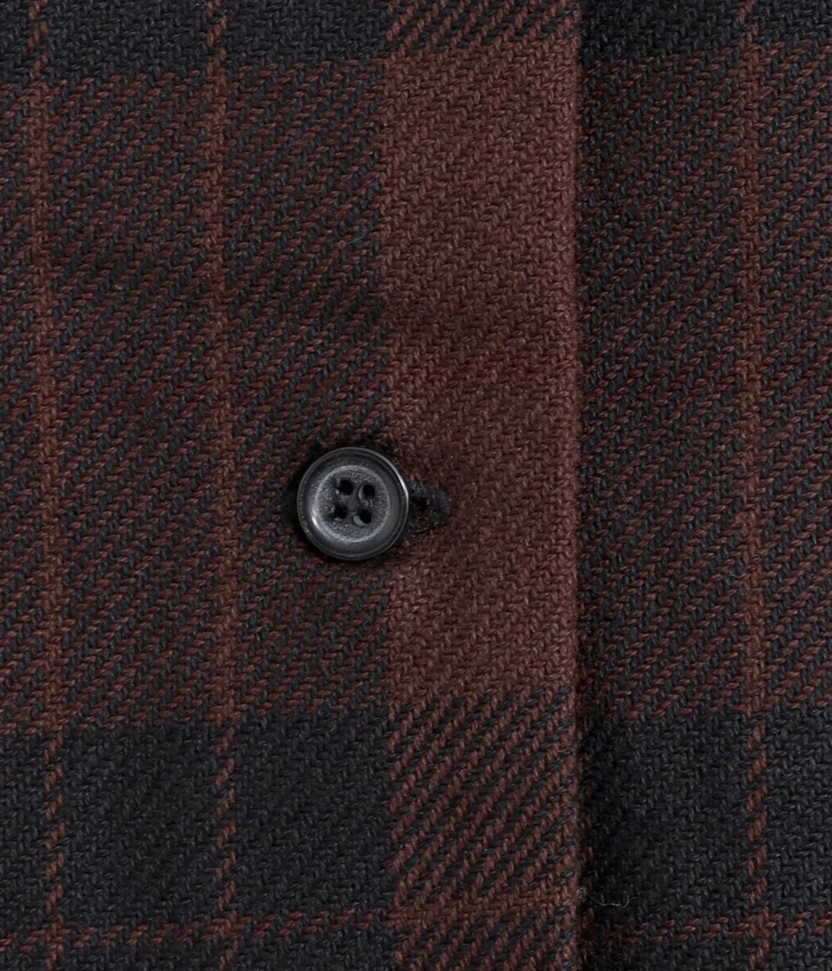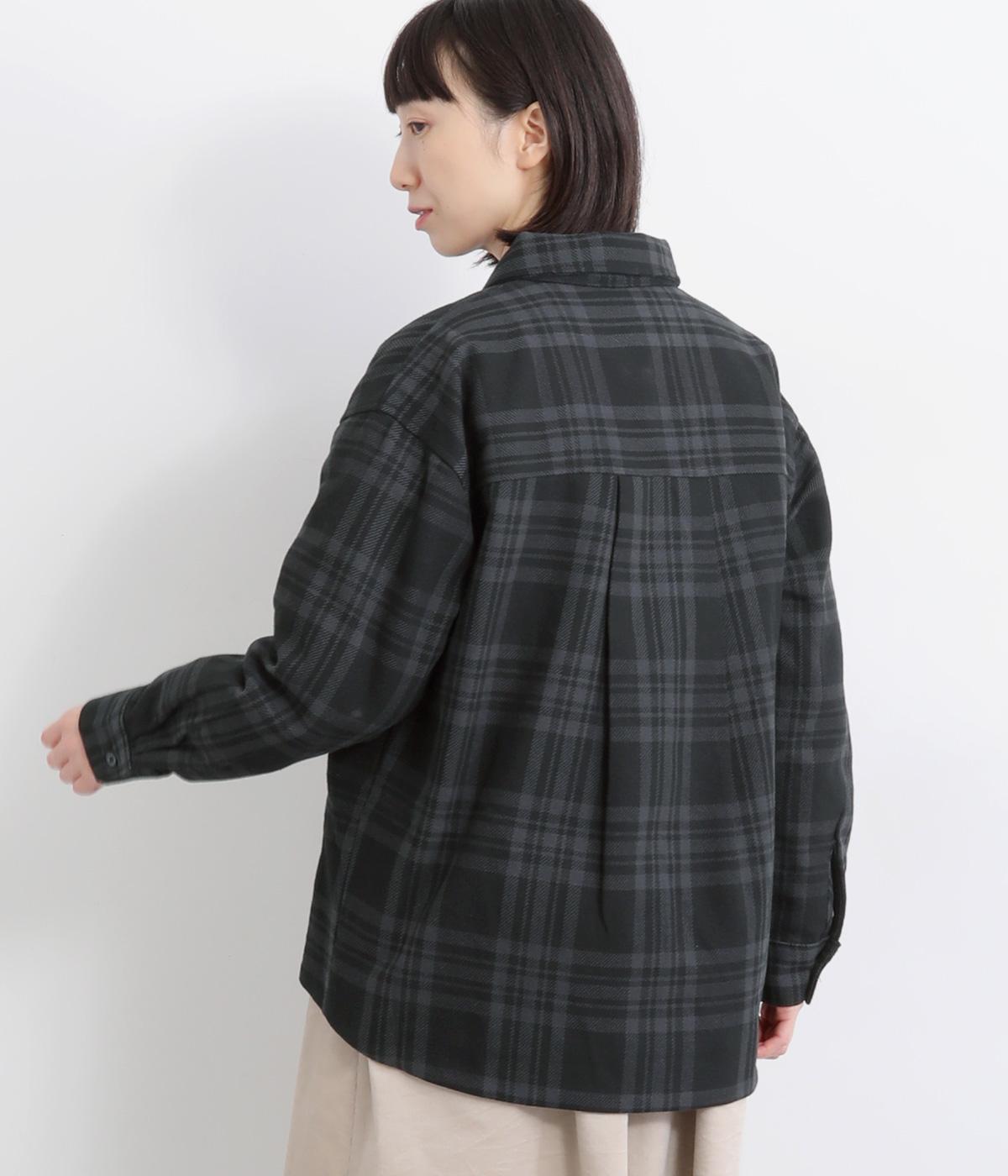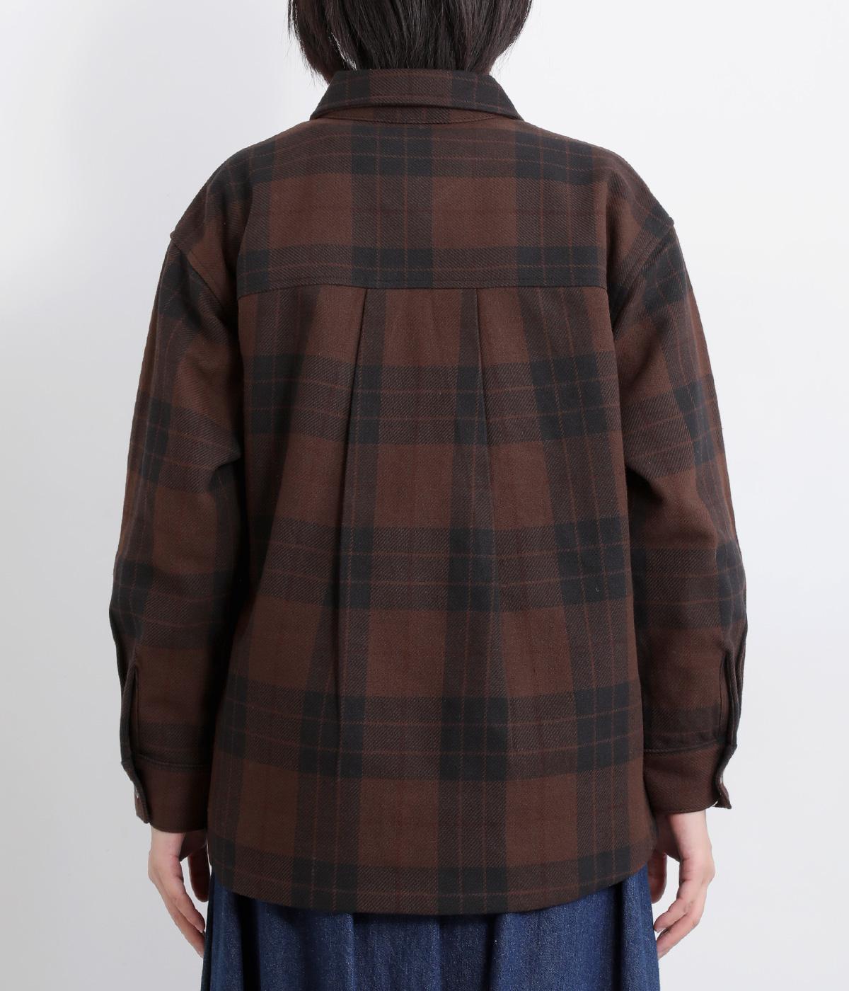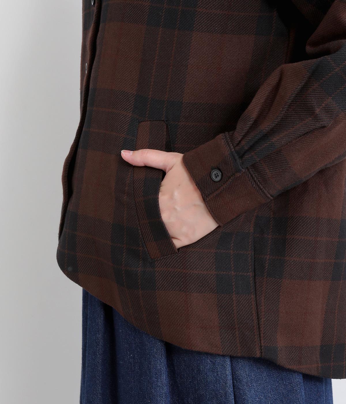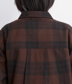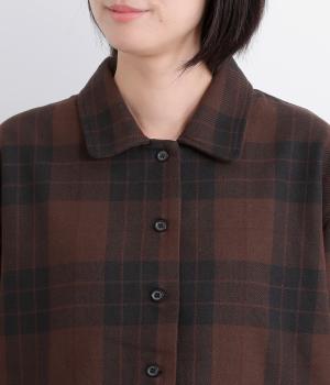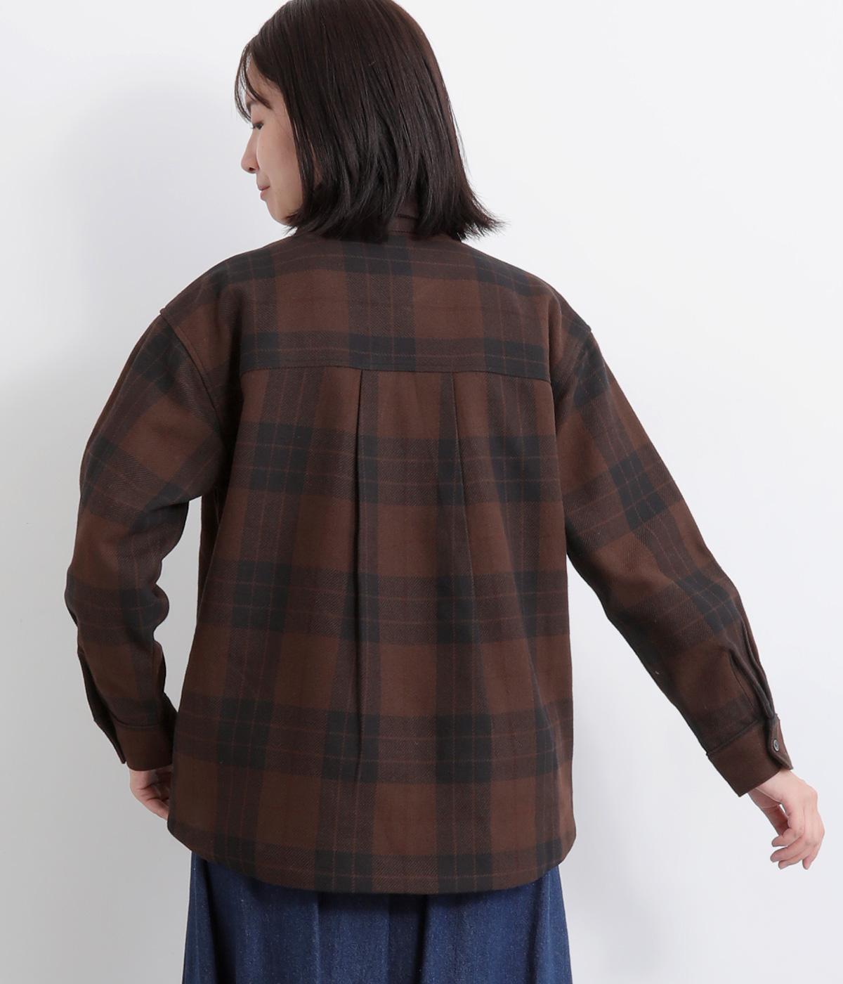 クラシカルな雰囲気が目を惹くチェックジャケットは前立てから裾に向けて流れるようなヘムラインが特徴的。後ろ身頃は長めにしているので横姿もきれいに見えます。肌寒い季節の変わり目のライトアウターとしても活躍。