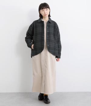 中厚手ながらハリのあるしっかりとした生地感のコットンを使用。シルエットをすっきりきれいに描き、きちんとした印象に見せてくれます。袖以外の身頃のみ裏地をつけています。