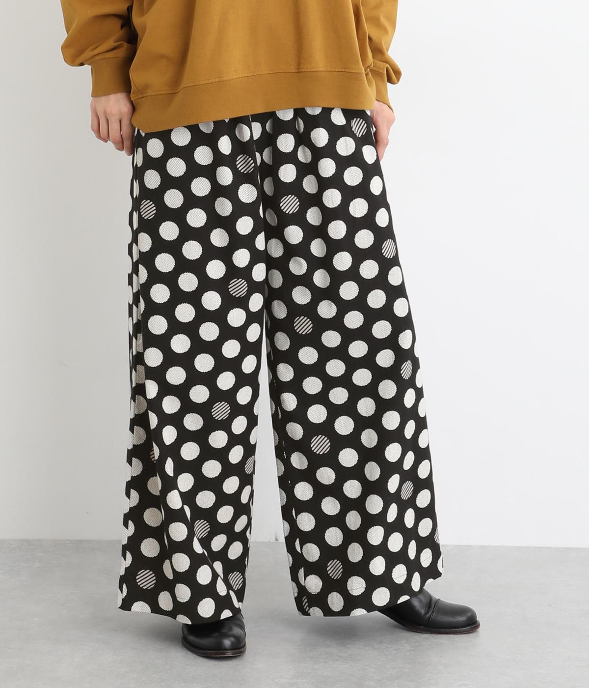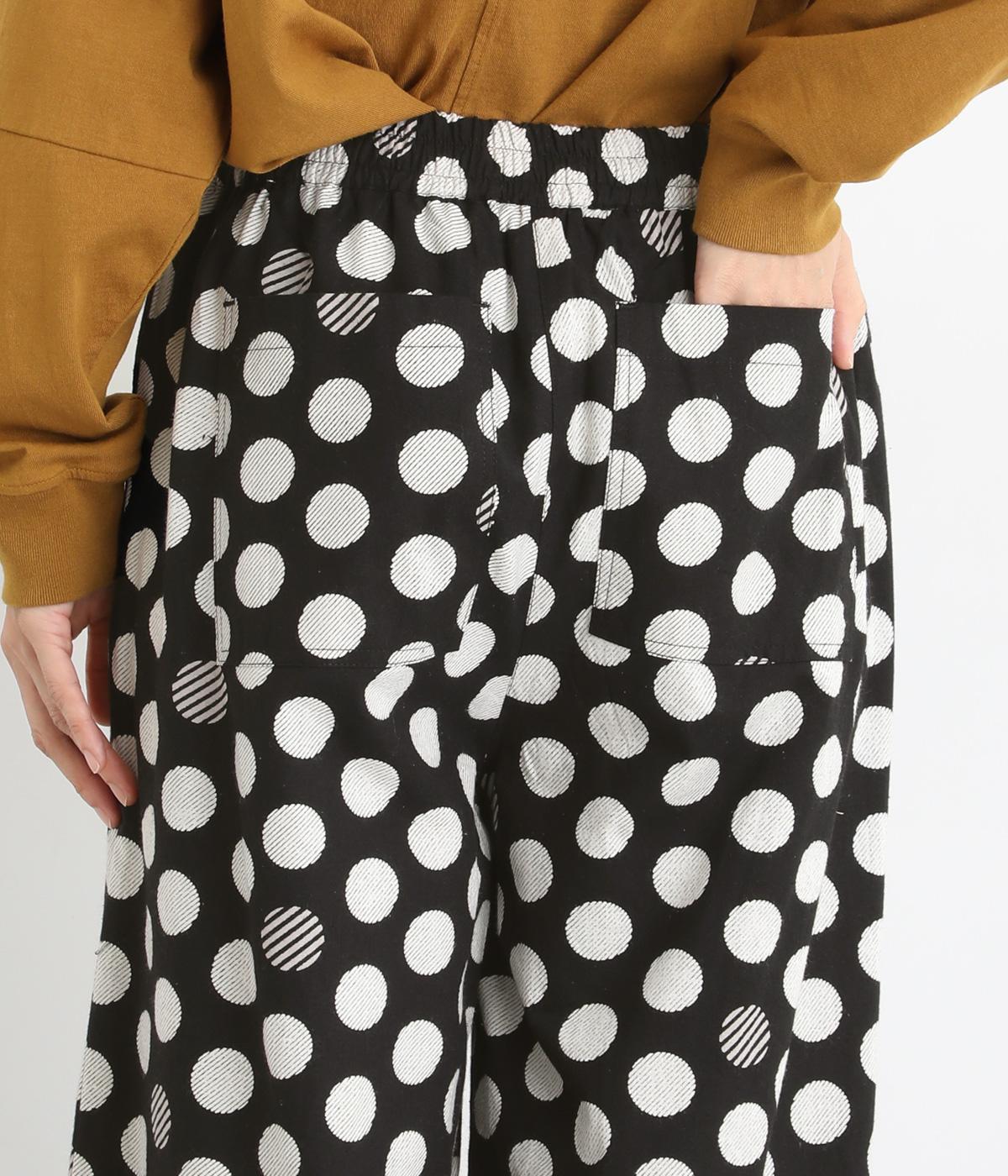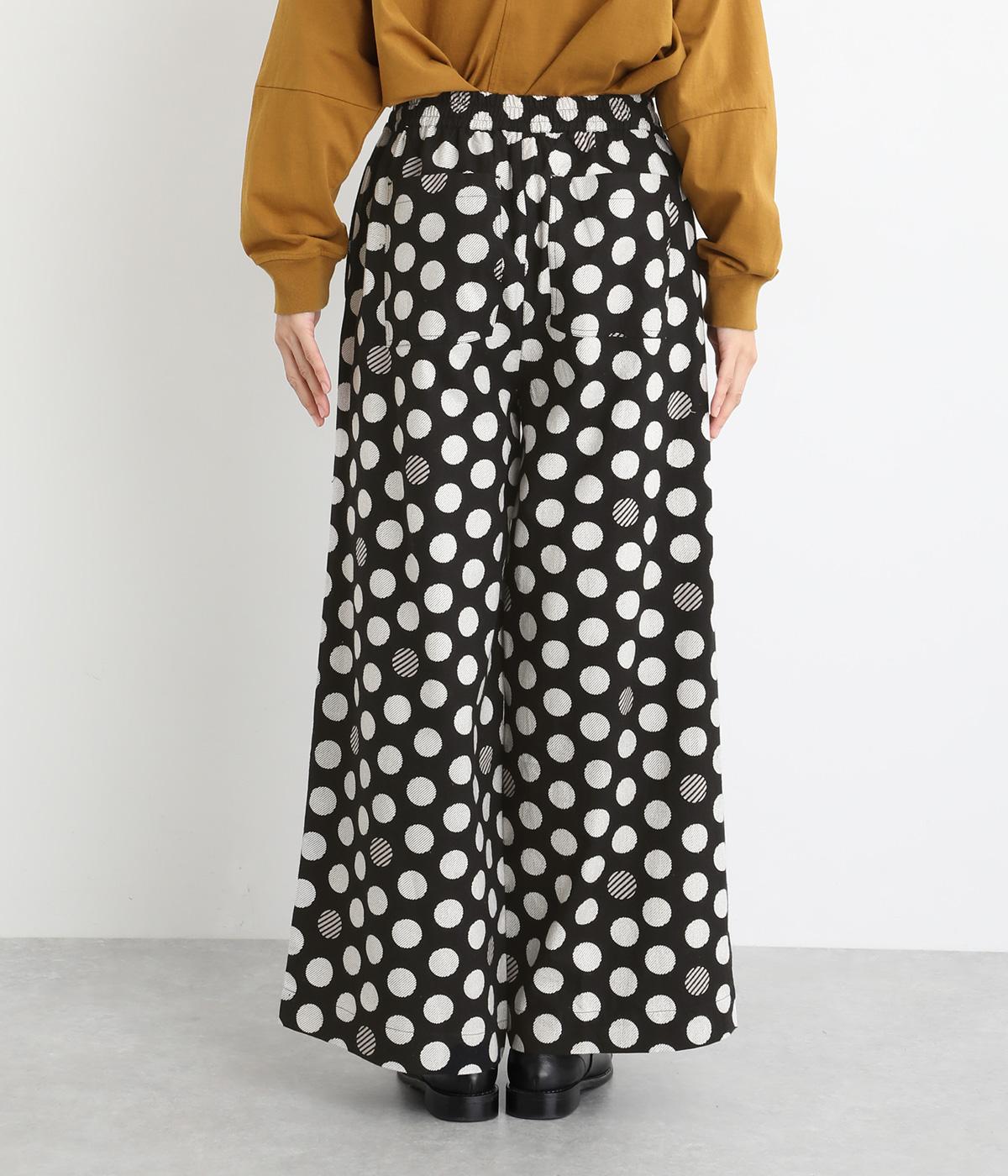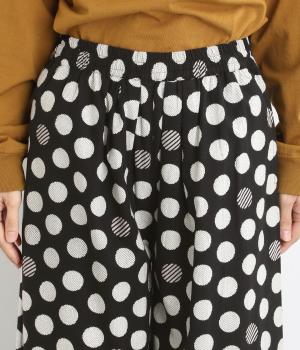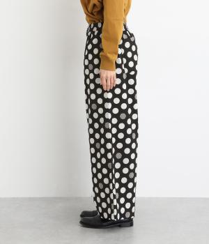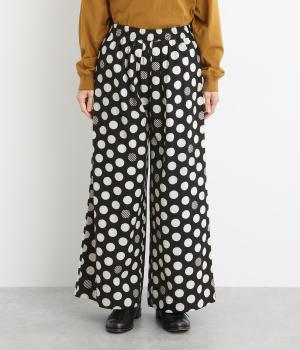イージーに穿くだけで一気におしゃれ度がアップするデザイン性の高いドット柄が印象的なワイドパンツ。両サイドとヒップに、合計4つのポケットがあります。シンプルなトップスをチョイスすれば、簡単に上質なコーディネートが完成。ウエストは一周ゴム仕様。