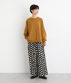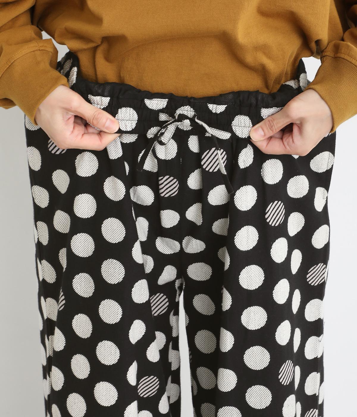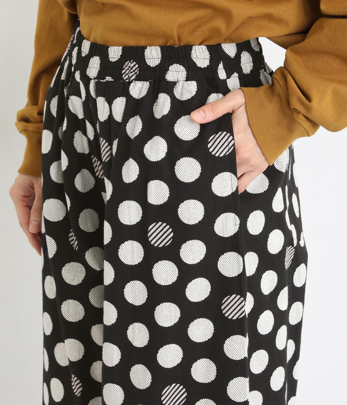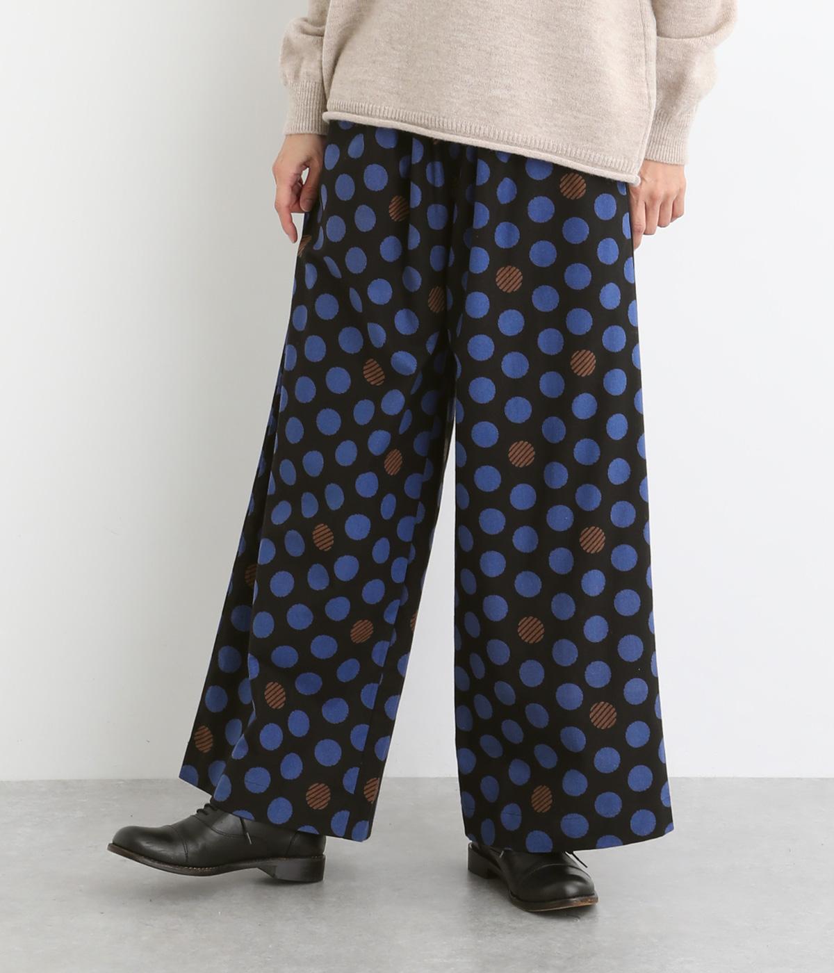 イージーに穿くだけで一気におしゃれ度がアップするデザイン性の高いドット柄が印象的なワイドパンツ。両サイドとヒップに、合計4つのポケットがあります。シンプルなトップスをチョイスすれば、簡単に上質なコーディネートが完成。ウエストは一周ゴム仕様。