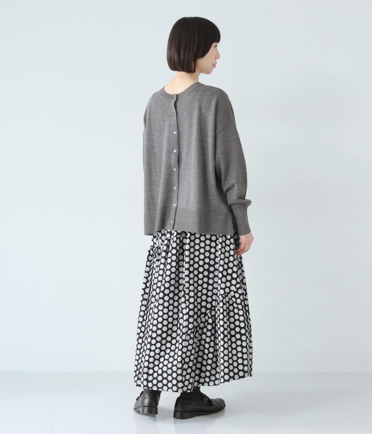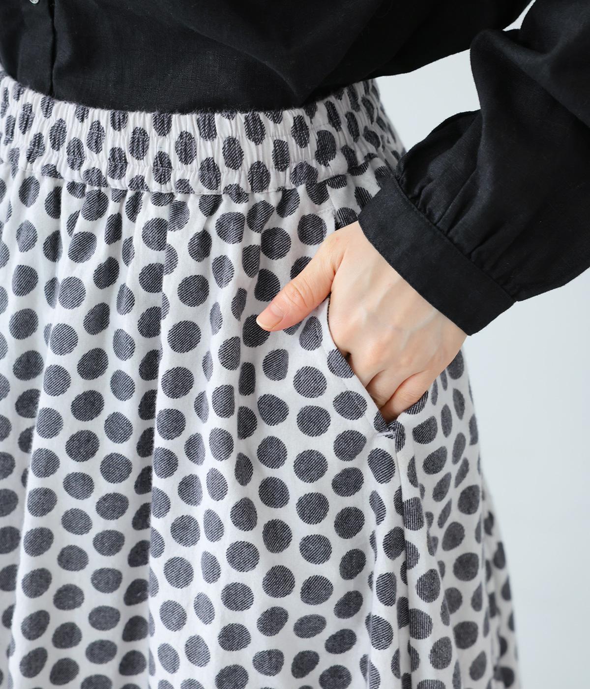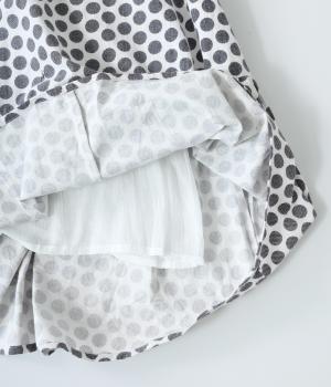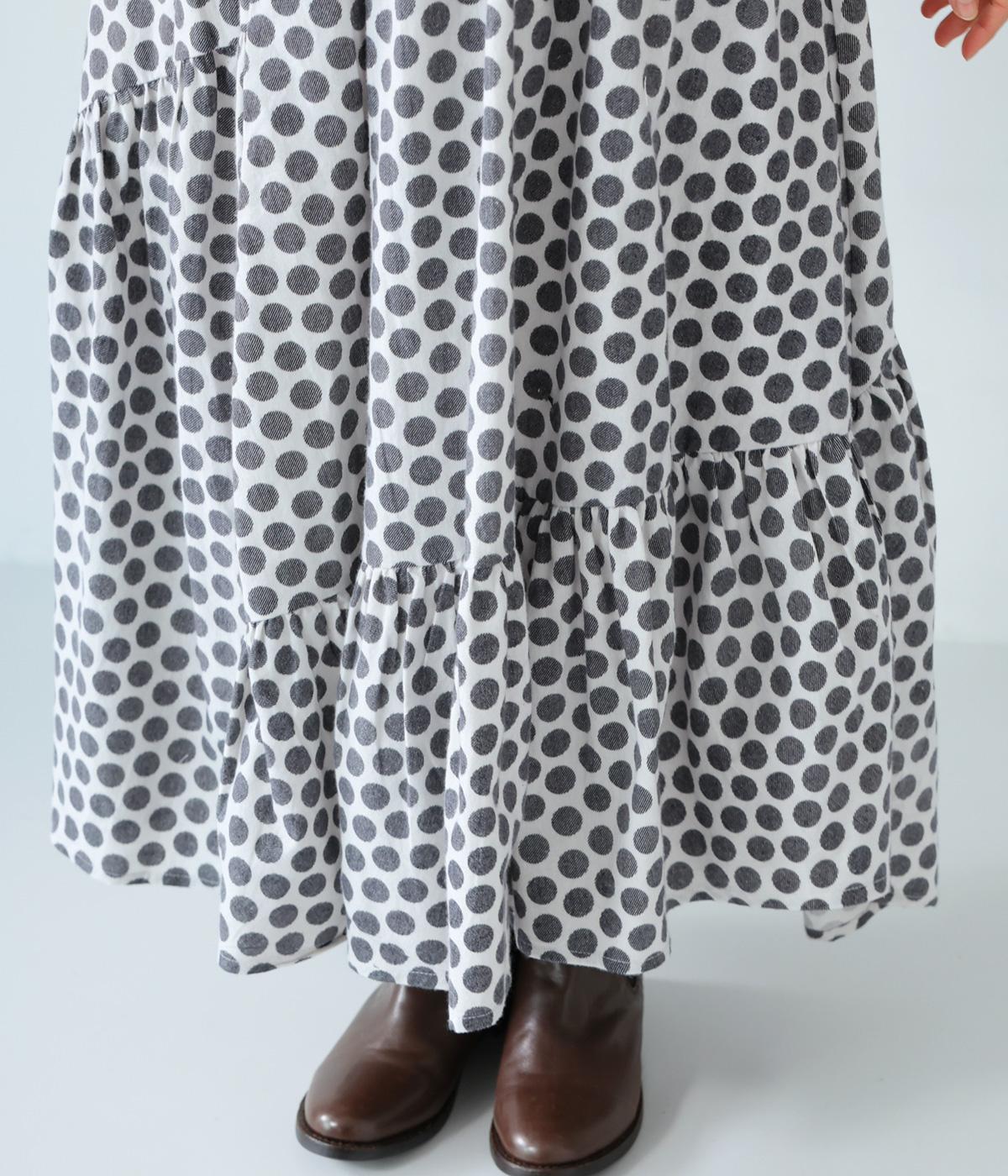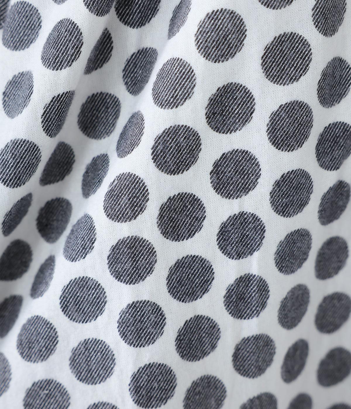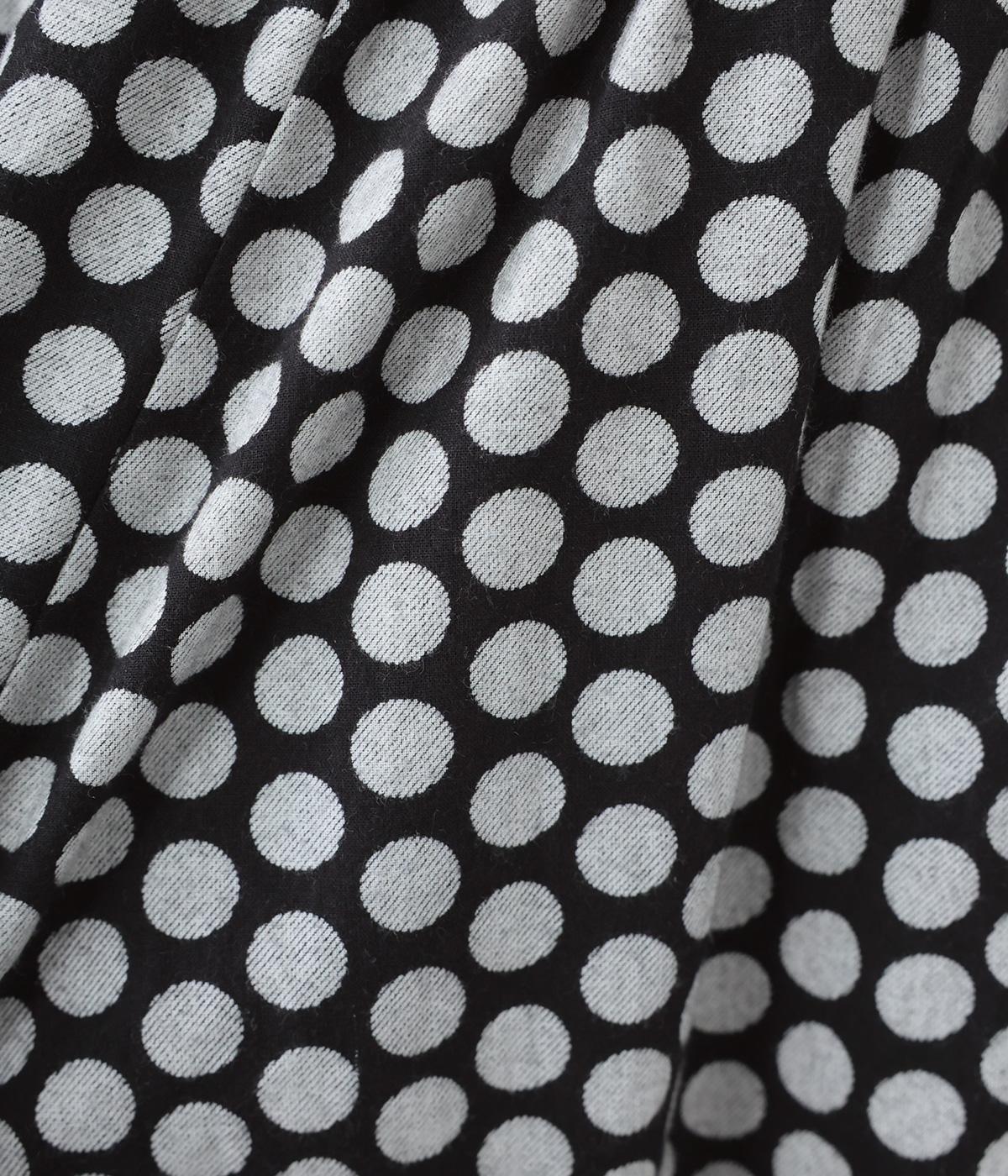 ソフトであたたかみのあるコットンの起毛素材を使用。モノトーンのドット柄がシックで落ち着いた雰囲気を醸し出します。裏地にもコットンを使い、肌触りのよさにもこだわりました。
