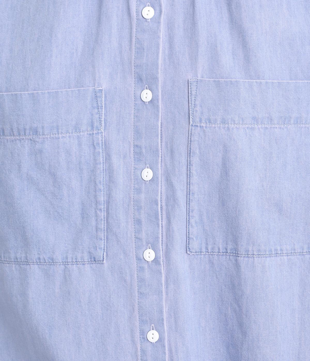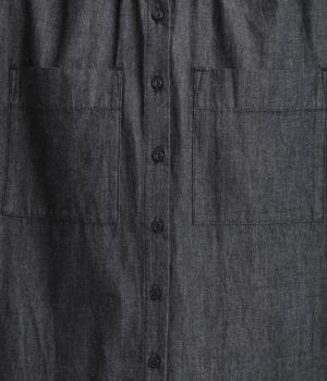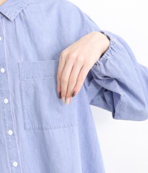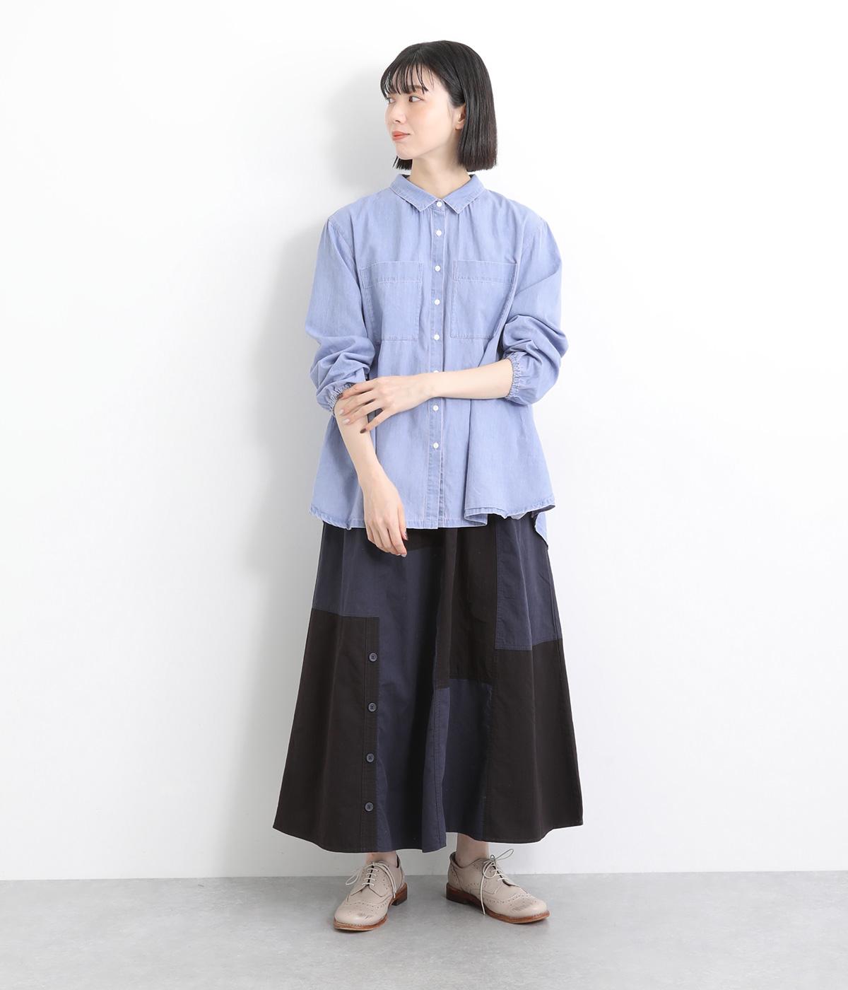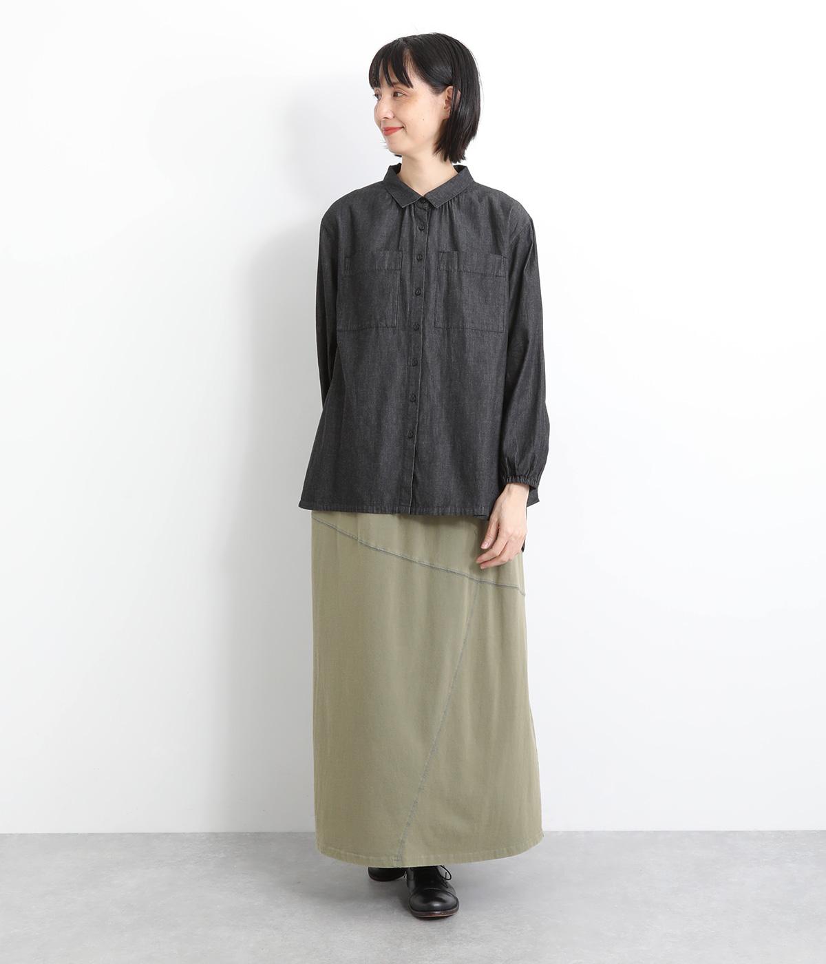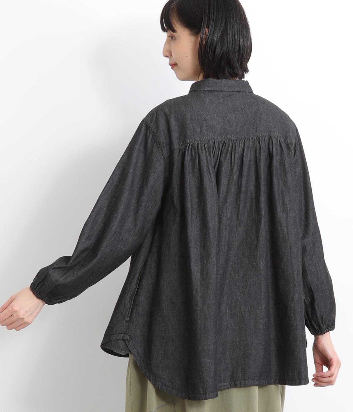 フレア感のあるシルエットや丸みのある袖でカジュアル感をおさえ、幅広いテイストに着こなせる一枚。袖口はゴムを入れているのでたくし上げもしやすく、手仕事のときにも便利です。大きめの胸ポケットもワンポイントに。