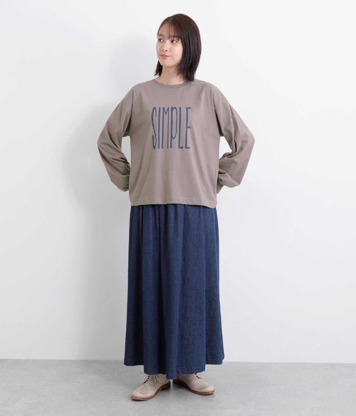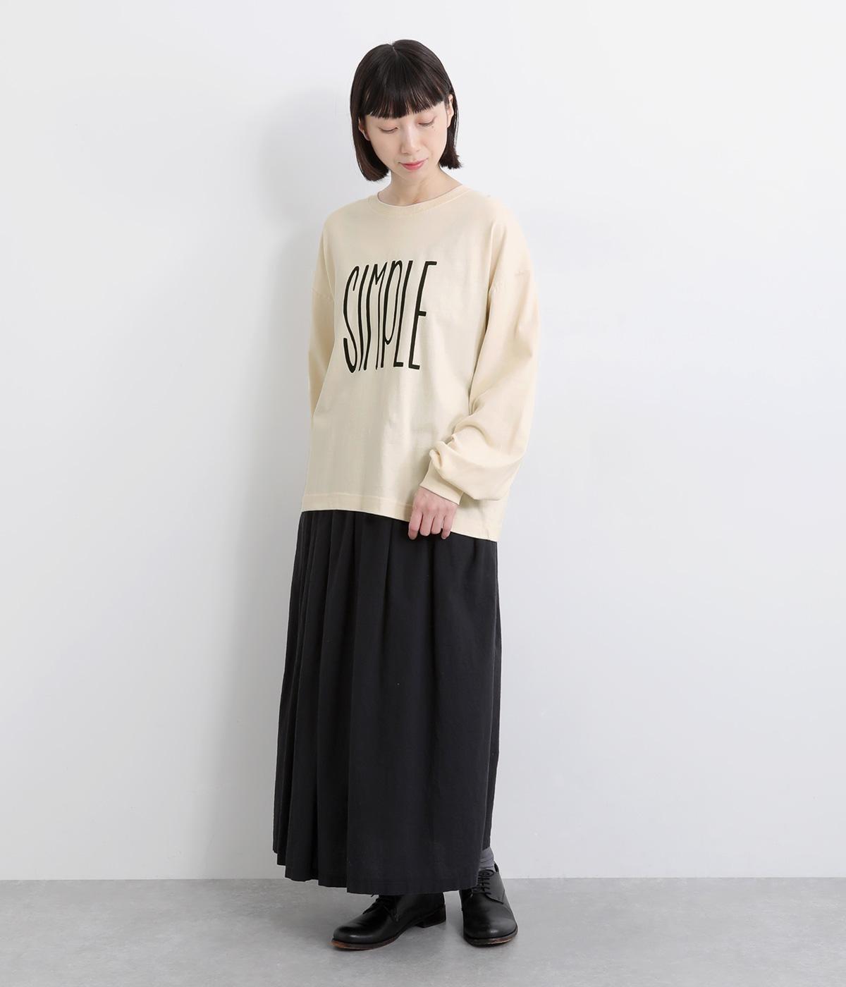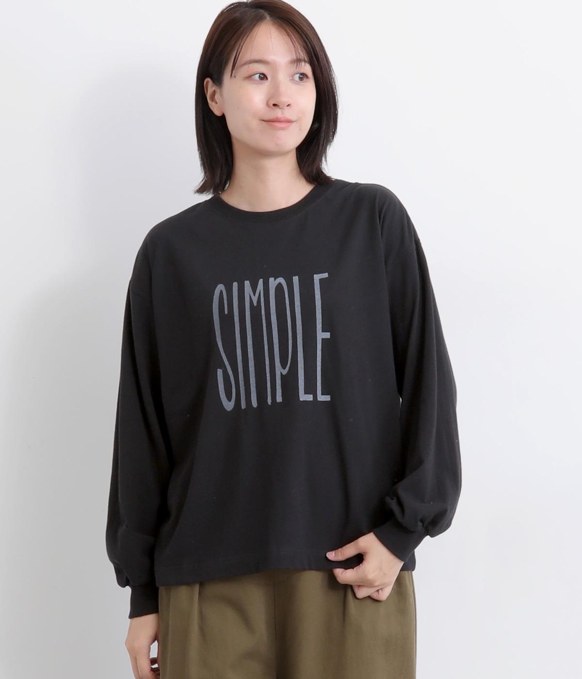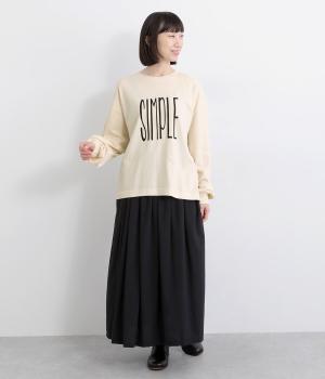 タテに伸びた「SIMPLE」のロゴがユニークな一枚。メインにもサブにも着まわしやすいサイズ感で、たっぷりとした袖がさり気ないポイントになっています。スカートにもパンツにも合う丈感も◎。