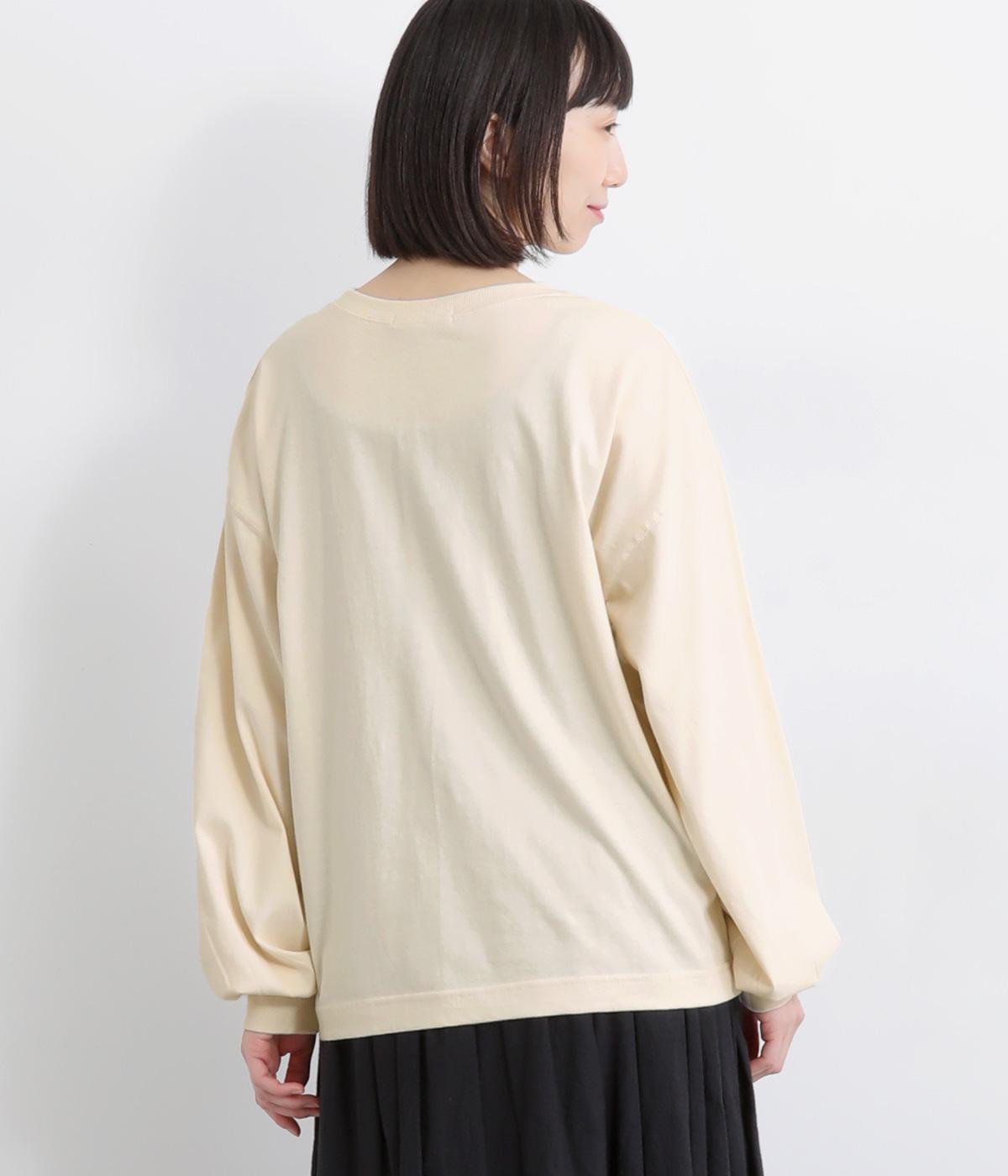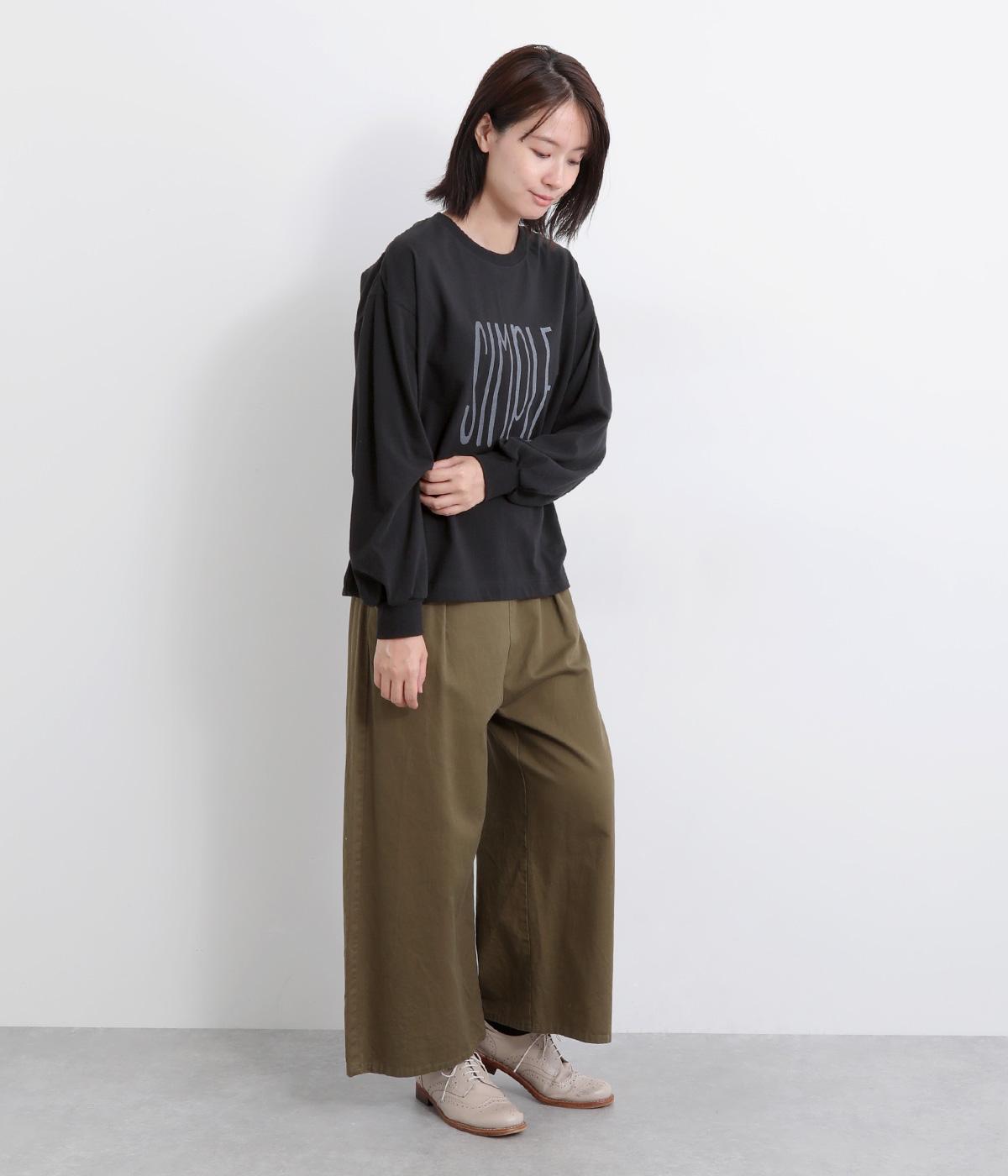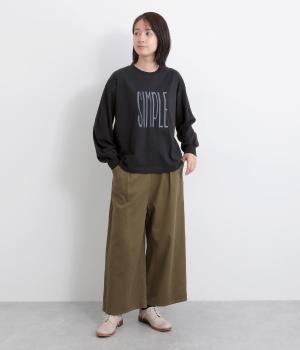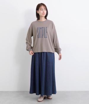 タテに伸びた「SIMPLE」のロゴがユニークな一枚。メインにもサブにも着まわしやすいサイズ感で、たっぷりとした袖がさり気ないポイントになっています。スカートにもパンツにも合う丈感も◎。