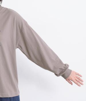 やわらかで着心地抜群なコットン天竺生地を使用しています。ほのかな起毛感があたたかみを増し、ユーズド風のこなれた風合いも魅力。薄めの中厚手で使い勝手も抜群です。