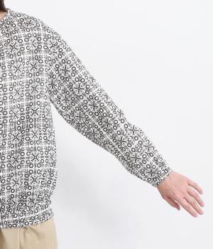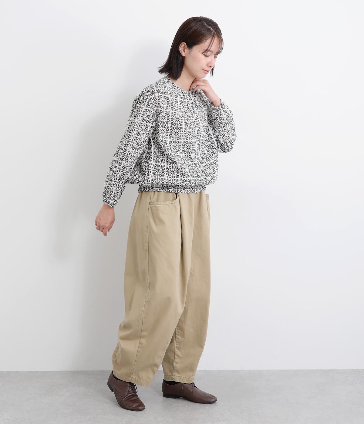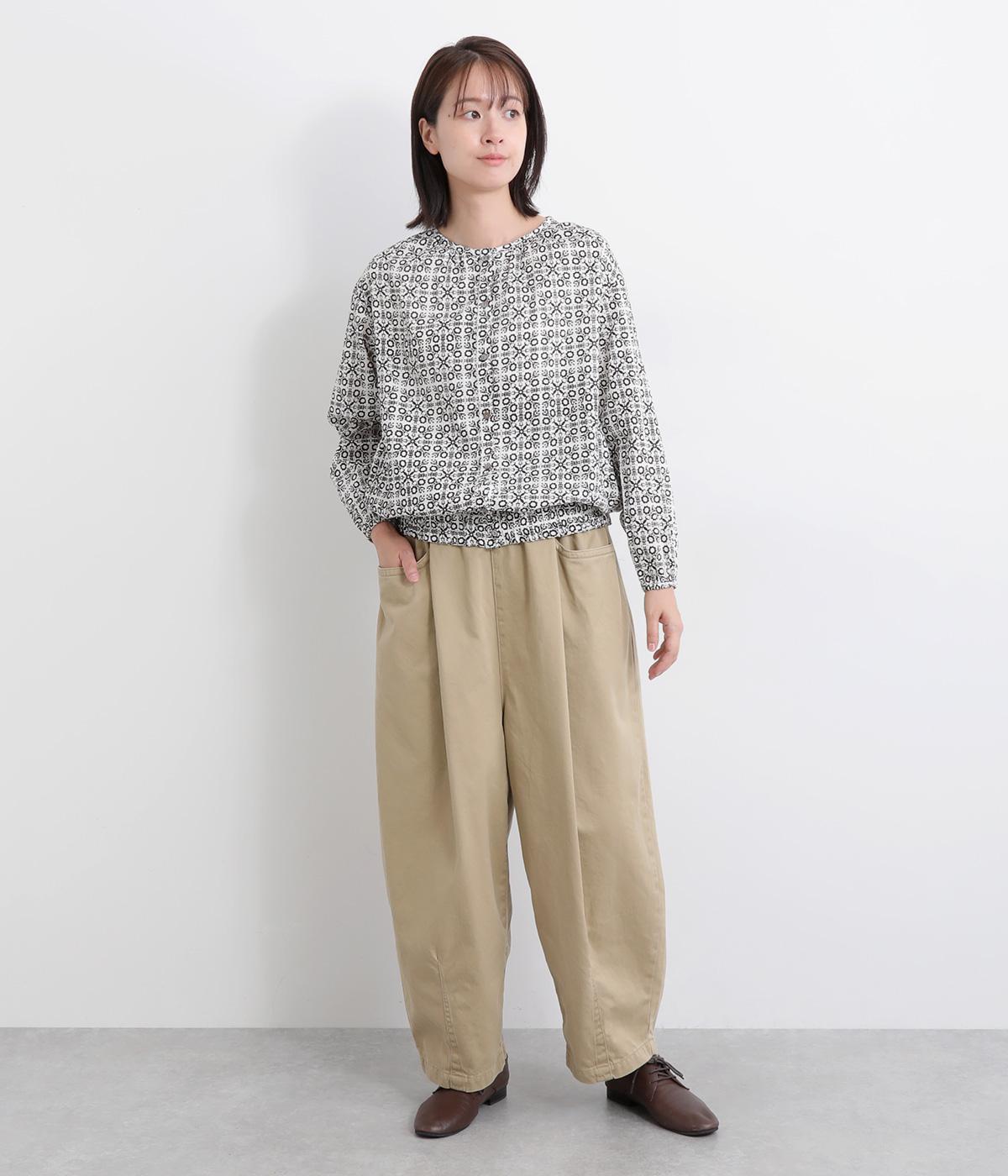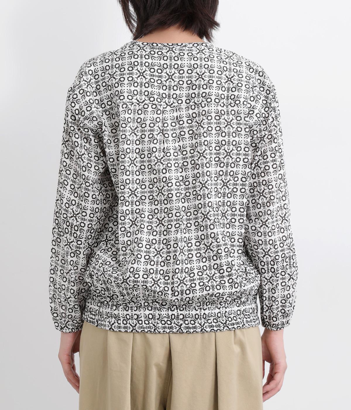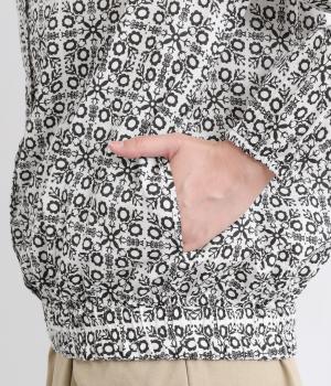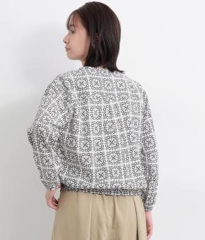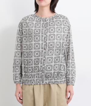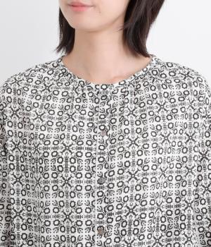 裾や袖口にゴムを入れて、ブルゾンのように羽織りとしても使えるシャツです。すっきりとしたノーカラーで襟つきインナーとも好相性。ボタン開閉でシャツのようにメイン使いでも活躍します。
