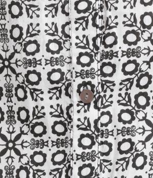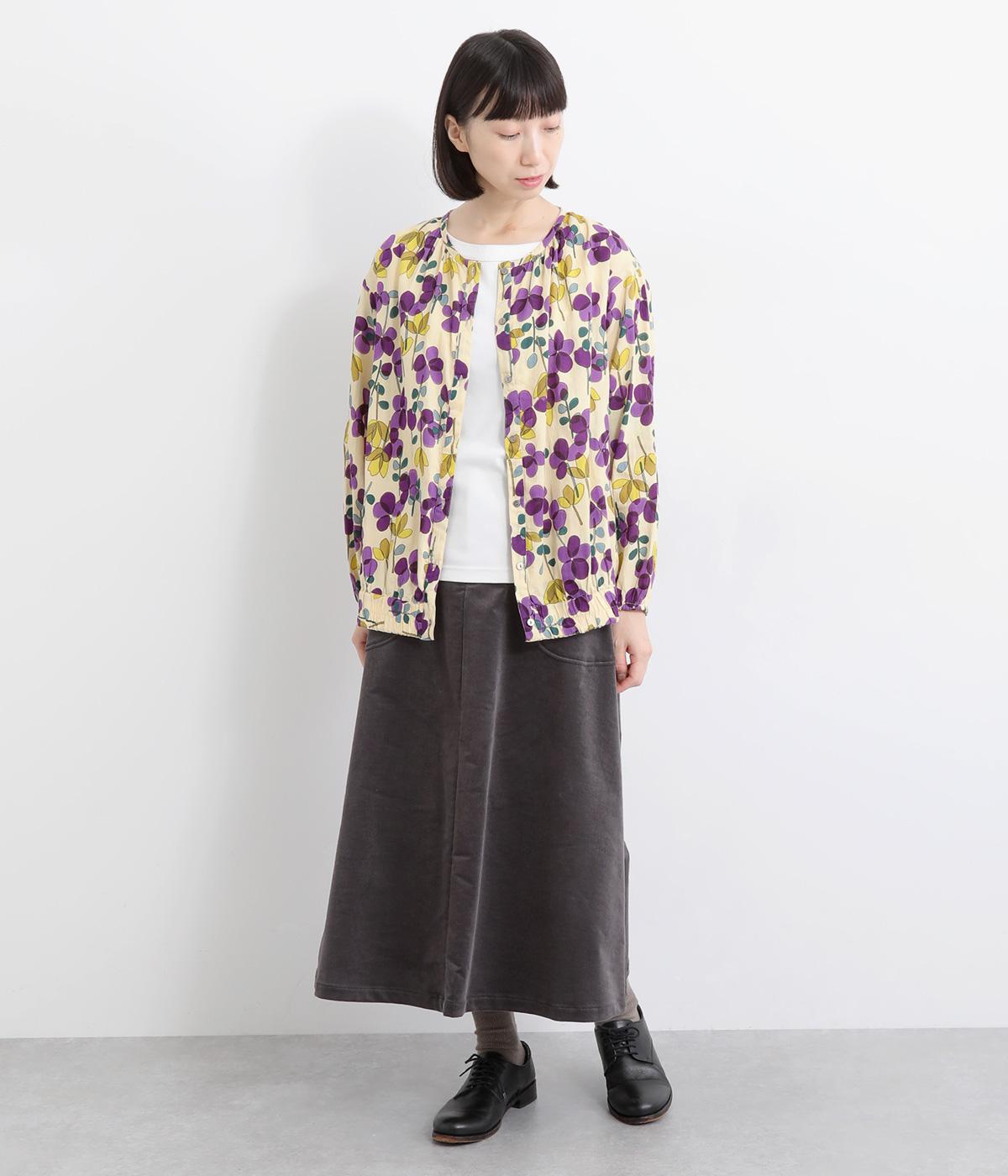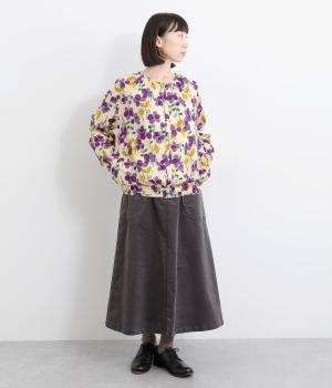 細かなタテ畝のあるコードコットンにさまざまな花柄プリントをのせたアソート展開です。さらっとした肌触りに薄手生地で軽やかに仕上がっています。