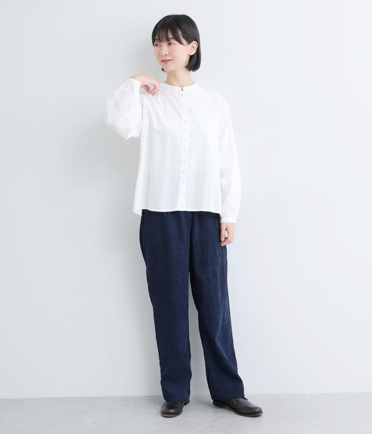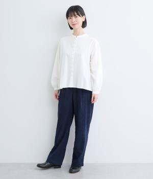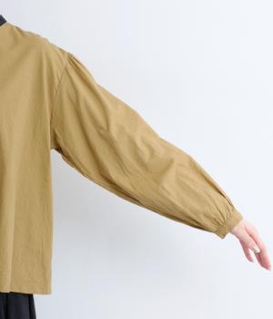 適度にふくらみのあるソフトなコットン生地に起毛をほどこしてあたたかみをプラスしました。生地自体は薄めの中厚手なので季節の変わり目からロングシーズン着まわせます。