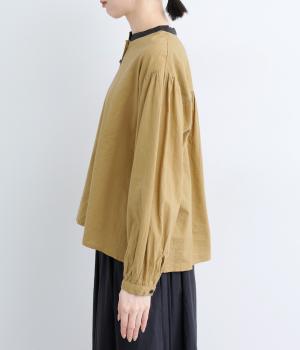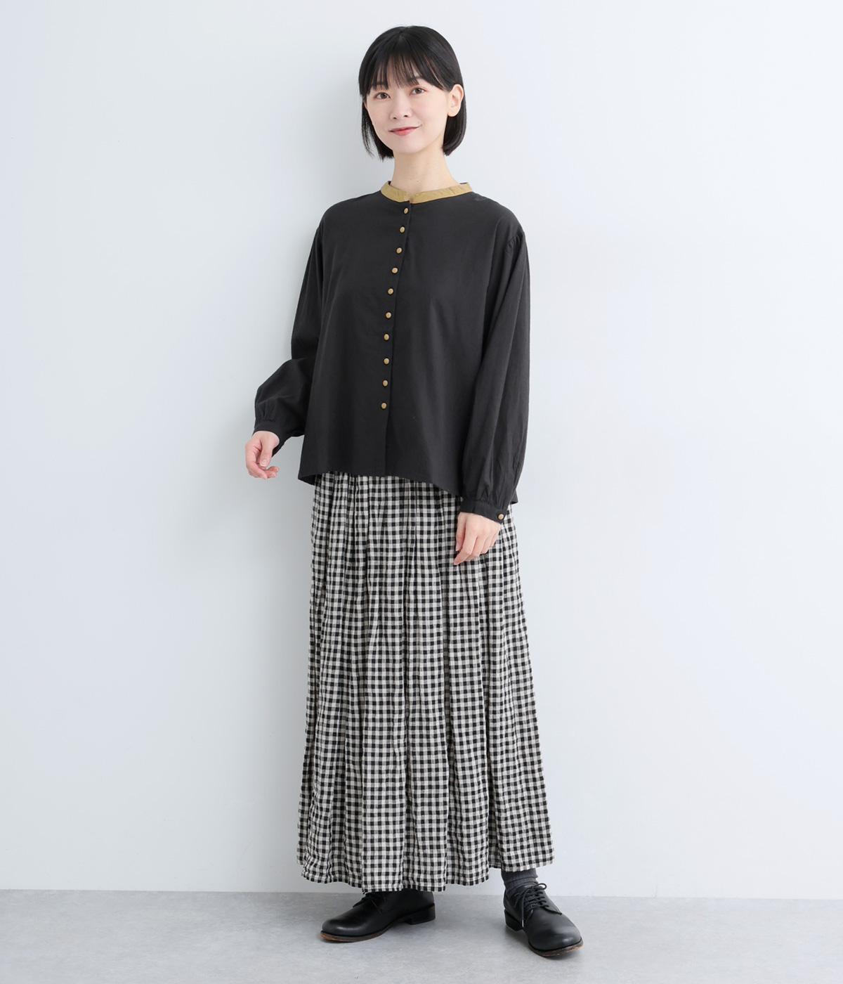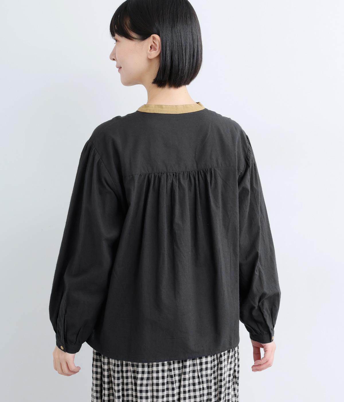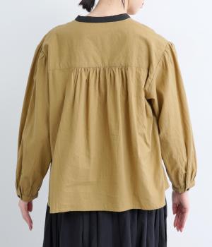 クレリックデザインに多ボタンでアクセントをつけた一枚。ギャザーを寄せた袖やくるみボタンでクラシカルな要素も持ち合わせています。後ろは切り替えにギャザーを入れた、ややフレアなシルエットで着心地も◎。