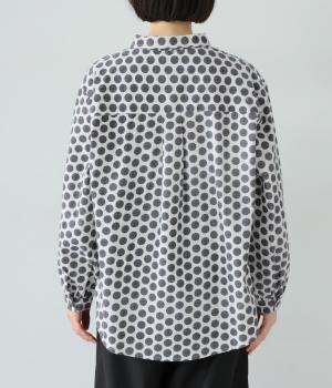 コットンの起毛素材を使用した、あたたかみのあるドット柄生地。線画のようなモノトーンのプリントが大人らしい佇まいに。やわらかさの中にも適度なハリがあり、シルエットがきれいに出るのも魅力です。