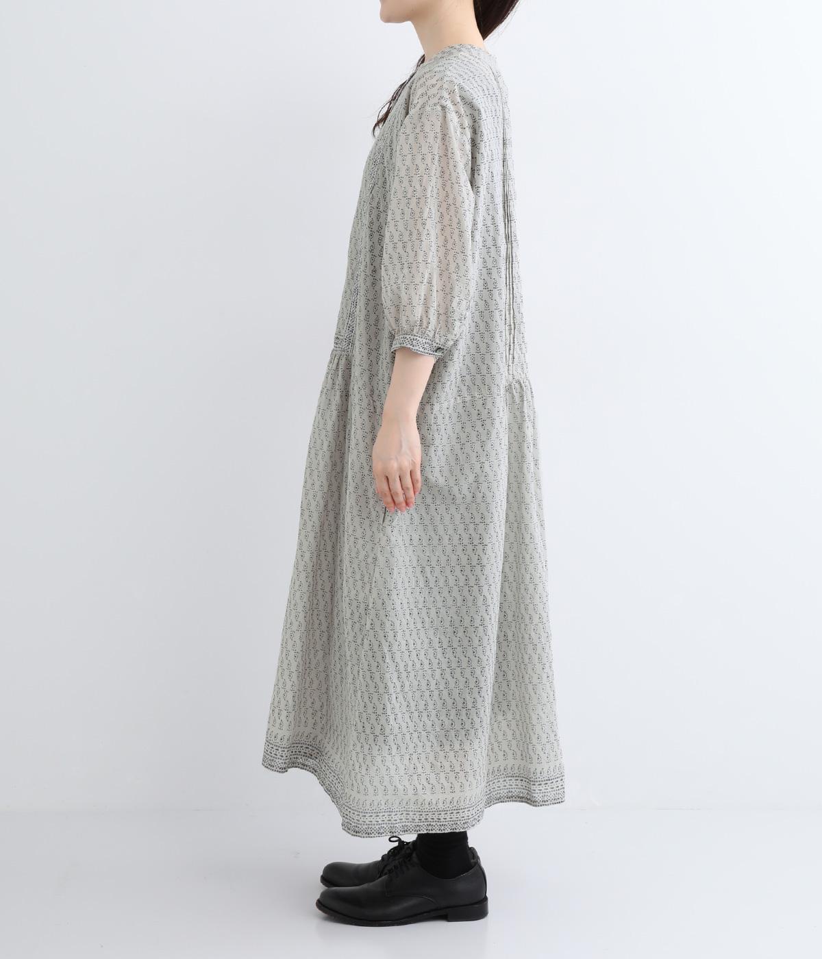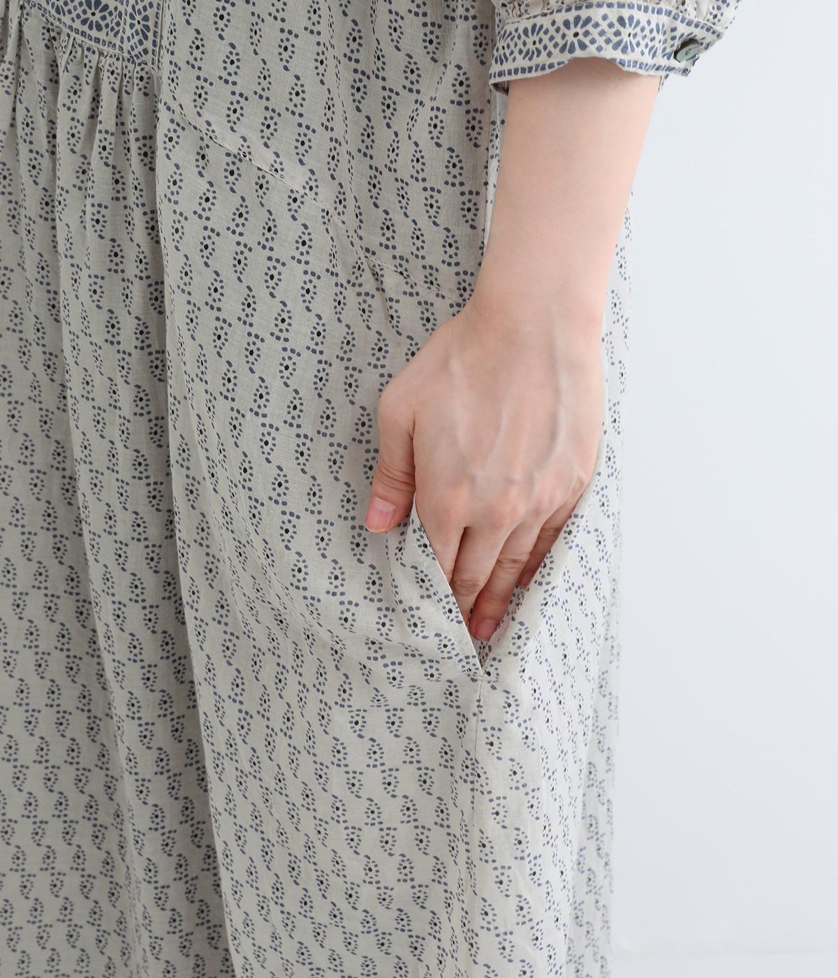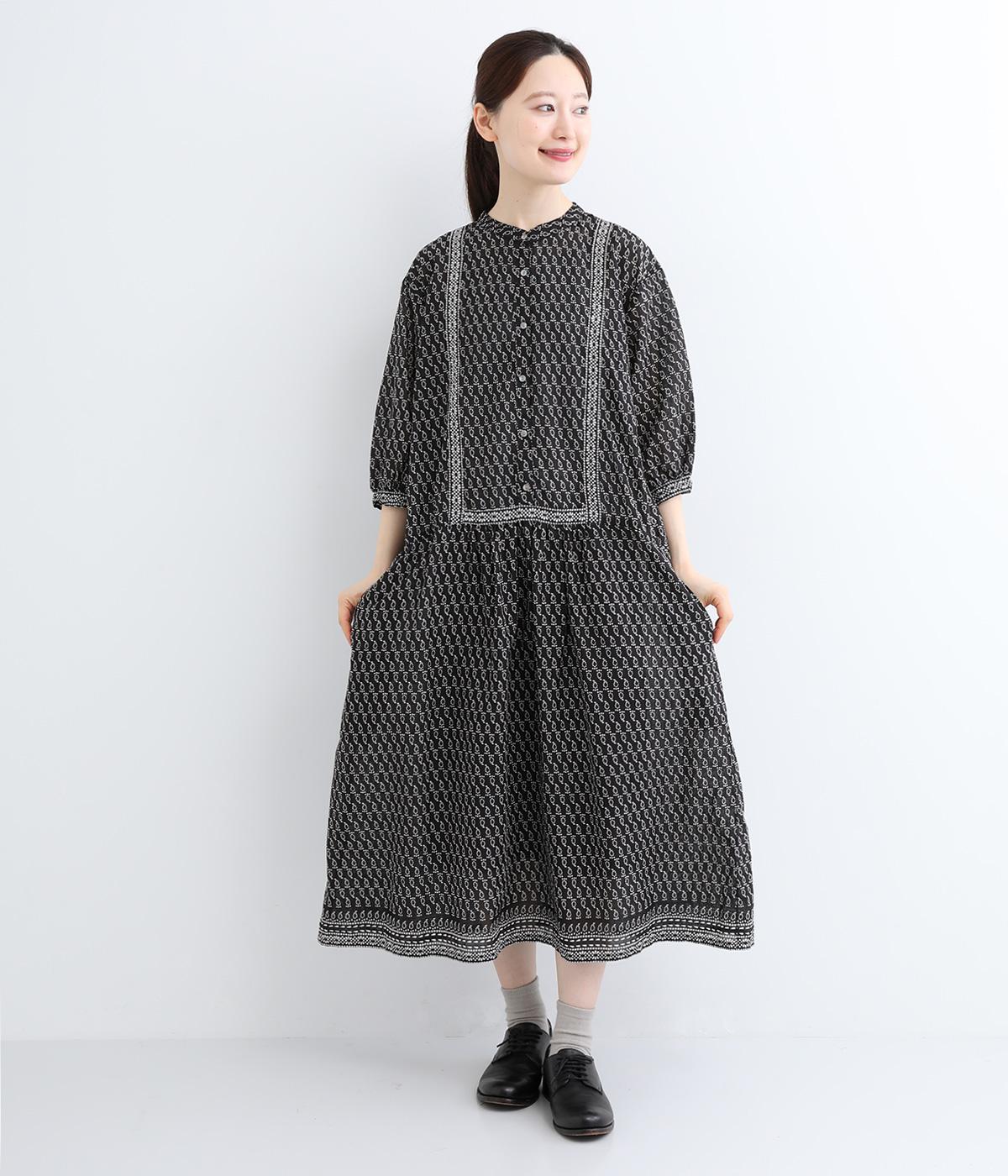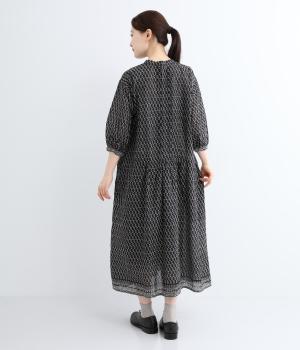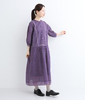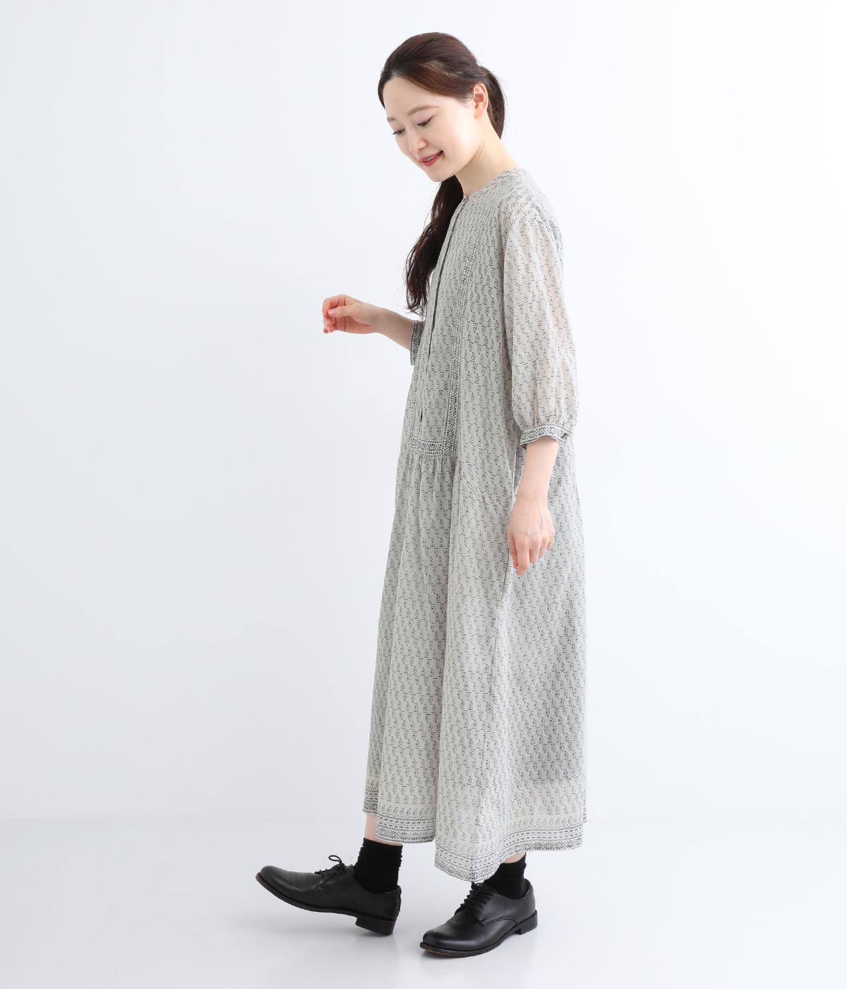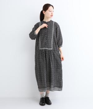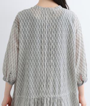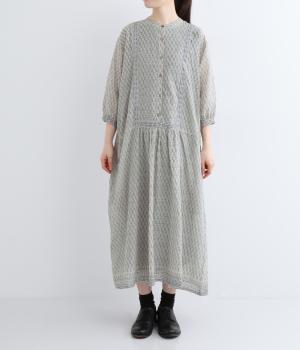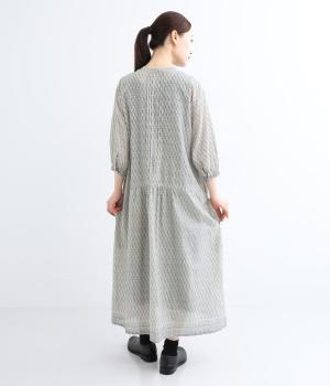 体が泳ぐゆったりとした身幅がリラクシーな着用感を叶えるワンピース。前ヨークと袖口、裾にライン状に施された柄がアクセントになっています。後ろ身頃にはピンタックをあしらい、どこから見てもこだわりを感じられる一着です。