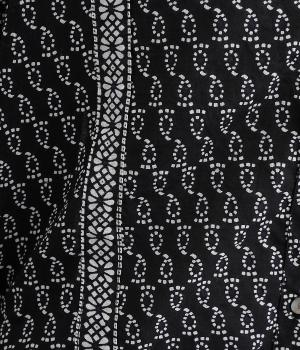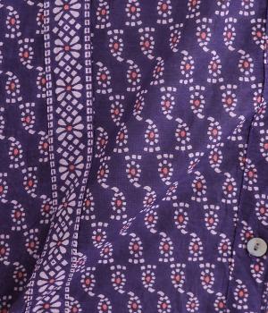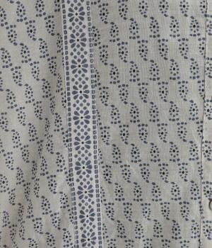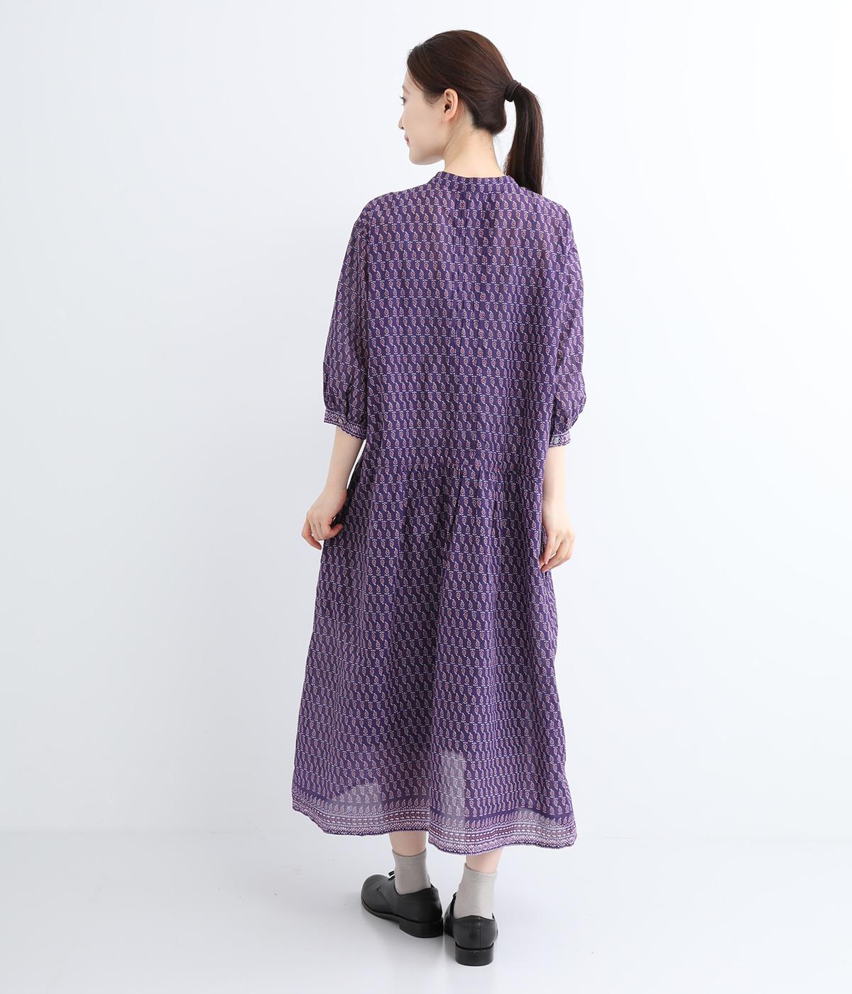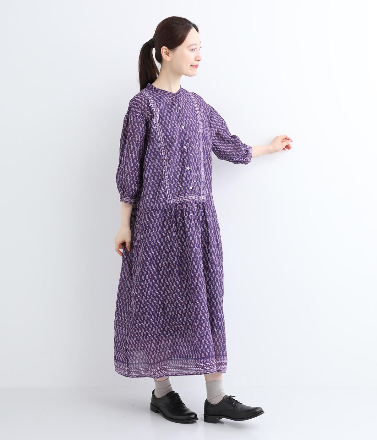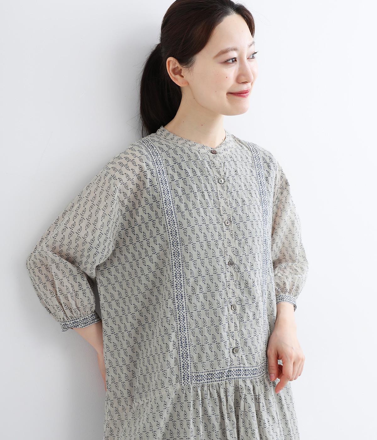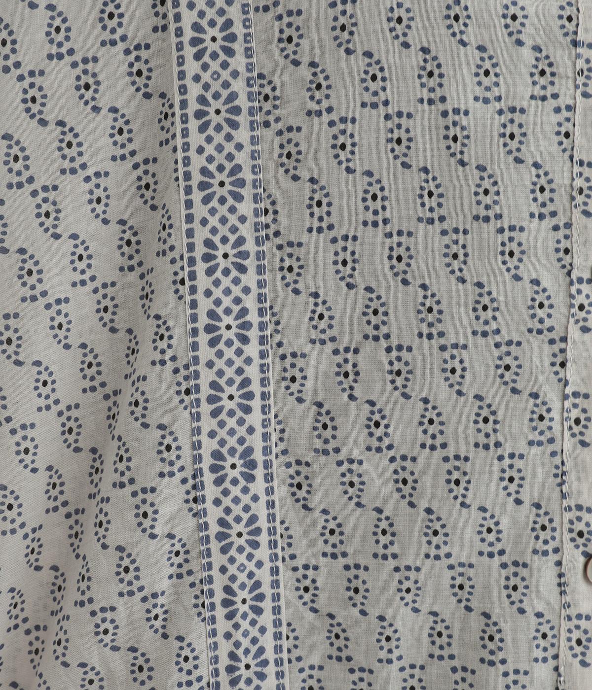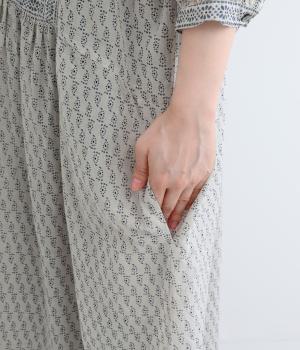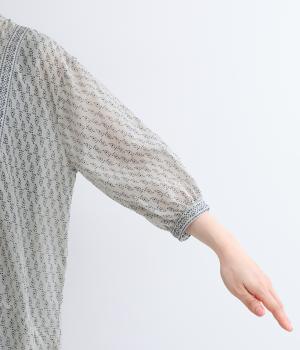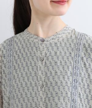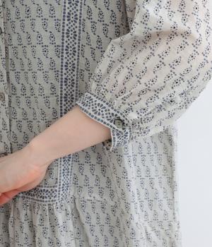 風通しの良い薄手で軽やかな風合いが魅力のコットン生地。自然なシワ感がナチュラルなムードを加速させます。落ち着きのある細かなブロックプリントに注目です