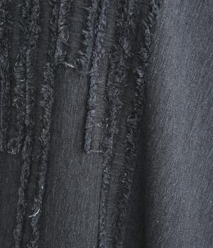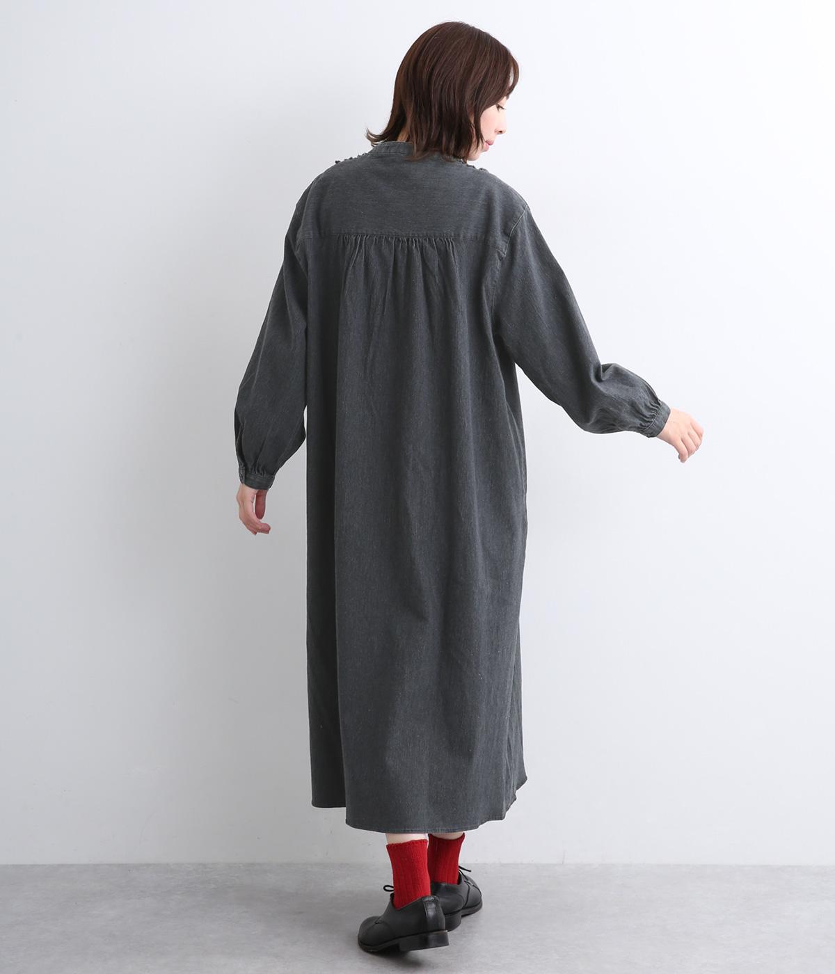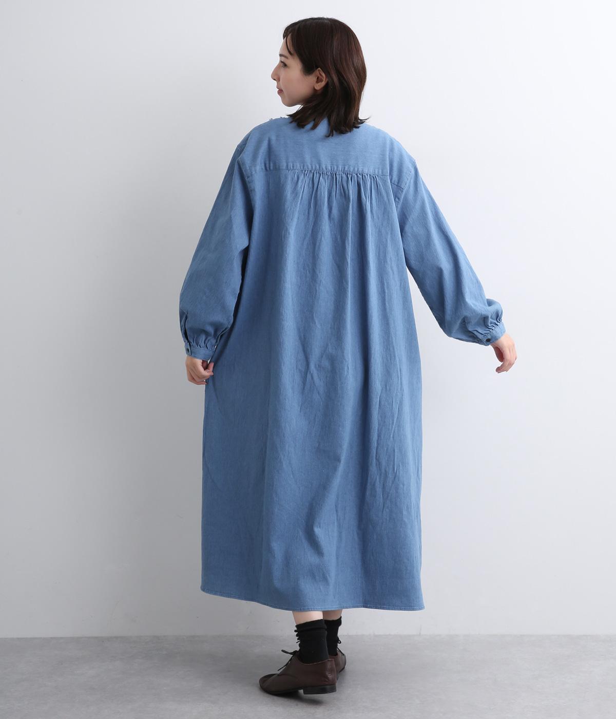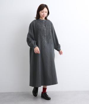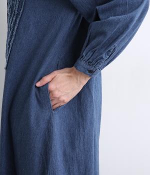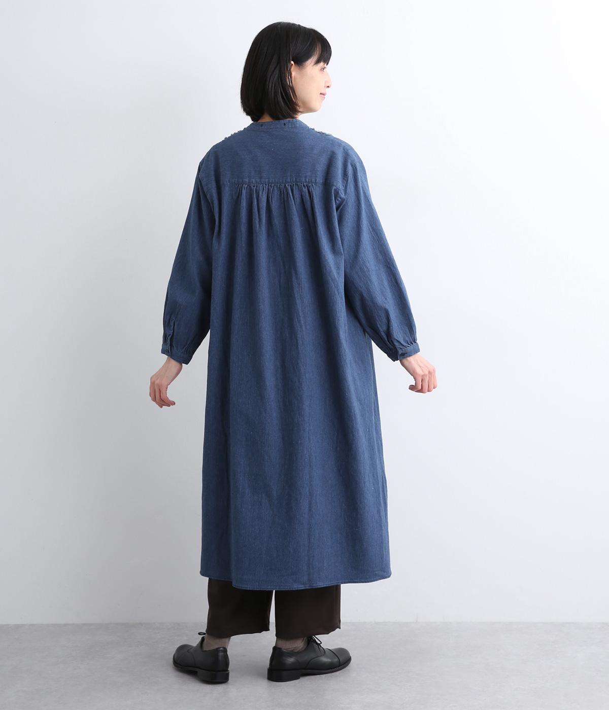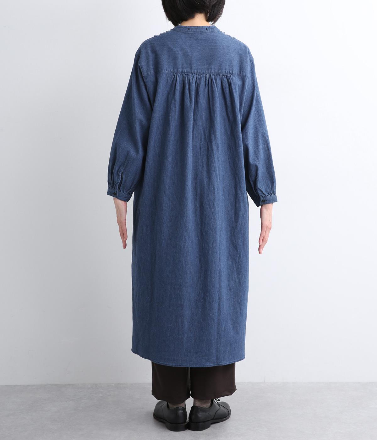 前身頃にあしらったフリンジのラインが特徴的なデニムワンピース。個性的ながらもカジュアルなデニム素材でほどよく中和され、デイリーに取り入れやすいアイテムに仕上がりました。一枚でサマ見えします。