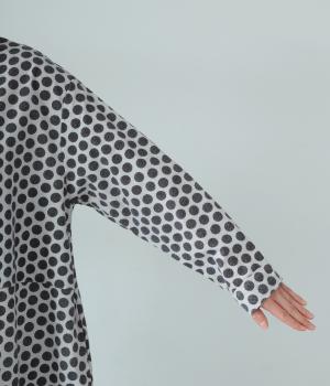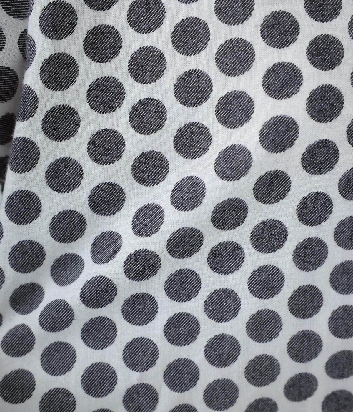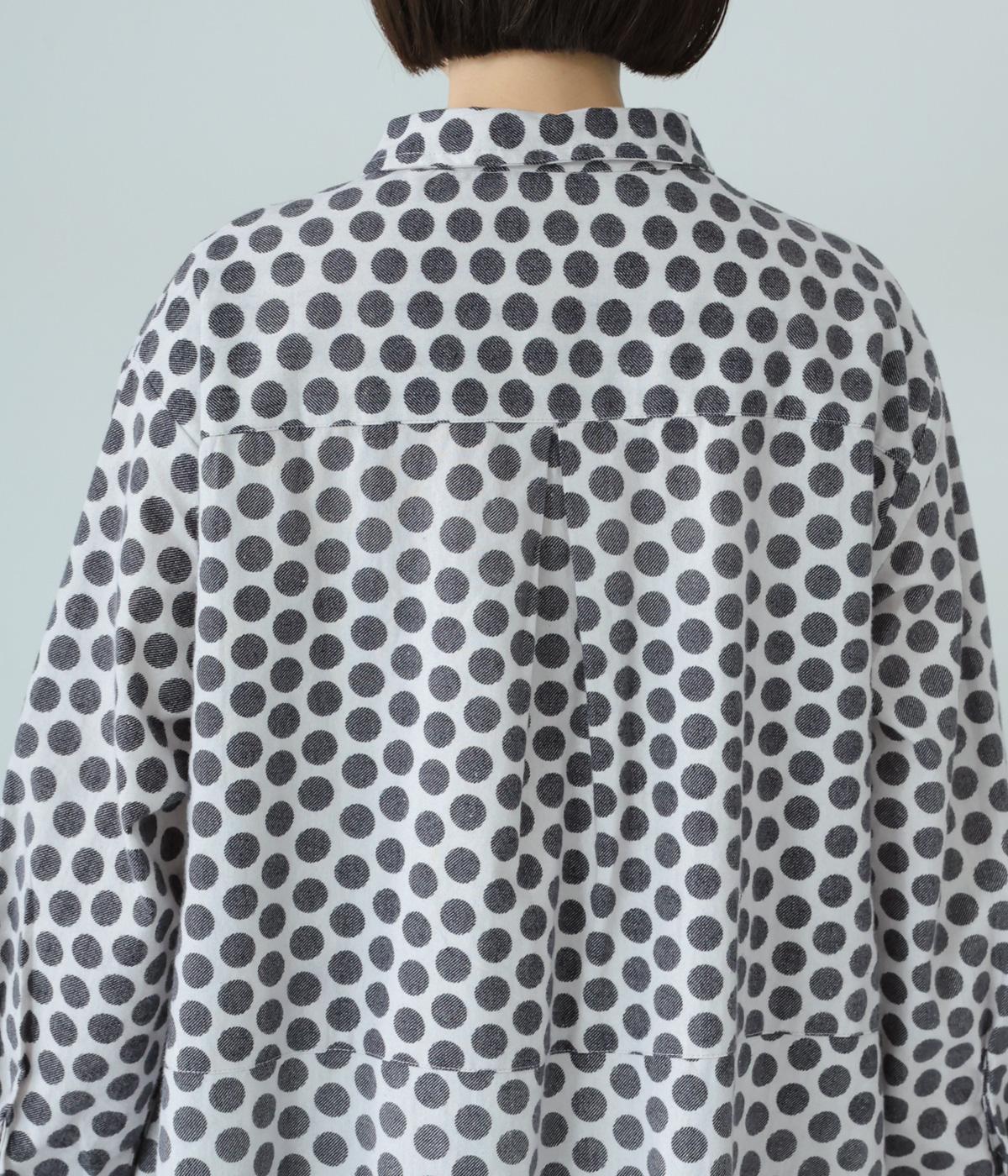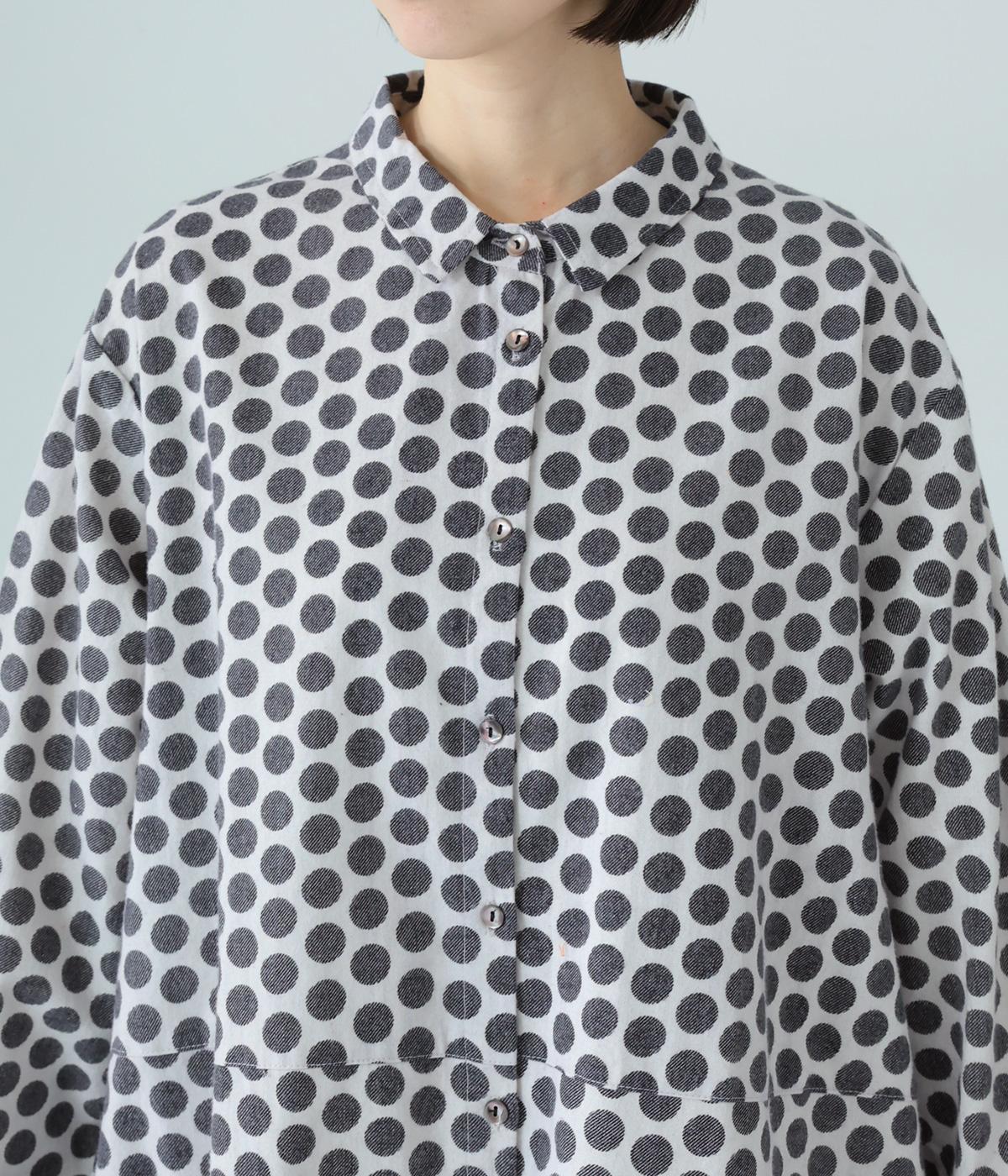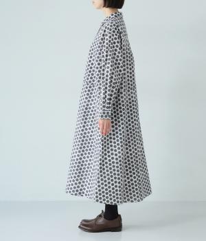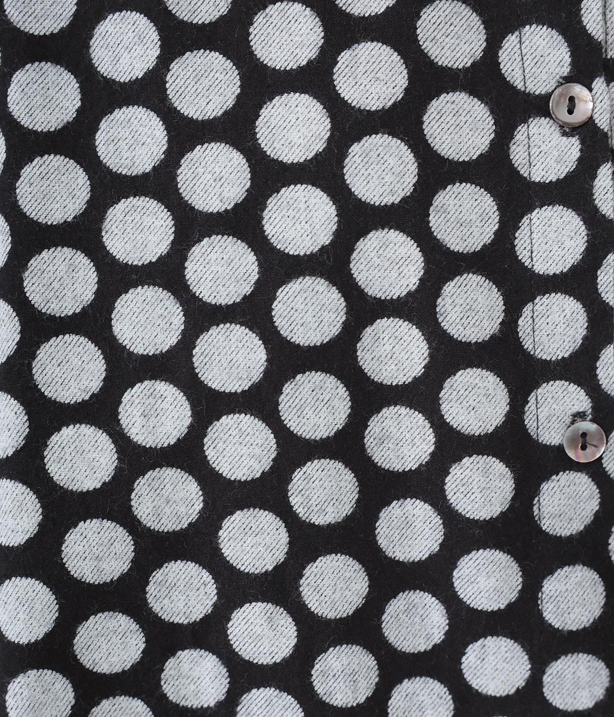 モノトーンのシックなドット柄がポイントのワンピース。甘くなりすぎない、大人らしい総柄スタイルが楽しめる一枚です。ウエストの切り替えが、バランスをアップ。ボタンをあけて羽織りものとして着まわすのもおすすめです。