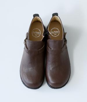 表面に細かなシボがあり、リアルレザーのような上品な見た目が魅力の合成皮革です。足の動きに合わせてやわらかくしなるので、歩きやすさも抜群。クッション性のあるインソールを使用しています。