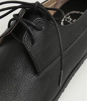 レースアップタイプのシューズです。コロンとしたかわいらしいフォルムが大人フェミニンな雰囲気を演出。レース部分の切替えもアクセントになっています。お手入れしやすく、軽さのある合皮素材ならではの手軽さも魅力的。どんなスタイルにも合わせやすいベーシックカラーもポイントです。