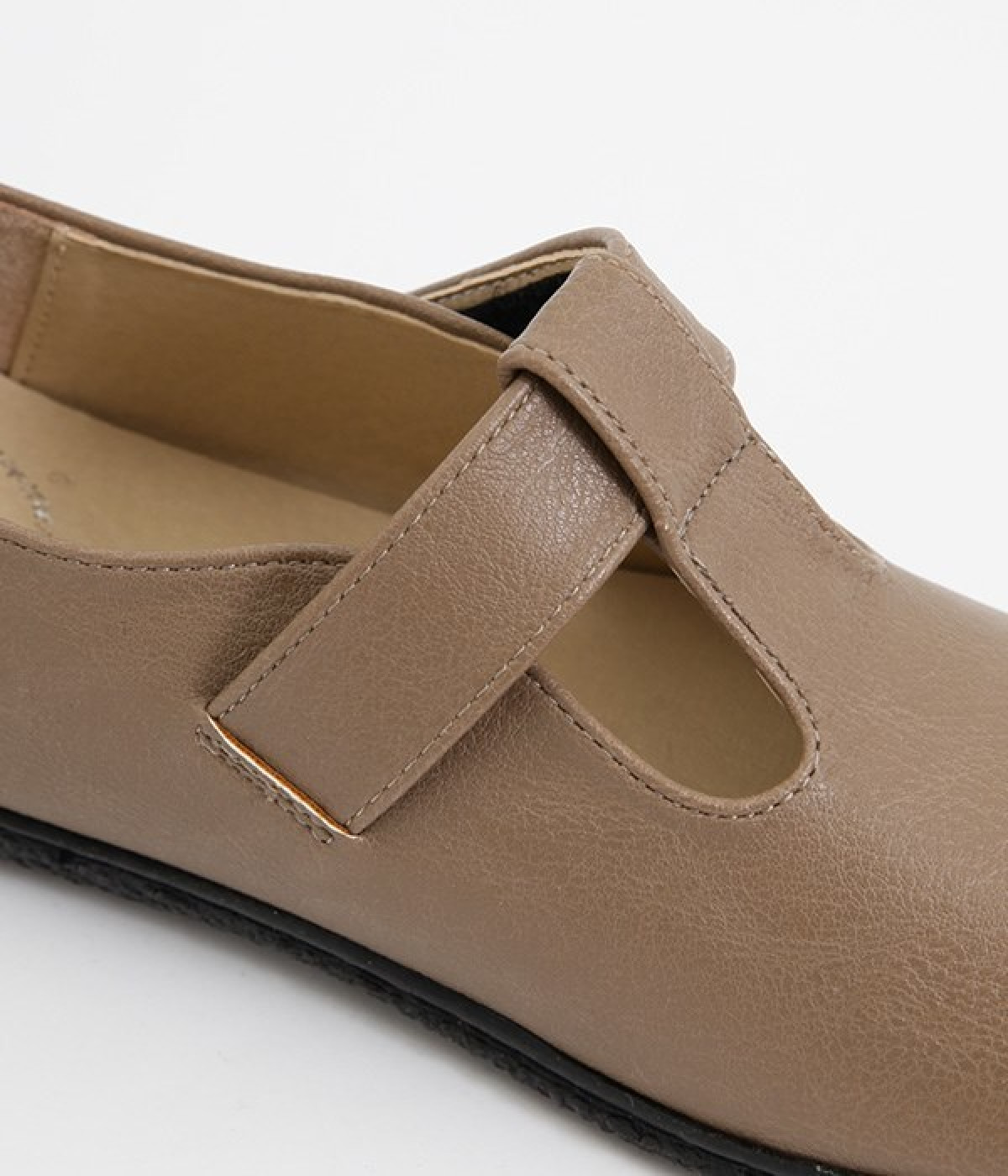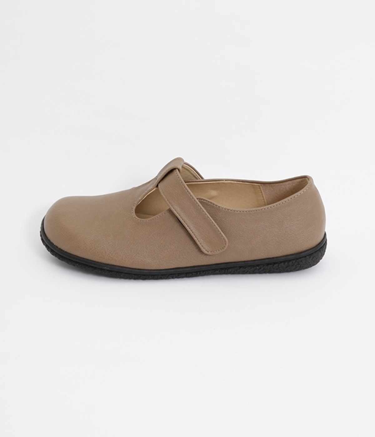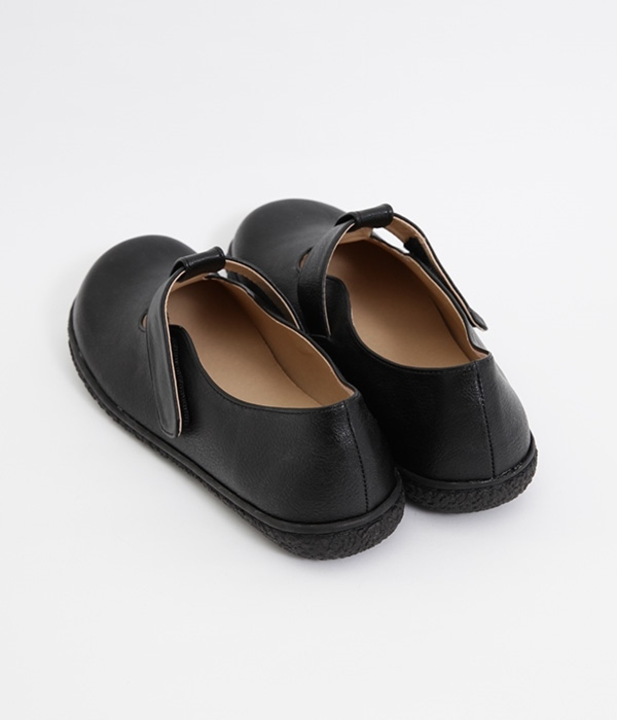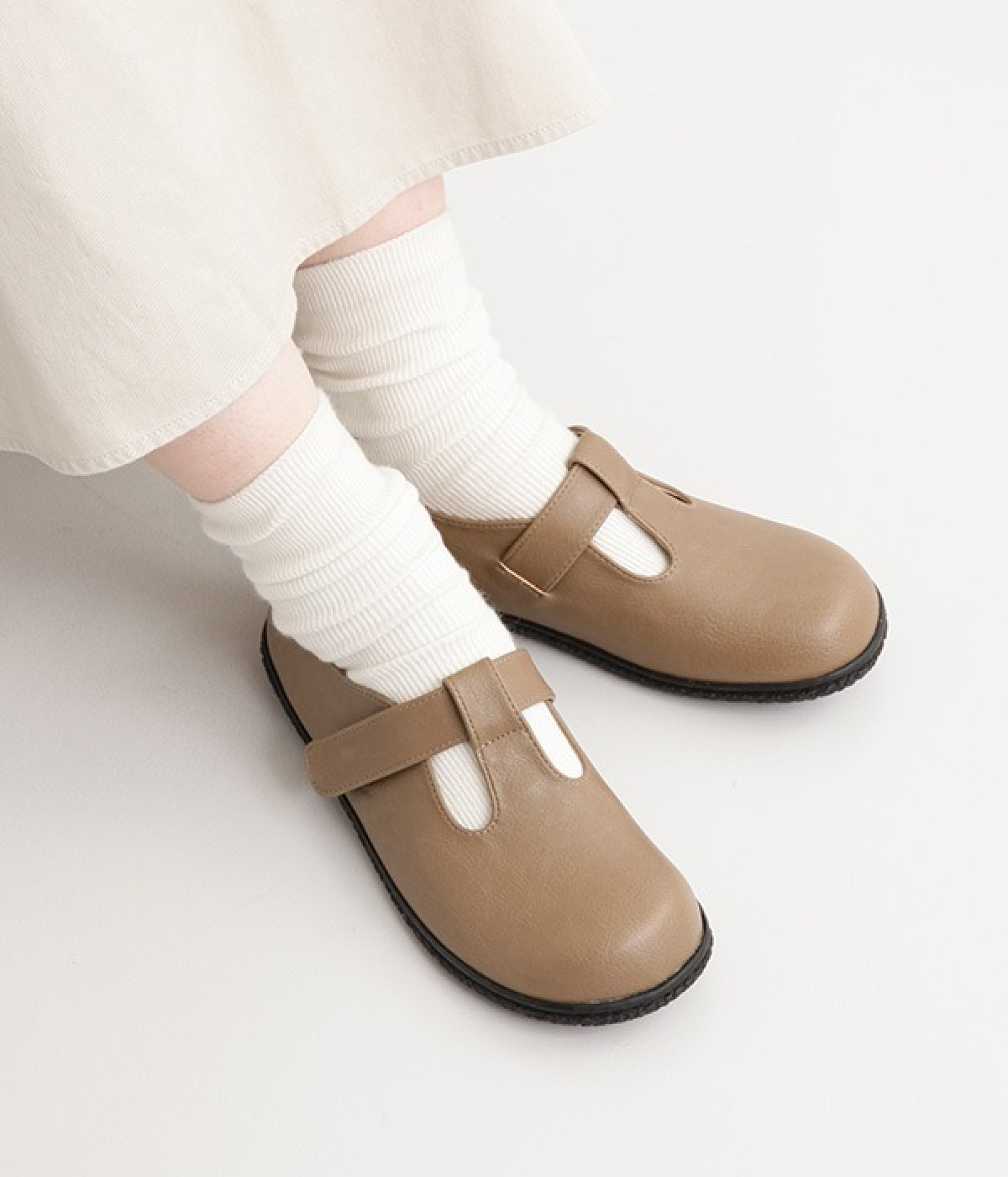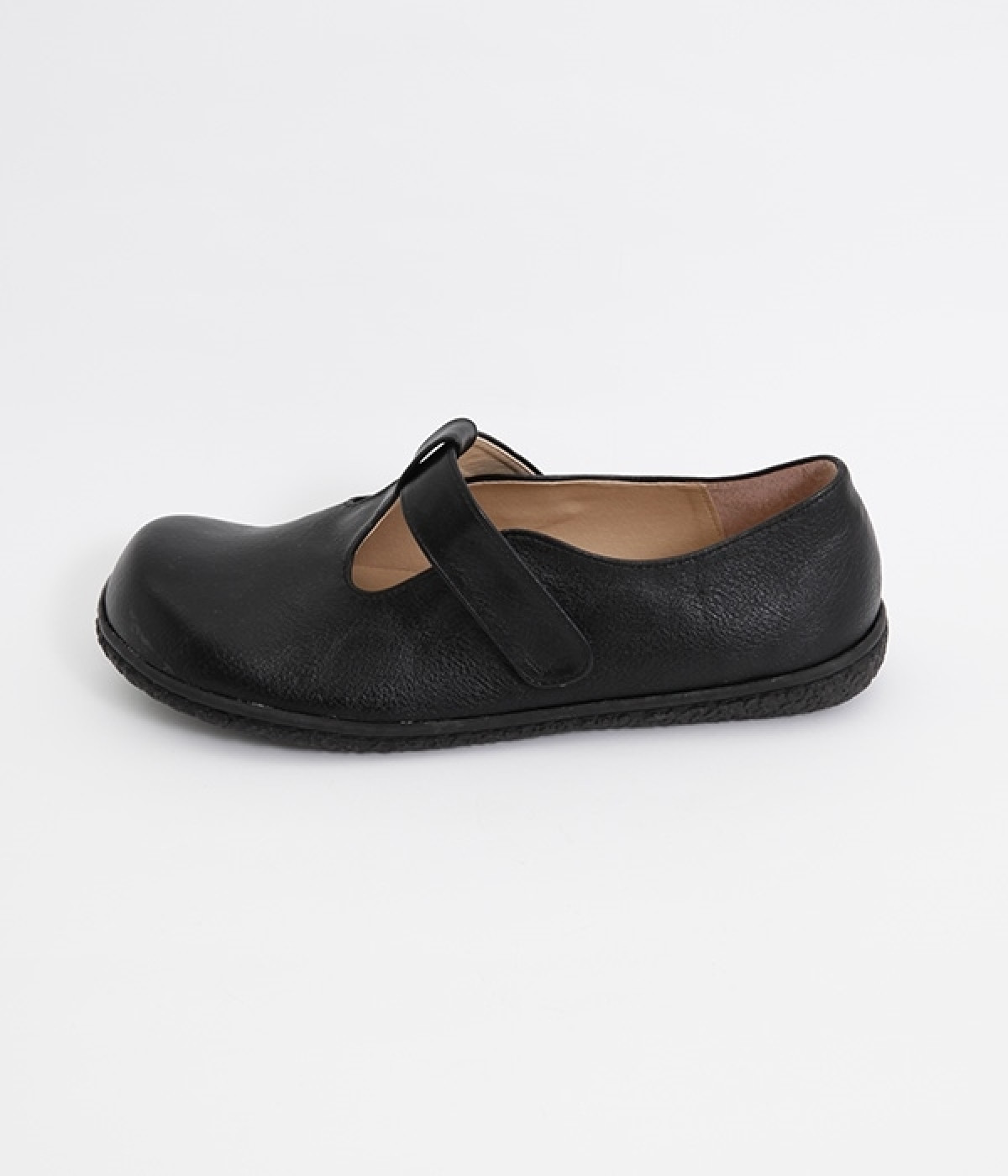 コロンとしたフォルムが特徴的なティーストラップスリッポンです。素材にはソフトで足当たりの良い良質な牛革を配し、履き心地の良いつくりに仕上げました。ストラップはマジックテープ仕様なので脱ぎ履きしやすいのも魅力。インソールにはクッション性のあるものを採用しているので、足全体をやさしくホールドしてくれます。シンプルなデザインで合わせるコーディネートを選ばない着回し力抜群の一足です。