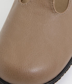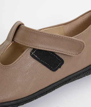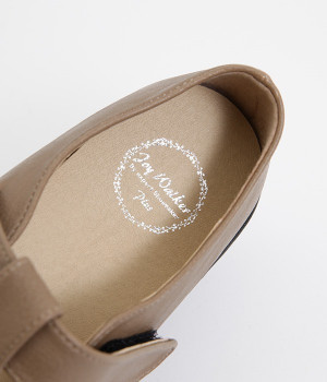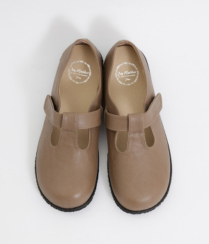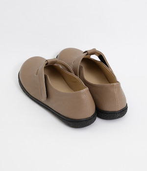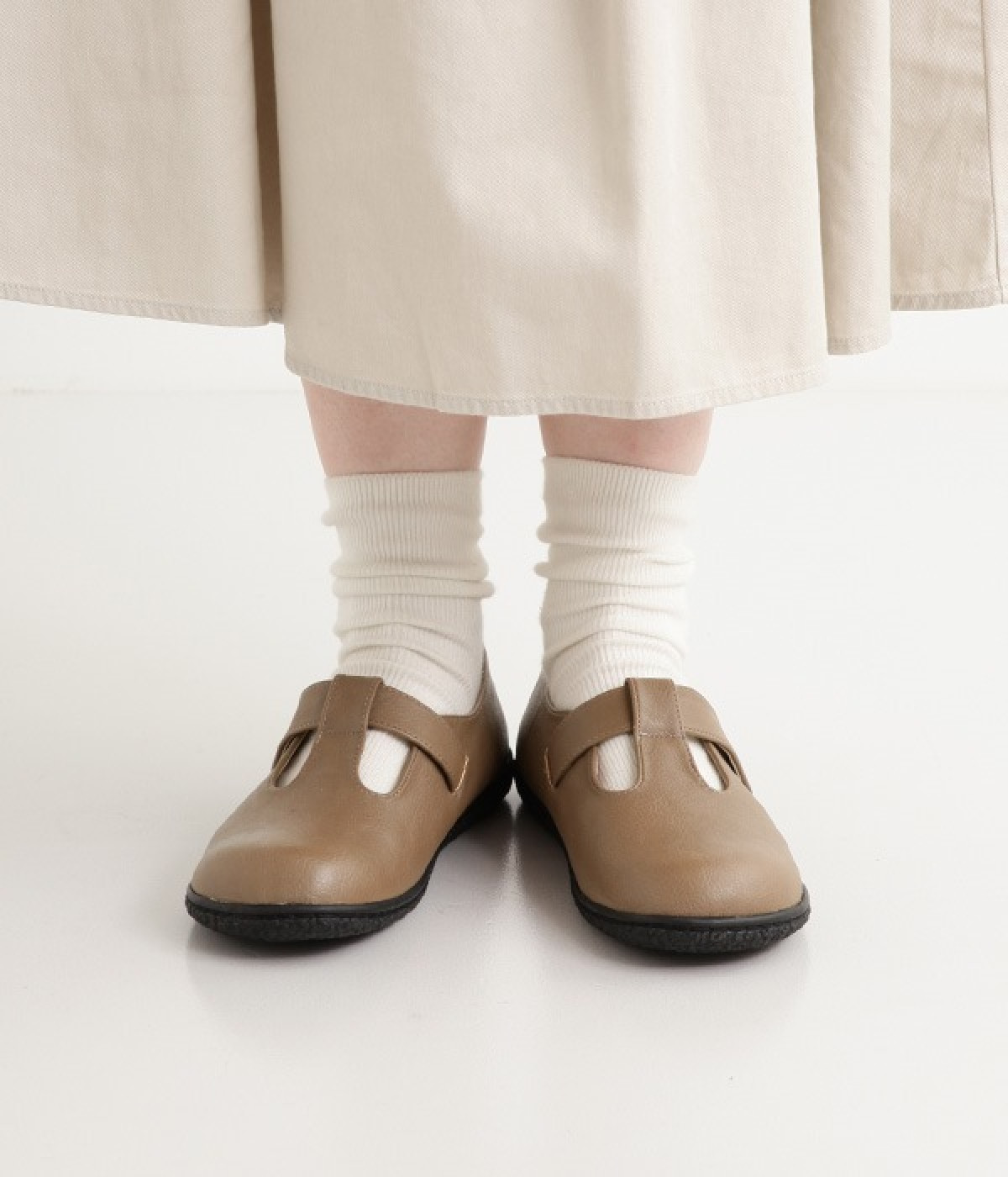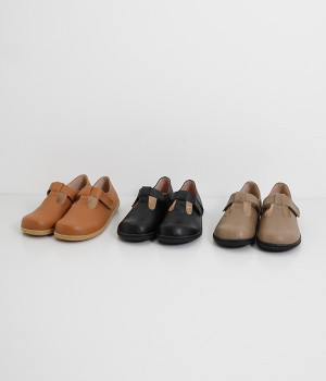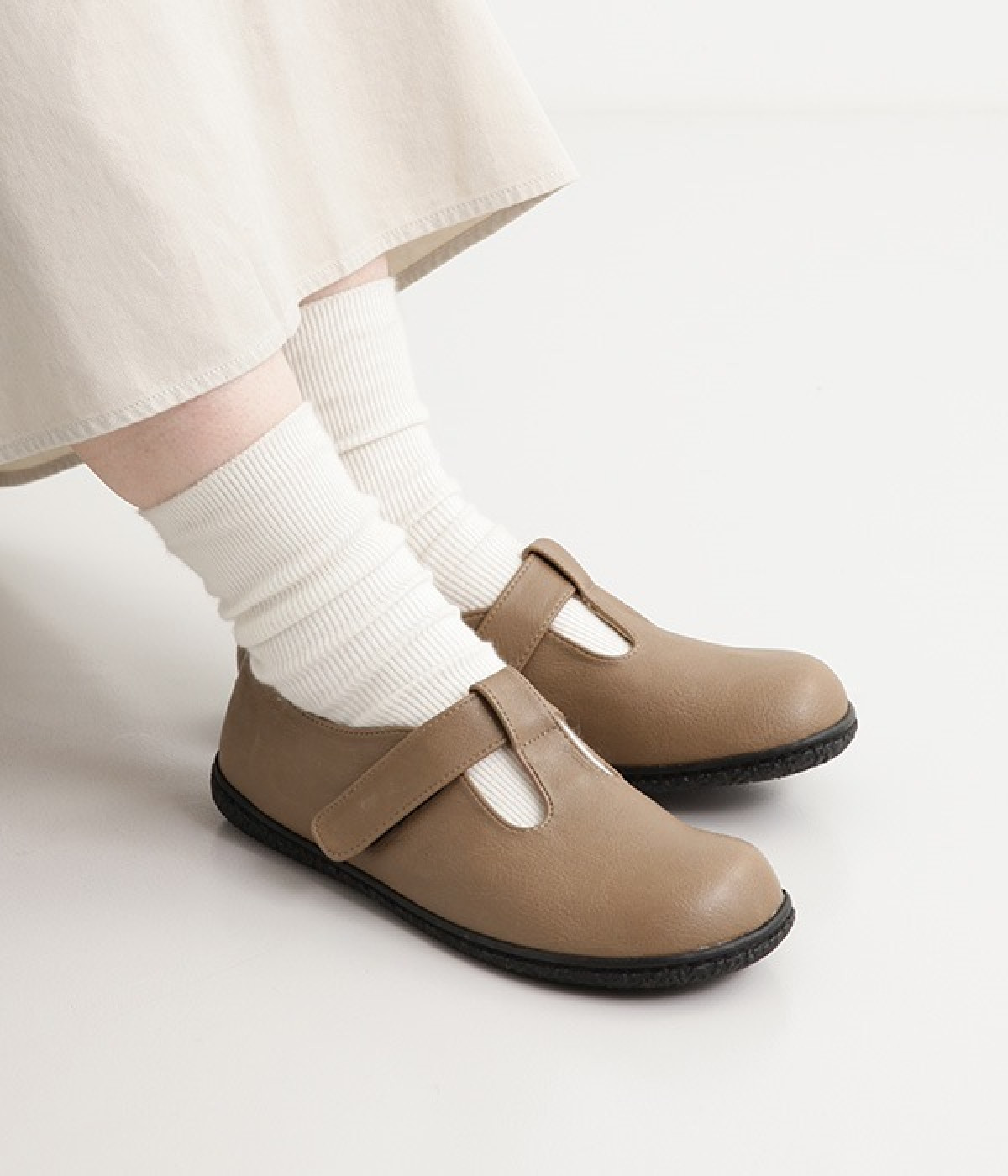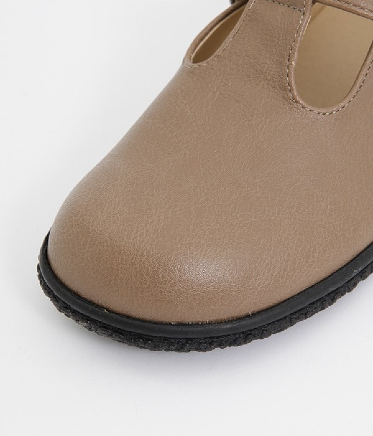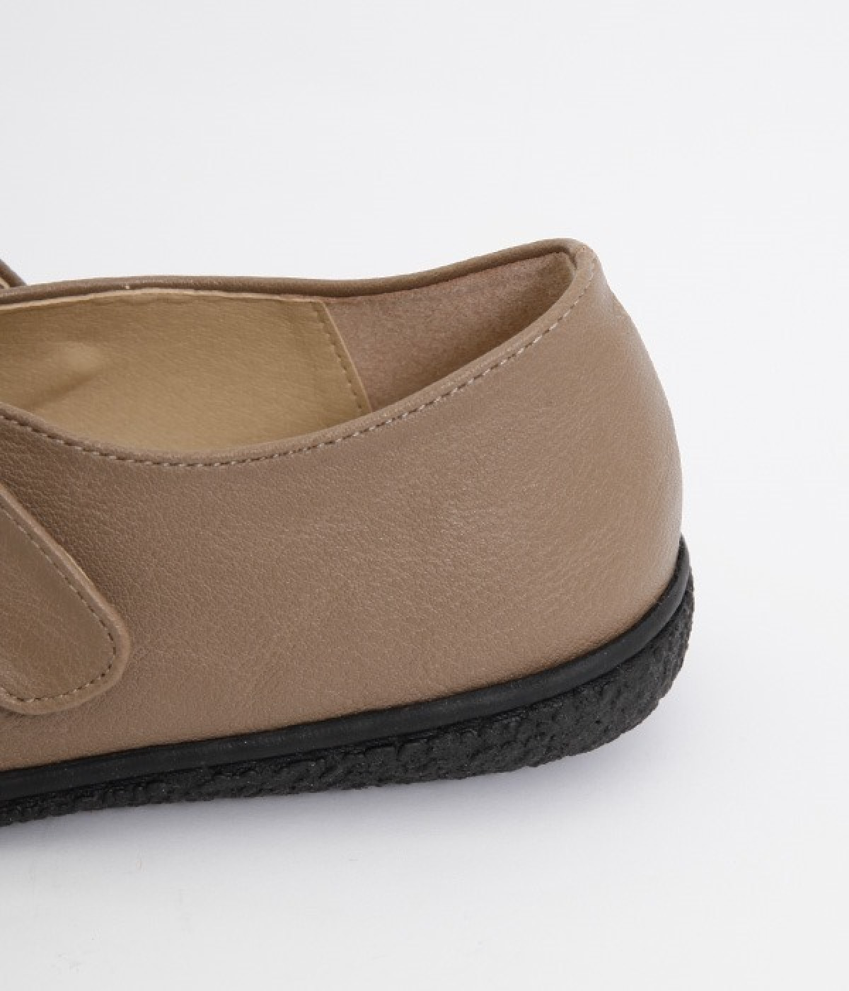 コロンとしたフォルムが特徴的なティーストラップスリッポンです。素材にはソフトで足当たりの良い良質な牛革を配し、履き心地の良いつくりに仕上げました。ストラップはマジックテープ仕様なので脱ぎ履きしやすいのも魅力。インソールにはクッション性のあるものを採用しているので、足全体をやさしくホールドしてくれます。シンプルなデザインで合わせるコーディネートを選ばない着回し力抜群の一足です。