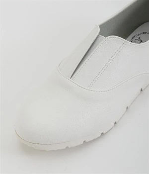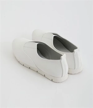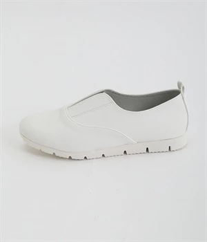 靴ひもを結ぶ手間がカットされて足入れがとてもスムーズなスリッポンシューズ。タン部分にはゴム素材を使用し、足の形状に合わせて柔軟に伸びてくれるコンフォートタイプです。つま先部分がやや上向きにせり上がっているため快適な歩行をサポート。脱ぎはきをスムーズに行えるよう、かかとにはタブを備えました。アッパーにあしらったステッチワークで魅せるシンプルな佇まいで、大人のスタイリングにスッとなじみます。