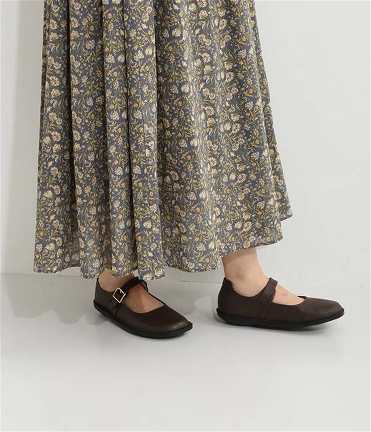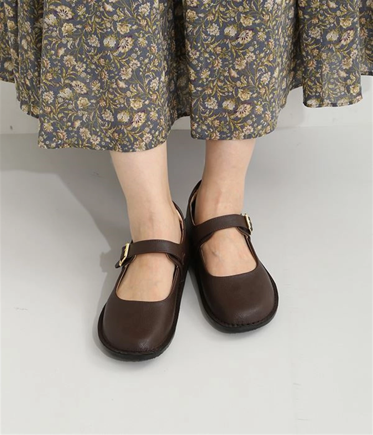 重厚感をもたらすステッチダウン風の作りを採用した新作のシューズ。トゥやはき口のラインはラウンドしすぎないようにこだわり、大人のスタイルになじみやすいようにデザインしました。ベルトは脱ぎはきをスムーズにしてくれる面ファスナー仕様のため、甲の高さが気になる方にもおすすめ。ソールやかかとなど負担がかかりやすい部位には適度にクッション性をプラス。ソックスの色柄も隠れないので足元のおしゃれも存分に楽しめます。