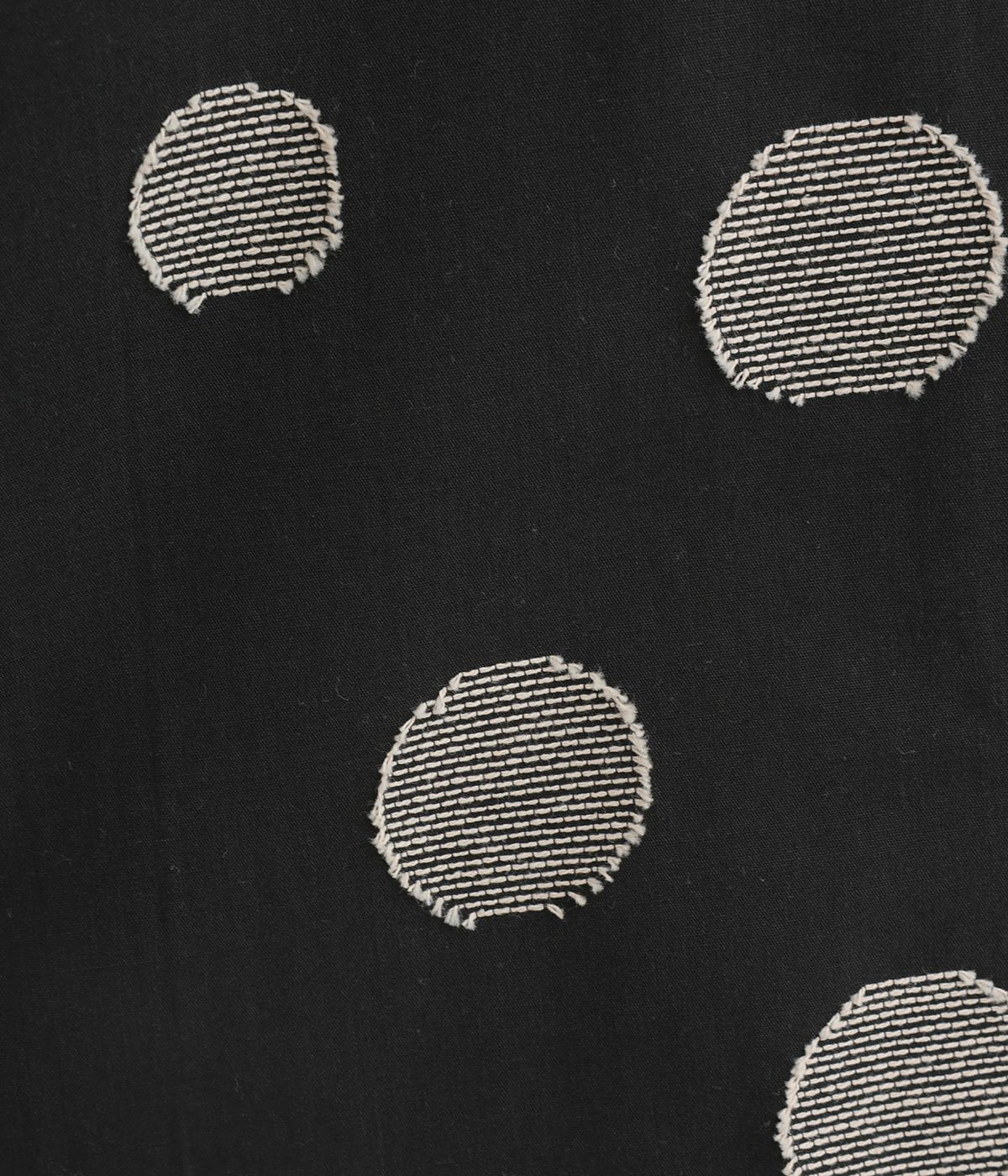 ほどよい厚みのコットンジャカード生地です。やわらかな肌ざわりで、快適な着心地を叶えます。織りで表現したドット柄が奥行きのある表情を演出します。