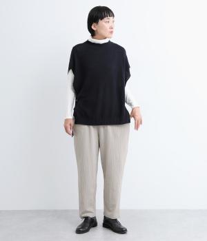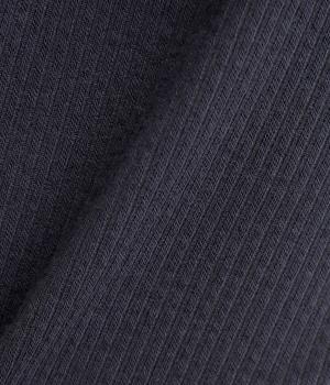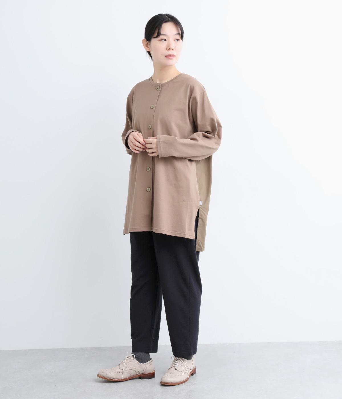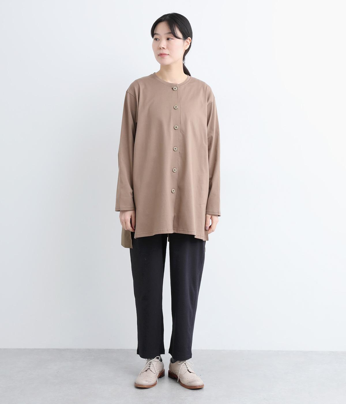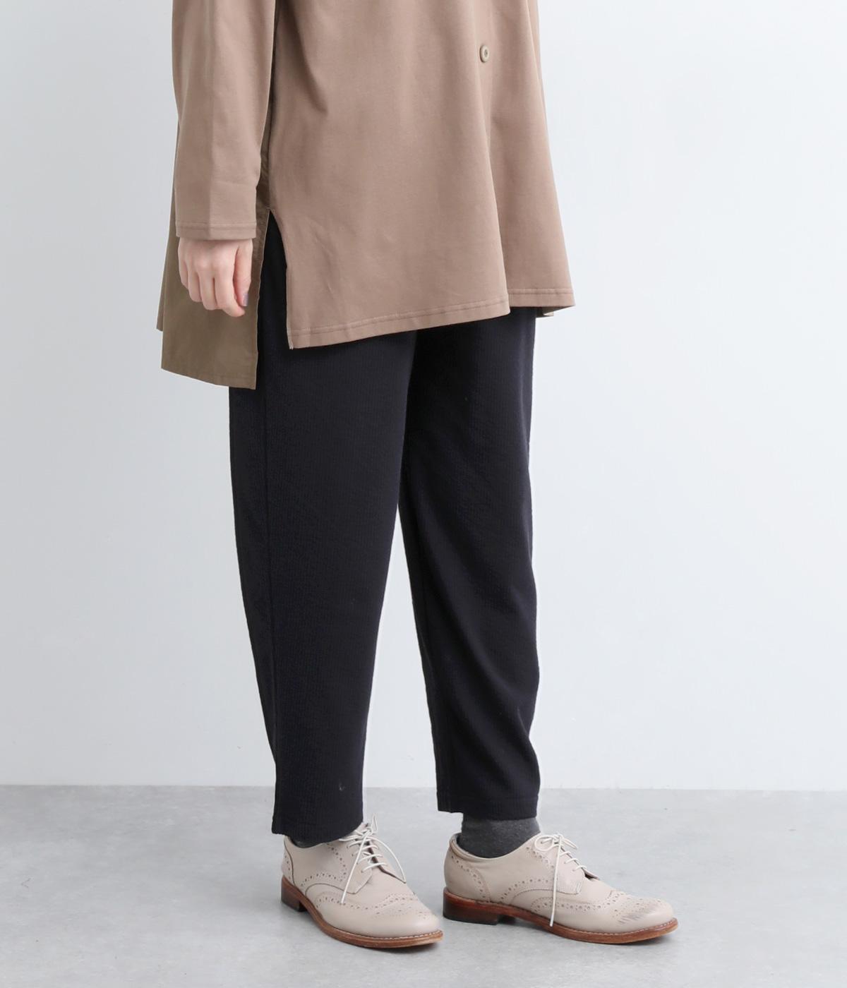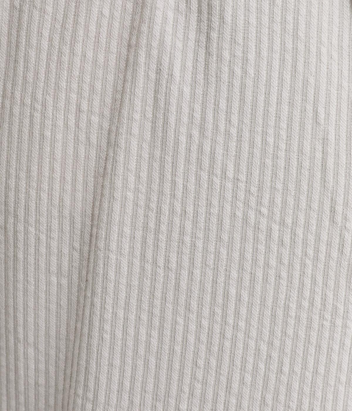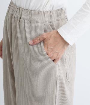 コットンとポリエステルを合わせたストライプジャカードのジャージ素材を使用しています。薄めの生地にさらりとした肌触りが軽やかで、ストレッチ性のあるはき心地の良さが特徴。