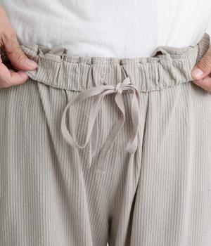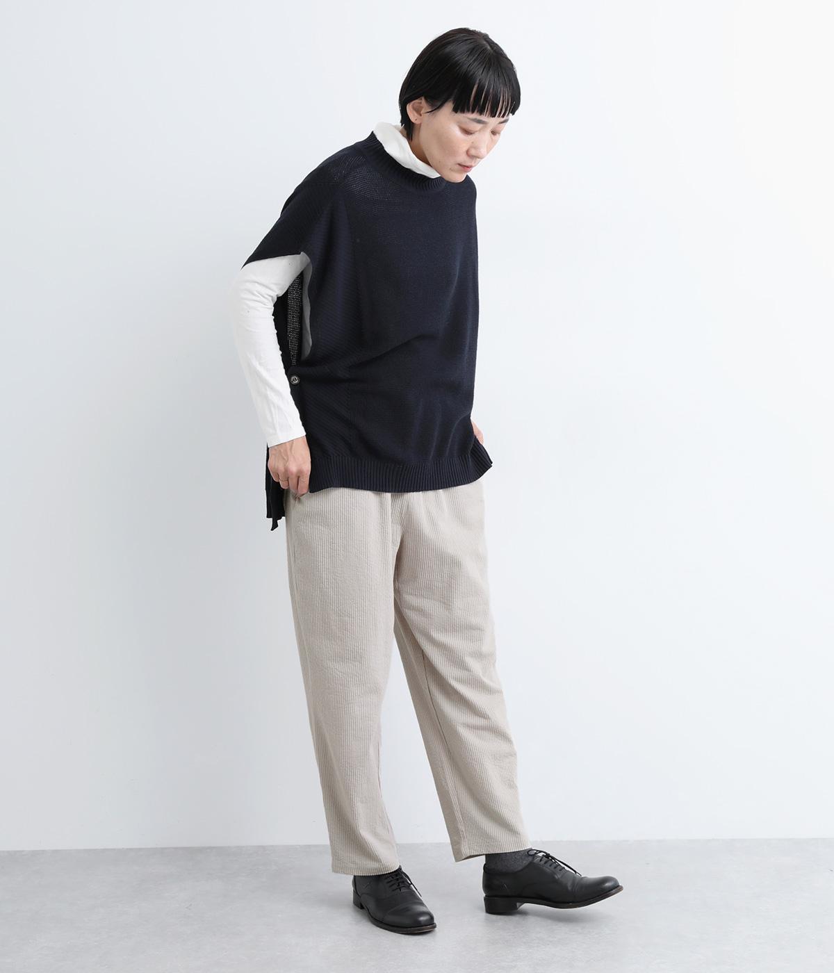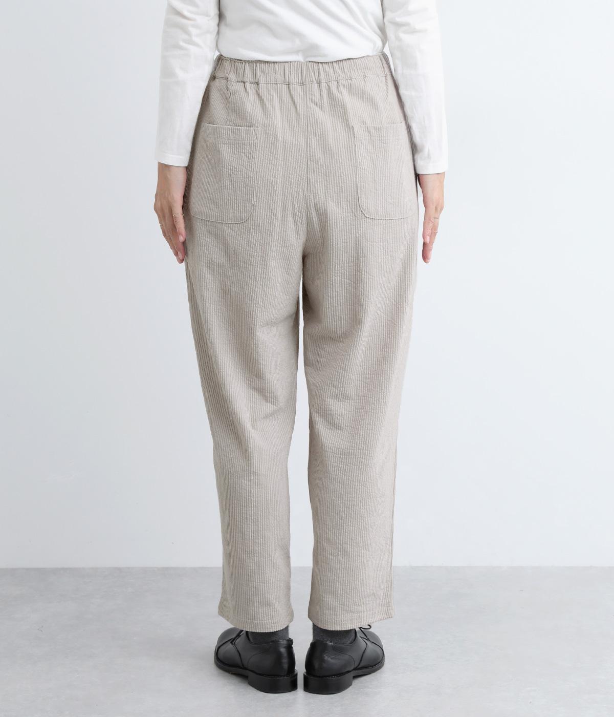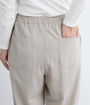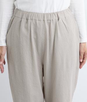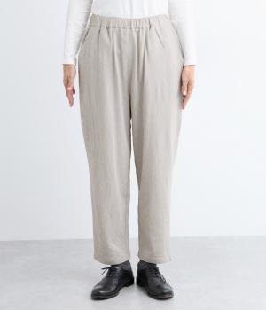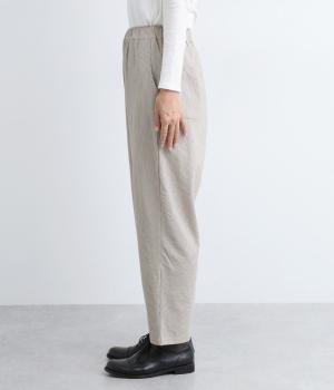 ほどよくゆとりがあり、リラックスしたはき心地が自慢のテーパードパンツ。シルエットもすっきりしているのでスタイリングしやすく、同素材のトップス合わせもおすすめ。ウエストは総ゴム+内紐でフィット感の調整も可能。