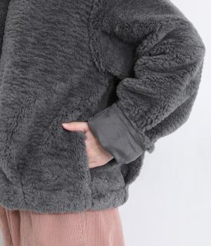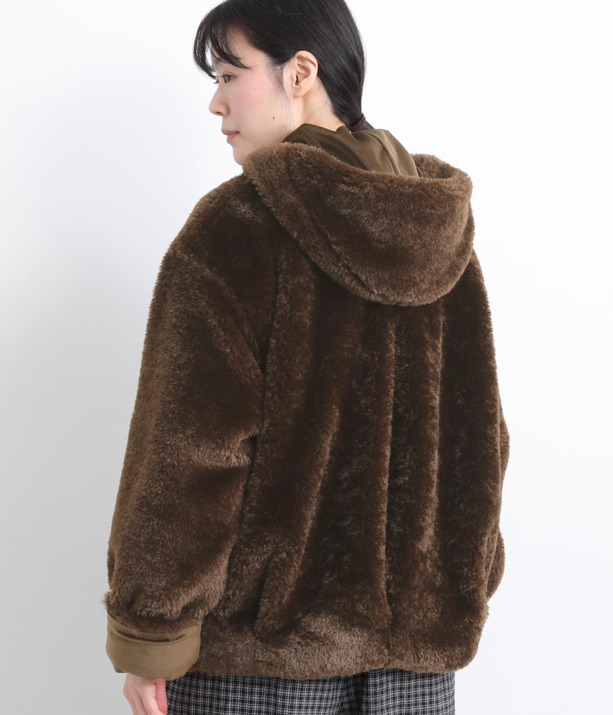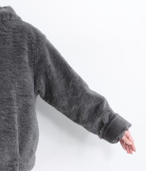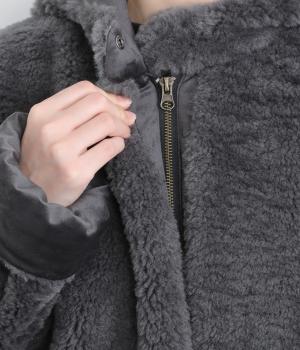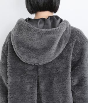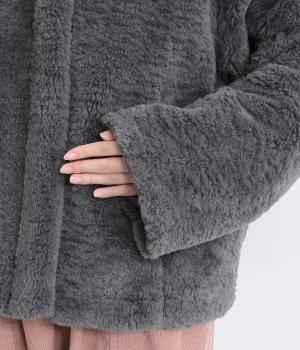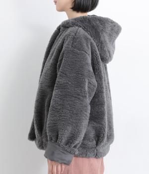 思わず触れたくなる、なめらかなファー素材で仕立てました。ふっくらとした厚みがありながらも軽い着心地で、体をやさしく包みます。毛足の流れが自然な立体感を生み、装いを華やかにします。